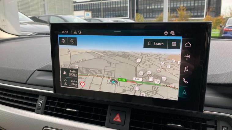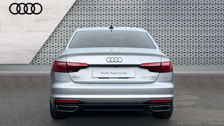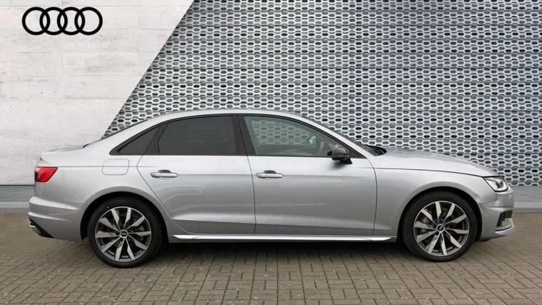 Audi connect safety and service (e-call), Audi drive select, Audi parking system plus with front and rear sensors, Audi smartphone interface, Audi virtual cockpit, Automatic start-stop system with coasting functionality and efficiency programme, Bluetooth interface, Cruise control system with speed limiter, Electric boot lid release, Electromechanical power steering, MMI Navigation plus with MMI touch includes 10.1" high resolution colour MMI display, 3D map, Voice control system, Comfort dynamic suspension, 2 USB charging ports, DAB digital radio reception, Auto dimming rear view mirror, Body colour door handles, Body colour side sill trim, Body coloured door mirrors, Electrically folding auto dimming/adjustable/heated door mirrors with LED side indicators and kerb view function for passenger side, LED headlights and rear lights with LED daytime running lights, Matt aluminium silver tailpipe trim, Privacy glass, Rain and light sensors, Rear diffuser in matt titanium black with trim strip in matt aluminium silver, Sport front and rear bumpers with side skirts, Windscreen with acoustic glazing, 3 spoke high multi-function leather sport steering wheel with paddle shift and height and reach adjustable, 4 way electric lumbar support for driver and front passenger, 40/20/40 split folding 3 rear seat bench in 3 parts with rear centre armrest, Deluxe 3 zone electronic climate control, Door sill trims with aluminium inlay, Front and rear head restraints, Front centre armrest, Heated front seats, ISOFIX child seat mounting and top tether, Manual seat adjustment, Twin leather upholstery + front sports seats, Comfort and sound pack - A4, High gloss package - A4, LED Interior light pack - A4/S4, Titanium black styling pack - A4 Saloon, 3 rear seatbelts, 6 airbags - Driver, front passenger, curtain and side windows, Electronic Stabilisation Control (ESC) including ABS, ASR and EDL, Hill hold assist, Multi collision brake assist, Pop-up bonnet for pedestrian protection, Pre sense city, Seatbelt monitoring, Warning triangle and first aid kit, Anti theft alarm, Anti theft wheel bolts, Keyless Go, Aluminium ellipse silver inlays, 18" 10 spoke dynamic design alloy wheels, Tool kit, Tyre repair kit,