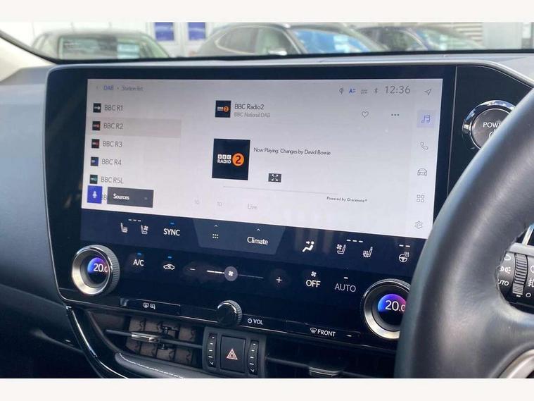 360 degree panoramic view monitor, 4 driving modes EV/Eco/Normal/Sport, 7" display in instrument binnacle, Blind spot monitoring with rear cross traffic alert, Bluetooth telephone connectivity, eCall emergency system, Electric speed sensitive power steering, Extended lexus safety+ system includes front cross traffic alert and lane change assist, Fully automated parking, Head up Display, Intelligent parking sensors - 4 front and 4 rear, Lane change flasher function, Lexus link connect - Cloud based navigation, cloud based voice assistant, always online, 14" HD touchscreen, embedded nav and faster CPU, Push button starter, Reversing camera with back guidelines, Service interval indicator, Tailgate, Tazuna cockpit with 7" improved meters display, 10" HUD and capacitive touch steering wheel switches, Wireless Apple CarPlay/Android Auto, Wireless Smartphone charger, All Wheel Drive (AWD), Hybrid automatic transmission, Vehicle Dynamics Integrated Management (VDIM), Vehicle Stability Control (VSC), 4 USB ports - 2 front, one USB C, 2 rear USB C, DAB Digital radio, Mark Levinson premium surround sound system with 17 speakers, 4 eye LED headlight with adaptive high beam, Automatic headlights, Digital rear view mirror, Double hidden exhaust pipes, Fixed panoramic roof, Front and rear one touch power windows, with anti-jam protection, Headlight cleaners, Heated, auto-folding, auto-dimming outside mirrors with reverse tilt function and turn indicators, Illuminated door handles with puddle light, LED brake lights and rear lights with emergency brake signal, LED cornering lights, LED daytime running lights, LED front fog lights, LED Indicators, Power back door with kick sensor, Privacy glass, rear doors and tailgate, Rain sensor windscreen wipers, Rear side wing doors, Rear wiper, 12V accessory port centre console and luggage compartment, 2 cupholders in front centre console, 2 x fixed shopping bag hooks in boot, 2 x sun visors with vanity mirror and lamp, 3 seat bench in 2nd row, 4 way electrical lumbar adjustment for driver, 4 x tie down hooks in the boot, 6 tie down hooks in boot, 60/40 split folding rear seat, 8 way driver/passenger electrically adjustable front seats, Adjustable rear seat backrest, Card holder installed in driver and passengers sun visors, Centre armrest with storage box, Door courtesy lights, Driver seat memory function, Dual zone climate control air conditioning system with humidity sensor, Front and rear head restraints, Front and rear textile carpet mats, Front passenger seat, Heated and ventilated front seats, Heated rear seats, Heated steering wheel, Leather gear lever, LED ambient lighting, LED interior illumination, Power adjustable leather steering wheel with paddle shifts, Rear centre armrest with 2 cupholders, Smooth leather upholstery, Whiplash Injury Lessening (WIL) feature (active headrest) for seats, 2 x Isofix child rear seat restraints, 3 point ELR front seatbelts with pretensioners, 3x3 point rear seat belts, ABS, Adjustable seat belt anchor points, Driver and front passenger 2 stage airbag, Driver/front passenger side airbags, Drivers knee airbag, E-Latch with safe exit assist, EBD + Brake Assist, ECB (Electronically Controlled Brake System), Electronic parking brake, Front and rear curtain shield airbags, Front center airbag, Front passenger seat cushion airbag, Hill assist control, Lexus safety system - dynamic radar cruise control, pre collision system day and night, lane tracing assist, road sign, OTA, Manual rear child locks, Passenger airbag cut-off device, Traction control, Tyre pressure warning, Anti-theft system with alarm, intrusion sensor, glass breakage sensor, tilt sensor and engine immobiliser, Locking wheel nuts, Smart card key, Smart keyless entry, Speed sensitive auto door locking, Two motion door lock with double lock, Ultra Wide Band (UWB) Anti-theft system, VIN Window etching, Organic inlay, Sumi blackwood inlay,