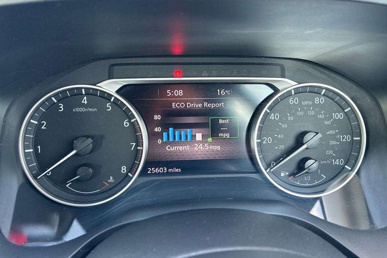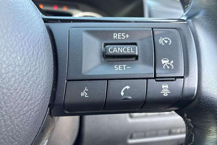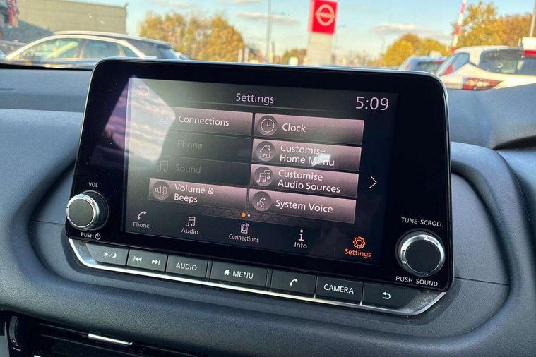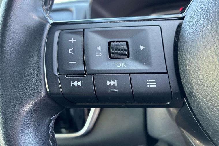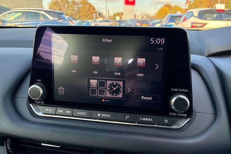 7" High definition full colour TFT screen combimeter, Android auto/Apple CarPlay (Wired), Blind spot warning, Drive modes (sport, normal, eco), Electric speed sensitive power steering, Emergency and breakdown call, Idle stop/start system, Intelligent Cruise control (ICC), Intelligent driver alert system, Intelligent forward collision warning, Intelligent lane intervention, Lane departure prevention, Lane departure warning system, Maximum speed limiter, Nissan connect 8" touchscreen infotainment system, Push button starter, Rear cross traffic alert, Rear parking sensors, Rear view camera, Traffic sign recognition with legal speed adjustment, Trip computer, 6 speakers, AM/FM audio system with DAB, Bluetooth audio streaming, Front USB connections (Type-A and Type-C), Auto dimming rear view mirror, Auto rear wiper when reversing, Automatic hazard signal with emergency stop signal, Body colour mirror caps, Body coloured door handles, Bodyside mouldings, Chrome side window finisher, Door handle with button, Dusk sensor, Electric auto folding door mirrors, Electrically adjustable and heated door mirrors with LED turn indicator, Follow me home headlights, High beam assist, Intelligent auto headlights, LED daytime running lights, LED Headlights, LED rear lights, One touch front and rear electric windows with remote opening and closing, Partially body coloured bumpers, Rain sensor, Rear reversing light (bulb lighting), Rear roof spoiler, Rear side wing doors, Shark fin antenna, Splash free rain sensing wipers, Three blink turn signal, 12v power socket in dashboard and luggage, 2 way electrical driver lumbar adjustment, 2x Rear coat hooks, 3 bench rear seats in 2nd row, 3 rear headrests, 4 folding assist grip, 6-way manually adjustable driver's seat, 60/40 split folding rear seat bench, Centre console storage tray, Chrome interior door handles, Cloth monoform upholstery, Driver and front passenger sunvisors with illuminated vanity mirrors, Driver seat back pocket, Dual zone automatic climate control with pollen filter, Front and rear door storage, Front cupholders x 2, Front door with bottle holders, Glovebox with light, Hard trunk cover, Height adjustable front headrests, Leather shift knob, Leather steering wheel, Luggage space lighting, Manually adjustable passenger (slide recline + lifter), Multifunction steering wheel, Passenger seat back pocket, PVC front centre console and armrest, Rear armrest with 2 cupholders, Rear door bottle holders, Single front passenger seat, Steering wheel switches, Sunglasses holder, Tilt/telescopic adjustable steering wheel, Two rear isofix child seat anchorage points with top tether, 3x3 point rear seatbelt pretensioners + load limiters, ABS, ESP, EBD and brake assist, Active brake limited slip, Auto hold function, Child locks on rear doors, Curtain and front side, far side airbags, Driver and passenger airbags, Driver, passenger and 2nd row rear seat belt reminder, Electronic parking brake, Front seatbelt pretensioners + load limiters, Height adjustable front seatbelts, Hill start assist, Intelligent blind spot intervention, Intelligent front emergency braking with pedestrian, cyclist recognition and junction assist, Intelligent rear automatic braking, Tyre pressure monitoring system, Vehicle dynamic control, Capless fuel filler, Engine immobiliser, Nissan i-key, Remote central door locking with deadlocking, Thatcham Cat.1 alarm, Interior instrumental panel A finisher, 17" Alloy wheels, Tyre puncture repair kit,