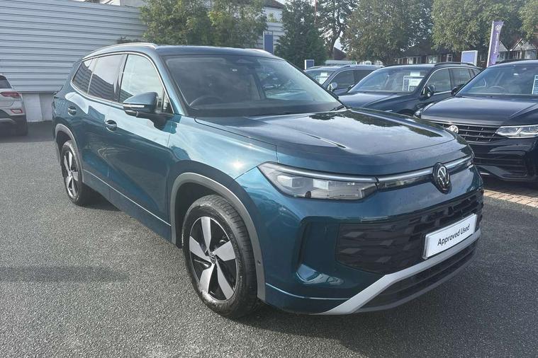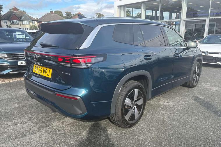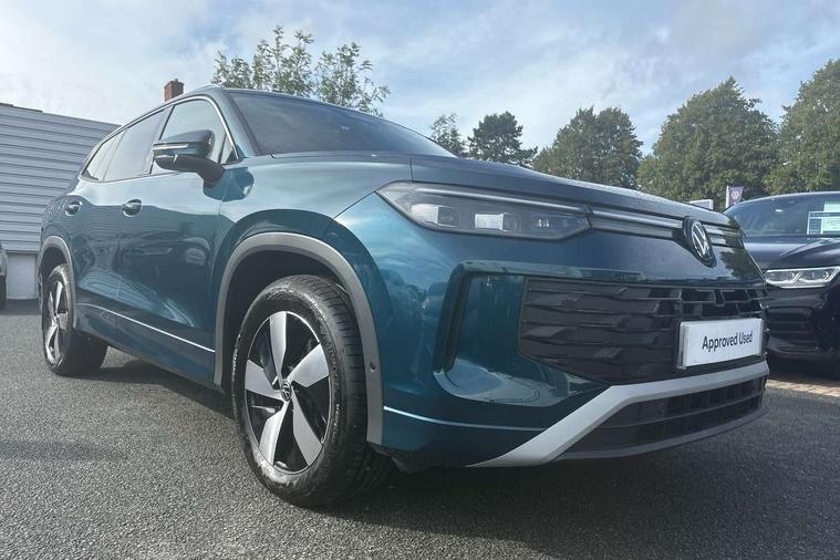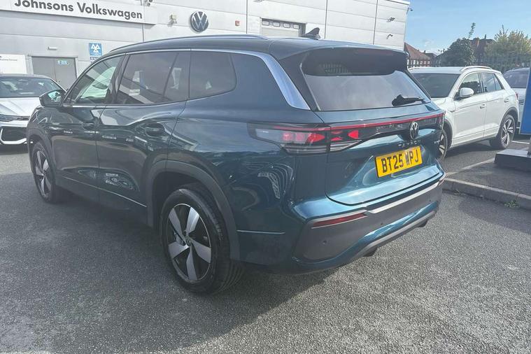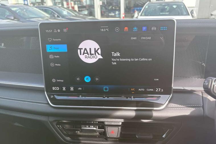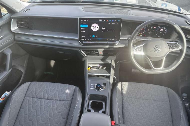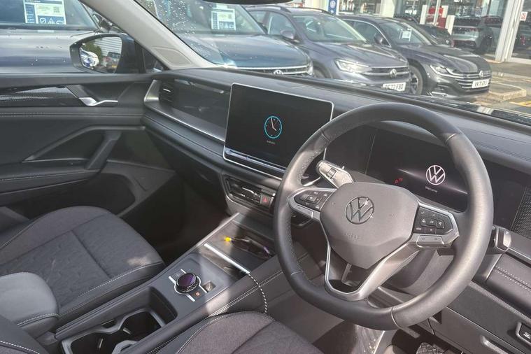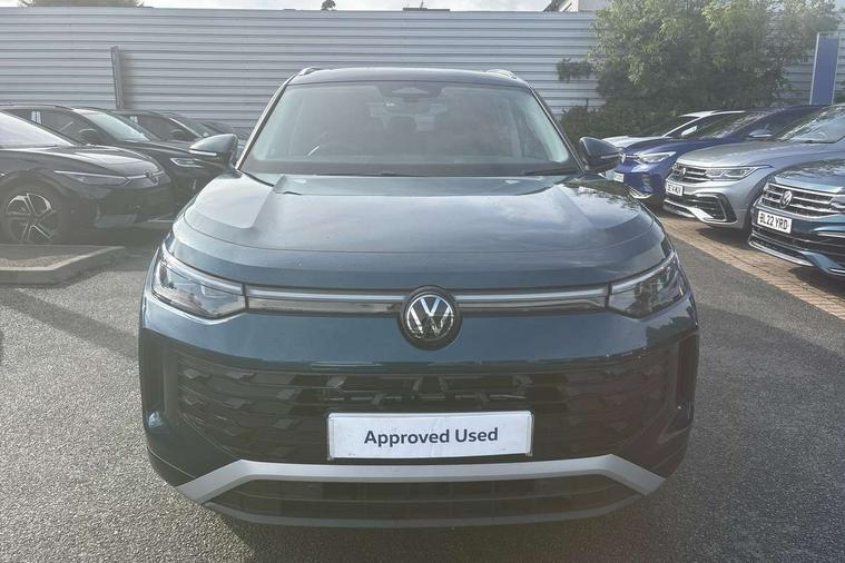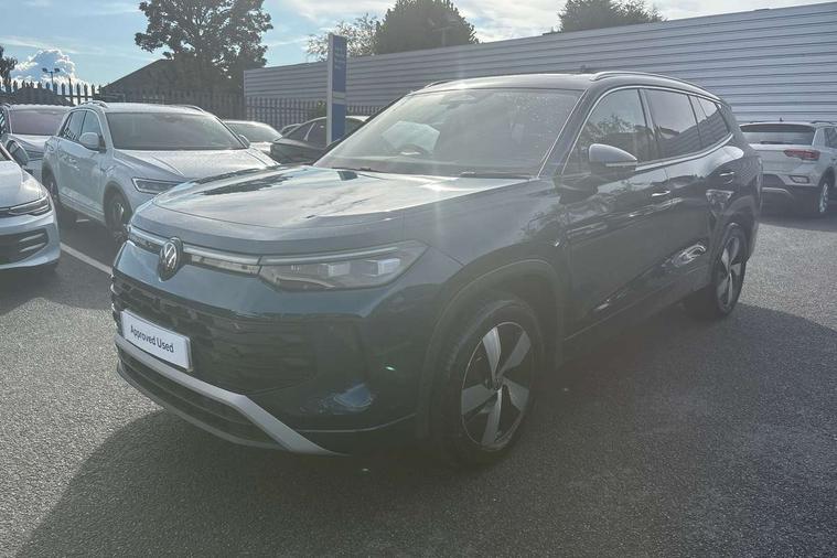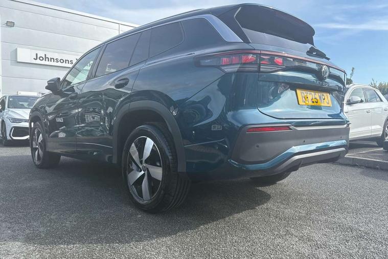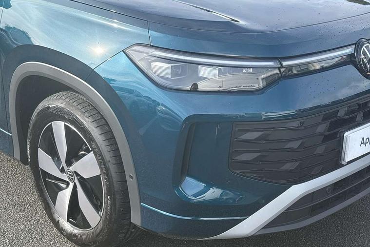 Adaptive cruise control (ACC), Digital Cockpit Pro - 10.25" high resolution dash display screen with customisable menus and information, Driver alert system, Driver attention monitoring system, Dynamic road sign display, E-Sim card for online connectivity, eCall emergency call system, Lane change system, Side assist, Rear traffic alert and Exit warning system, Multifunction front facing camera, Oncoming vehicle braking when turning including swerve support, Power assisted steering with speed sensitive, Start/stop system with regenerative braking, Voice activation spoken voice commands for telephone and navigation system, Warning signal and warning light for front and rear seatbelts not fastened, Wireless App-Connect, Adaptive chassis control DCC pro includes driving mode selection, Charging cable Mode 2 Type 2 / G (10A), Charging cable Mode 3 Type 2 / 3 (16A), Front shock absorption G08, Front wheel drive, Rear shock absorption, Digital radio reception (DAB), Diversity antenna for FM reception, Auto dimming interior rear view mirror, Automatic headlight control system, Body colour door handles, Body-coloured exterior mirror housings, Chrome moldings on the side windows, Comfort bumpers, Coming/leaving home lighting function, Exterior mirrors convex on the left and aspherical on the right, Heat insulating glass in side and rear windows, Laminated safety glass winshield, heat insulating, LED 3rd brake light, Puddle lights, Rain sensor windscreen wipers, Rear fog light on one side, reversing light on both sides, Rear side wing doors, Rear wiper, Reverse activated passenger's door mirror, Surround lighting with welcome light, Tilting and sliding panoramic sunroof with rear panoramic sunroof, 12V outlet in center console rear and in luggage compartment, 3 rear headrests, 3 rear seat bench in 2nd row, split folding, longitudinally movable and folding with load-through hatch, Carpet mats, front and rear, Centre console with illuminated storage compartment with sliding cover and two drinks holders, Door and side trim panel with leatherette insert, Flat luggage compartment floor, Front centre armrest, ISOFIX anchors for child seats on outer rear seats and front passenger seat compatible with i-Size, Mechanical rear seat release, Power adjustable lumbar support in front, Single front passenger seat, Sun visors with illuminated vanity mirrors, Comfort package with park assist pro - Tayron, 3 Point seat belts in front with pretensioners, 3 point seatbelts in outer rear with ECE label, Autonomous emergency braking front assist with pedestrian and cyclist monitoring, Driver and front passenger airbag with front passenger airbag deactivation, Electronic parking brake with auto hold, First aid kit with warning triangle and safety vest, Front and rear curtain airbags, Front and rear side airbags, Front centre airbag, Front disc brakes, Hill start assist, Rear disc brakes, Two tone horn, Decorative material set, Tool kit for tyre mobility set, Tyre mobility kit including compressor and sealing foam. In lieu of spare wheel,