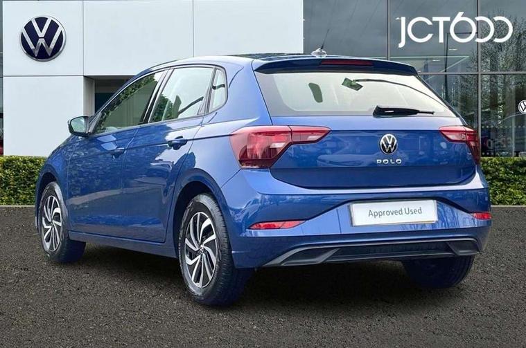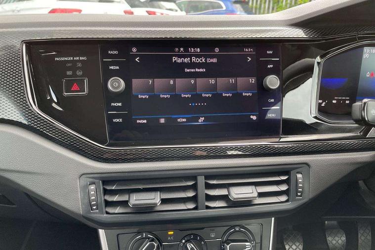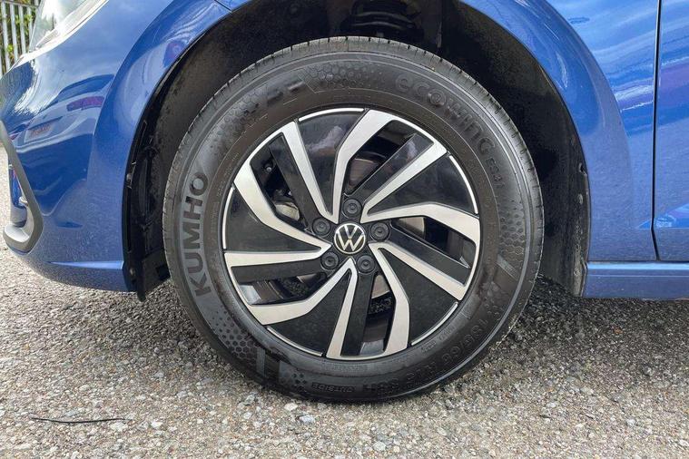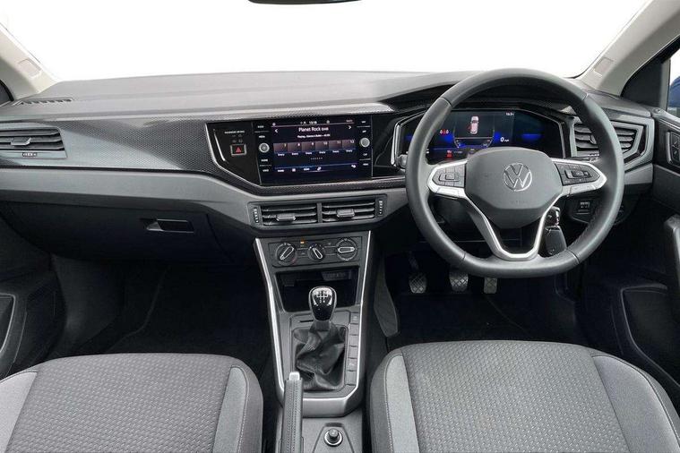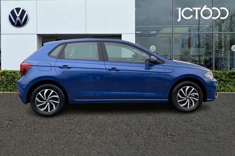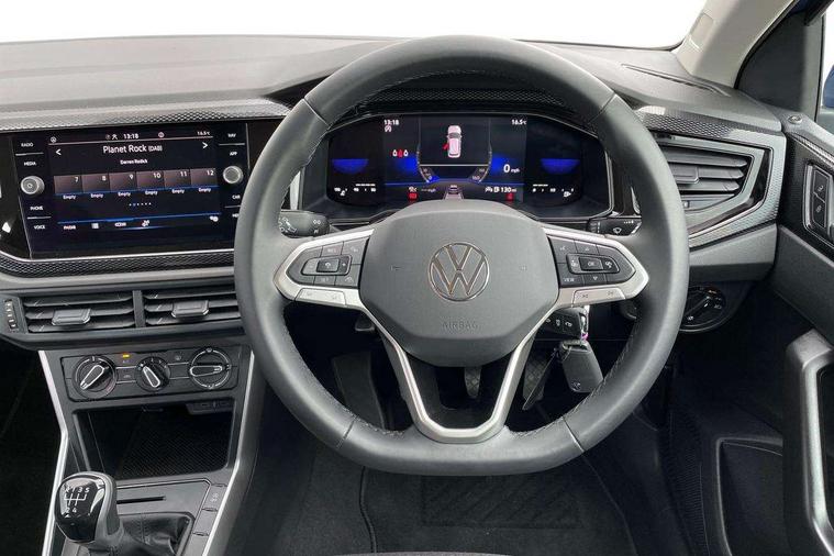 Adaptive cruise control without follow-to-stop and speed limiter, Advanced driver attention and drowsiness monitor, Bluetooth mobile phone interface, Dynamic road sign display, Emergency call service, Power assisted speed sensitive steering, Preparation for navigation system with media and internet package, Preparation for We connect and We connect plus, Speedo and rev counter, electronic odometer, trip, service interval display and exterior temperature gauge, Standard rear axle, Travel Assist - Lane keeping system and traffic jam assist, Travel assist including emergency assist, Trip computer, Warning signal and warning light for front and rear seatbelts not fastened, Washer fluid level indicator, Wireless app connect, Front wheel drive, Rear shock absorpion, Start-stop system with battery regeneration (recuperation - energy recovery during braking), DAB Digital radio, Diversity antenna for FM reception, Automatic dimming interior rear view mirror, Automatic headlight control with LED separate daytime running lights with coming/leaving home function, Body colour bumpers with chrome inserts, Body colour door handles, Body colour door mirrors, Electric front windows, Engine badge deletion, Headlight range adjustment, Heat insulating and laminated safety glass windshield, Heat insulating darkened glass in side and rear windows, Heat insulating glass windscreen, LED Headlights, LED rear combination lamps, Power folding adjustable/heated exterior mirrors and front passenger exterior mirror lowering function, Rain sensor, Rear electric windows, Rear fog light, Rear side wing doors, Rear windscreen washer and wiper with interval delay, Third brake light, 12V power socket in centre console, 2 front and 2 rear reading lights with switch off delay and dimmer, 2 USB-C ports in the front, 2 USB-C charging sockets on the center console in the rear, 3 rear head restraints, 60/40 split folding rear seat and rear seat bench not split, Ceramique roof lining, Chrome plated radiator grille inserts, air vent surrounds and light switch surrounds, Door and side trim panel, Driver and front passenger seat height adjustment, Driver/passenger sunvisors with illuminated vanity mirrors, Front centre armrest, Front seat backrest storage pockets, Front standard seats, Handbrake lever handle in leather, Hartley/Thomas cloth upholstery, Headliner in recycled material, Isofix child seat preparation easy-fit (for two outer rear seats, and front passenger seat) compatible with I-size, Leather trimmed gear knob, Luggage compartment cover, Luggage compartment lighting, Removable luggage compartment floor, Single front passenger seat, Standard climatic zones, Standard pedal cluster, Three spoke leather wrapped multifunction steering wheel, Light and vision pack - Polo, 3 point height adj front seatbelts + pretensioners, 3x3 point rear seatbelts, ABS, Driver and front passenger airbag with front passenger airbag deactivation, Drivers and front passengers safety optimised head restraints, ESC (Electronic stability control) + EDL (Electronic Differntial lock) and ASR (Traction control), Extended and predictive pedestrian/ cyclist protection, Front assist with autonomous emergency braking (for Adaptive Cruise Control ACC up to 130 mph), Front curtain and side airbags with center airbag, Front disc brakes, Hill hold control, Manual child lock in rear doors, Rear drum brakes, Single tone horn, Tyre pressure loss indicator, Alarm with interior protection, Anti-theft alarm system with interior monitoring, backup horn, and towing protection, Anti-theft wheel bolts, Electronic engine immobiliser, Lava stone black gloss/matt decorative inserts in dash and front door panels, Low rolling resistance tyres,