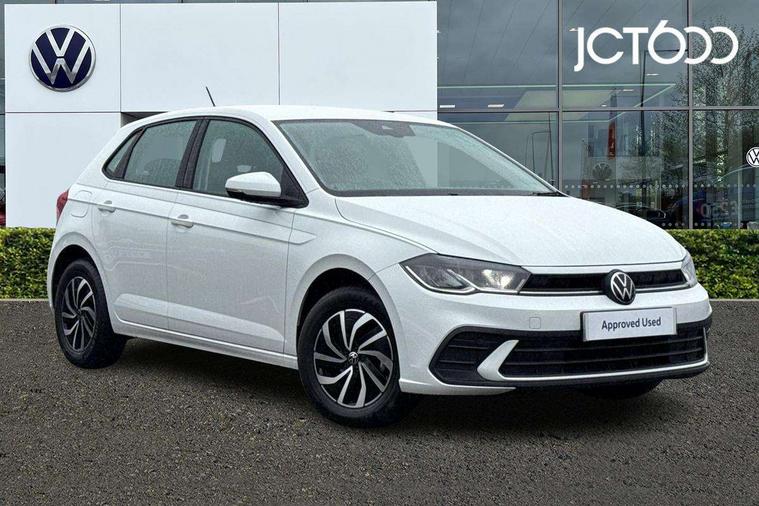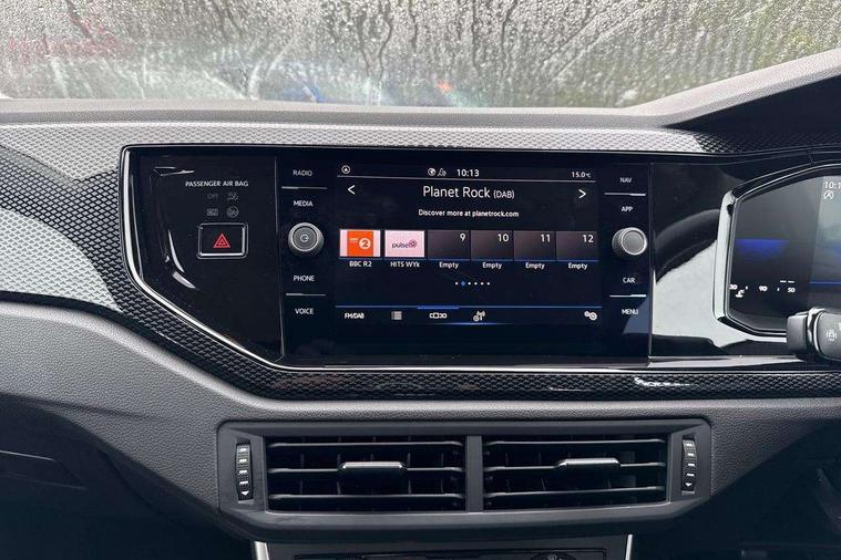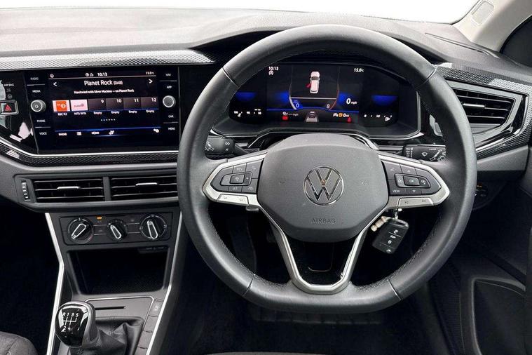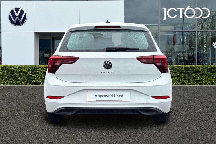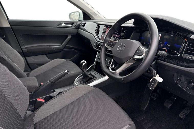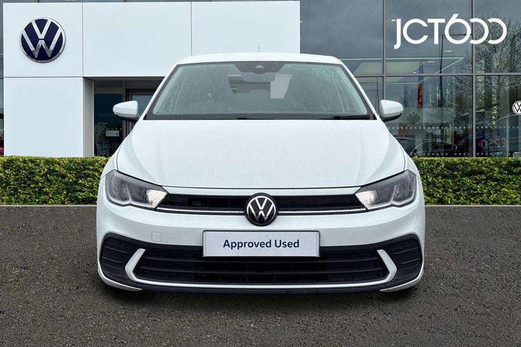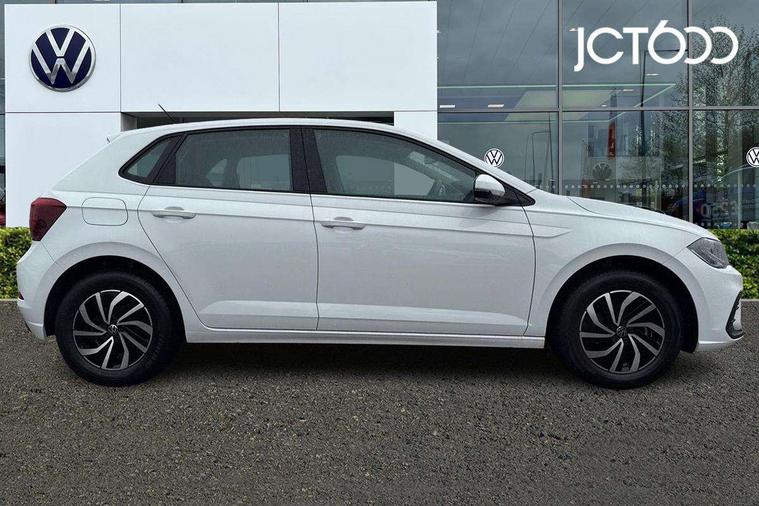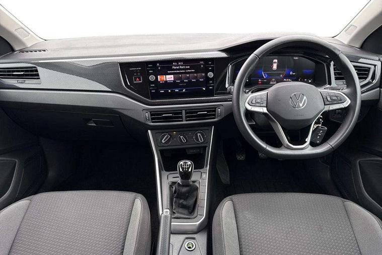 Adaptive cruise control without follow-to-stop and speed limiter, Advanced driver attention and drowsiness monitor, Bluetooth mobile phone interface, Dynamic road sign display, Emergency call service, Power assisted speed sensitive steering, Preparation for navigation system with media and internet package, Preparation for We connect and We connect plus, Speedo and rev counter, electronic odometer, trip, service interval display and exterior temperature gauge, Standard rear axle, Travel Assist - Lane keeping system and traffic jam assist, Travel assist including emergency assist, Trip computer, Warning signal and warning light for front and rear seatbelts not fastened, Washer fluid level indicator, Wireless app connect, Front wheel drive, Rear shock absorpion, Start-stop system with battery regeneration (recuperation - energy recovery during braking), DAB Digital radio, Diversity antenna for FM reception, Automatic dimming interior rear view mirror, Automatic headlight control with LED separate daytime running lights with coming/leaving home function, Body colour bumpers with chrome inserts, Body colour door handles, Body colour door mirrors, Electric front windows, Engine badge deletion, Headlight range adjustment, Heat insulating and laminated safety glass windshield, Heat insulating darkened glass in side and rear windows, Heat insulating glass windscreen, LED Headlights, LED rear combination lamps, Power folding adjustable/heated exterior mirrors and front passenger exterior mirror lowering function, Rain sensor, Rear electric windows, Rear fog light, Rear side wing doors, Rear windscreen washer and wiper with interval delay, Third brake light, 12V power socket in centre console, 2 front and 2 rear reading lights with switch off delay and dimmer, 2 USB-C ports in the front, 2 USB-C charging sockets on the center console in the rear, 3 rear head restraints, 60/40 split folding rear seat and rear seat bench not split, Ceramique roof lining, Chrome plated radiator grille inserts, air vent surrounds and light switch surrounds, Door and side trim panel, Driver and front passenger seat height adjustment, Driver/passenger sunvisors with illuminated vanity mirrors, Front centre armrest, Front seat backrest storage pockets, Front standard seats, Handbrake lever handle in leather, Hartley/Thomas cloth upholstery, Headliner in recycled material, Isofix child seat preparation easy-fit (for two outer rear seats, and front passenger seat) compatible with I-size, Leather trimmed gear knob, Luggage compartment cover, Luggage compartment lighting, Removable luggage compartment floor, Single front passenger seat, Standard climatic zones, Standard pedal cluster, Three spoke leather wrapped multifunction steering wheel, Light and vision pack - Polo, 3 point height adj front seatbelts + pretensioners, 3x3 point rear seatbelts, ABS, Driver and front passenger airbag with front passenger airbag deactivation, Drivers and front passengers safety optimised head restraints, ESC (Electronic stability control) + EDL (Electronic Differntial lock) and ASR (Traction control), Extended and predictive pedestrian/ cyclist protection, Front assist with autonomous emergency braking (for Adaptive Cruise Control ACC up to 130 mph), Front curtain and side airbags with center airbag, Front disc brakes, Hill hold control, Manual child lock in rear doors, Rear drum brakes, Single tone horn, Tyre pressure loss indicator, Alarm with interior protection, Anti-theft alarm system with interior monitoring, backup horn, and towing protection, Anti-theft wheel bolts, Electronic engine immobiliser, Lava stone black gloss/matt decorative inserts in dash and front door panels, Low rolling resistance tyres,