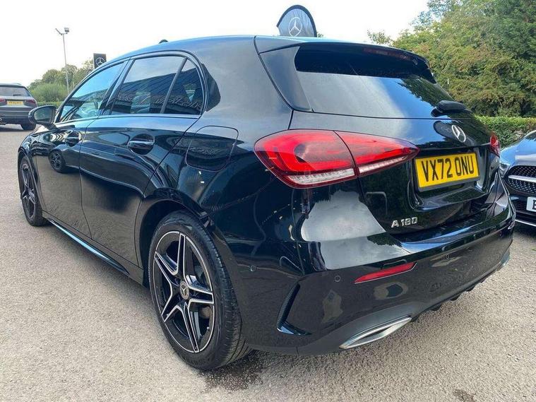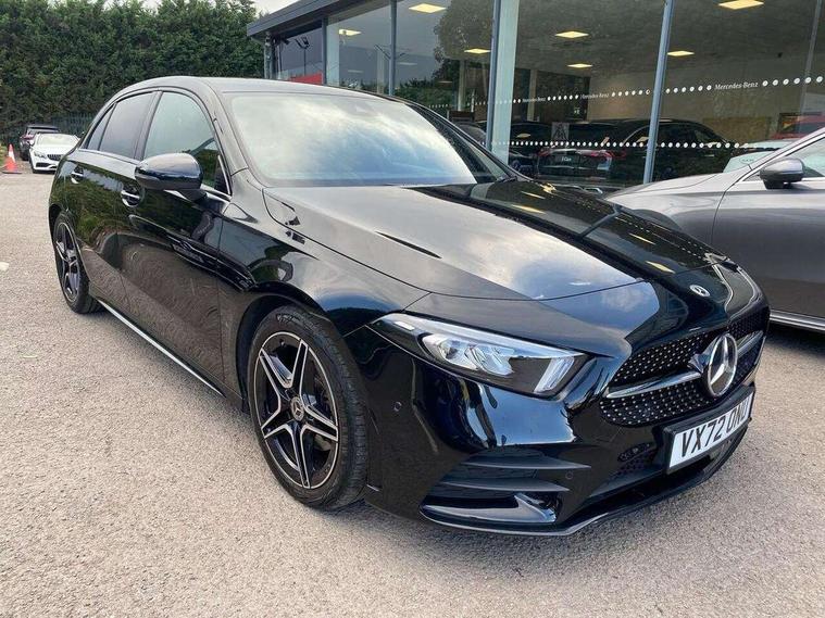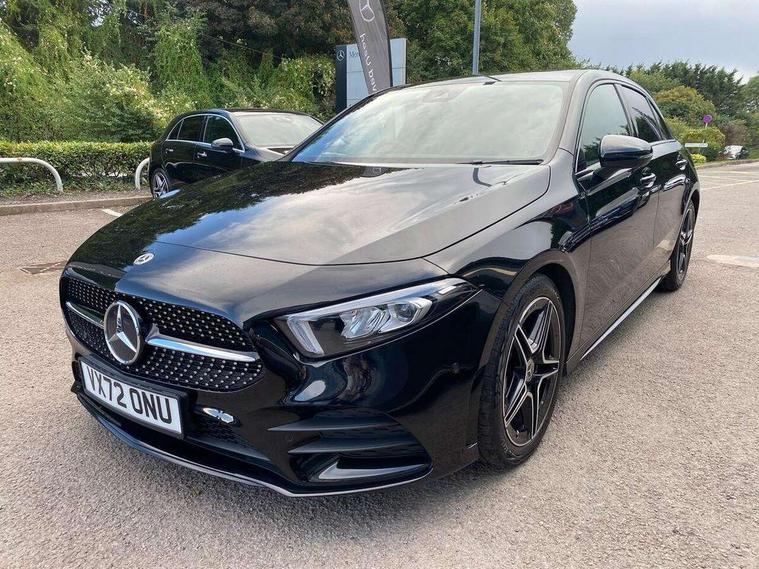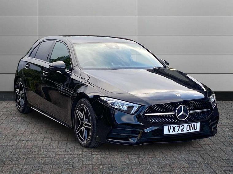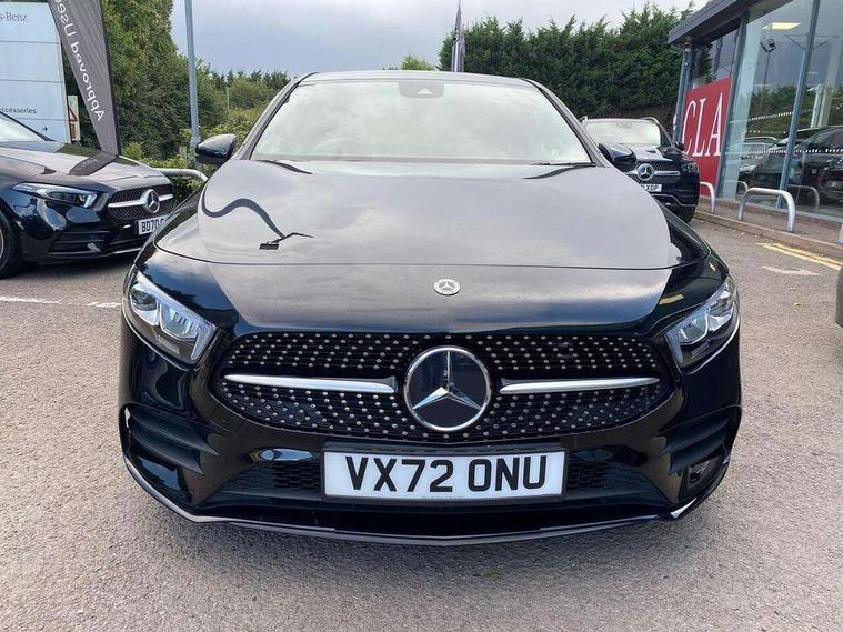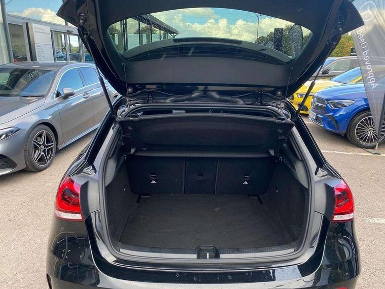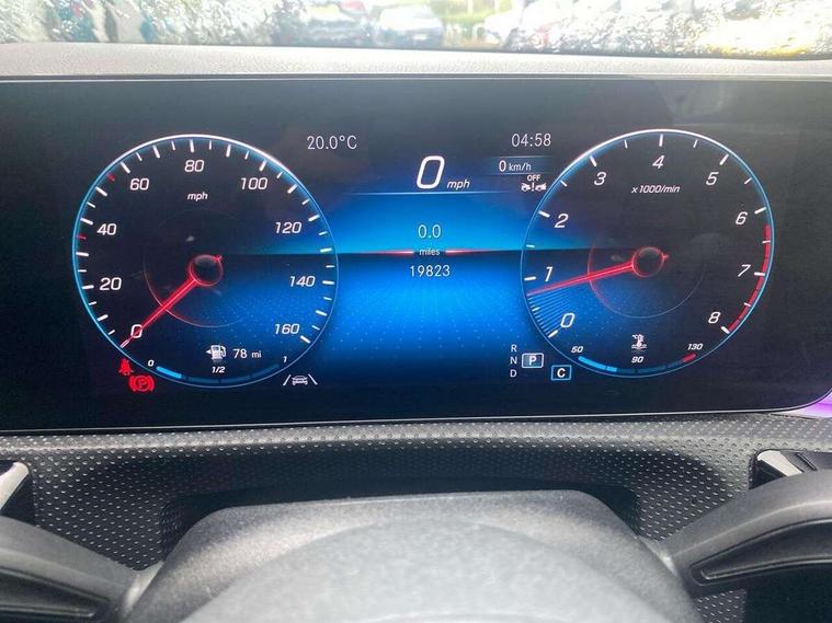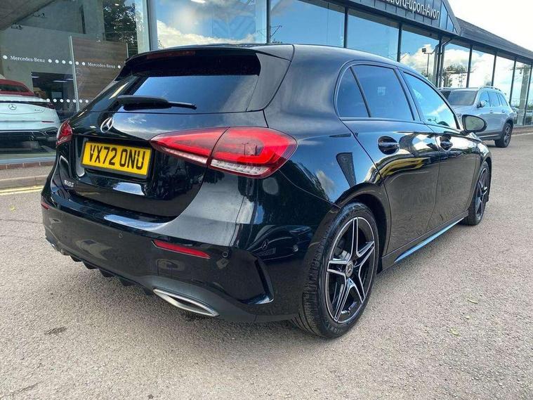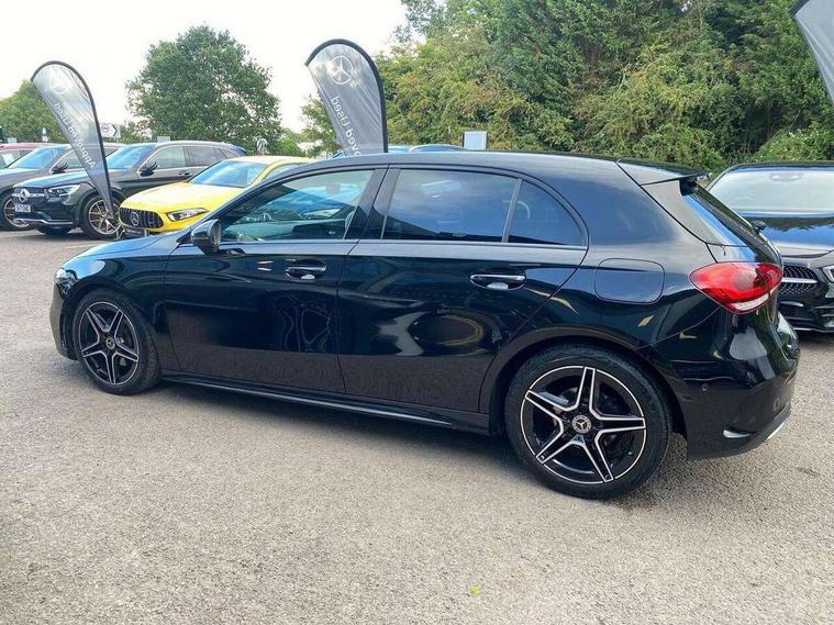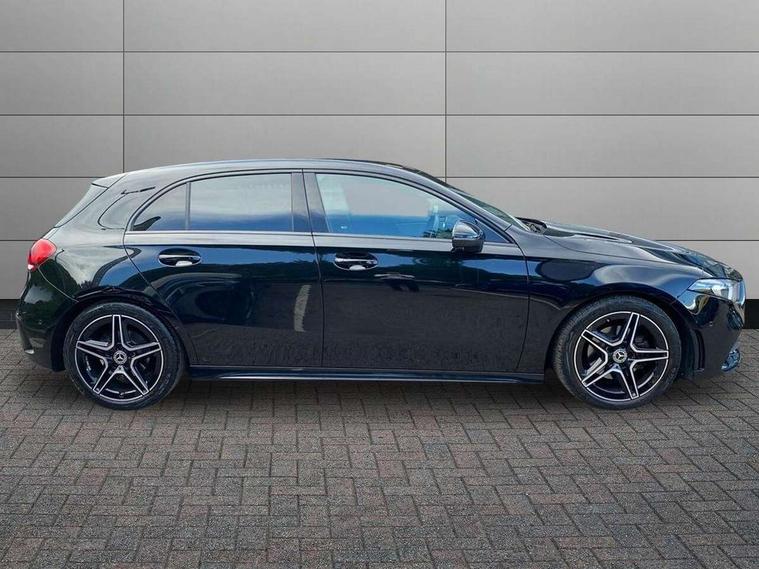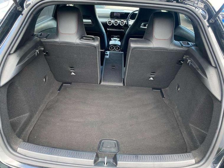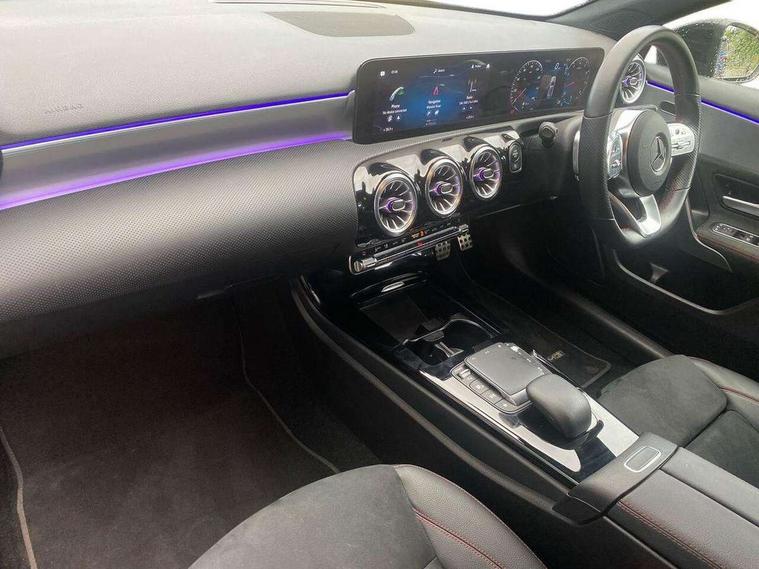 10.25" Digital instrument cluster display screen, 10.25" media display, 180 degree rear view camera with parking guidelines, Active parking assist with visual and audible warning of detected obstacles, Attention assist, Brake pad wear indicator warning light, Car wash mode, Cruise control + speed limiter, Direct steering, Dual bluetooth interfaces, DYNAMIC SELECT with a choice of driving modes (ECO, Comfort, Sport and Individual), ECO start/stop function, Fluid level warning indicator for fuel, oil, coolant and washer fluid, Hard-disk navigation, Hey Mercedes Voice activation, Lamp failure indicator, Lane keeping system, Mercedes me connect including emergency call system, accident recovery, breakdown and maintenance management, Mercedes me remote services, Outside temperature gauge, Owners manual in English, Pre-installation for private car sharing, Preinstallation for Mercedes Benz link, Service indicator (ASSYST), Smartphone integration with Apple CarPlay and Android auto, Speed limit assist, Speed sensitive power steering, Trip computer, Ultrasonic sensors positioned in the front and rear bumpers, Lowered comfort suspension, Rear axle torsion beam, 2 USB ports (type C) in rear stowage compartment and one in front of center console, 6 speakers, DAB Digital radio, MBUX multimedia system with DAB digital radio and touchpad including satellite navigation, Mercedes-Benz sound system - 100W, 4 Electric Front and Rear windows, Adaptive brake lights, AMG bodystyling - Front apron with splitter in chrome, rear apron with chrome trim and chrome visible trim elements in tailpipe, Automatic headlights, Black weather strip, Body colour bumpers, Body colour door handles with chrome inserts, Body colour side skirt, Electric adjustable and heated door mirrors with integrated LED side indicators, Exclusive diamond radiator grille, Exhaust system - Twin visible tailpipes in polished stainless steel, Headlamp assist automatic headlamp activation, Heated glass rear windscreen + timer control, LED High level third brake light, LED high performance headlamps with integrated LED daytime running lights, LED tail lamp, Privacy glass, Radio aerial, Rain sensing windscreen wipers with two sensitivity settings, Rear fog lights, Rear side wing doors, Rear wiper, 3 seat bench in 2nd row, 3 Spoke flat bottom leather multi function steering wheel with perforated leather in grip area, 40:20:40 split folding rear seats, Artico man-made leather/Microfibre Dinamica upholstery with red contrast stitching, Auto Mercedes-Benz child seat recognition sensor, Black air vents with surround in silver chrome, Black roof lining, Brushed stainless steel sports pedals with rubber studs, Controller on centre console with chrome surround, Floor mats with AMG lettering, Front centre armrest with storage compartment, Front seat backs luggage nets, Galvanished gear shift paddles on steering wheel, Heated front seats, Height/reach adjustable steering column, Illuminated Mercedes Benz lettering front door sills with changeable cover, Interior lighting - 64 colour Ambient lighting, Interior mirror with reading lamps in black and frameless, Manual height adjustable front seats, Rear head restraints, Seat occupancy sensor for front passenger seat, Single front passenger seat, Sports seats with integrated headrests, Stowage compartment in centre console with retractable cover, Sunvisors with illuminated vanity mirrors, Touchpad on center console, Twin front cupholders, Two zone thermotronic luxury automatic climate control, Light and sight pack - A Class, Mirror package - A Class, Night pack - A Class Saloon/Hatchback, Seat comfort pack - A Class, 3 rear 3 point seatbelts, ABS with Brake Assist, Active bonnet, Active brake assist includes forward collision warning system with autonomous braking, Adaptive brake assist with hold function and hill start assist, Black seatbelts, Childproof locks manually operated for rear doors and electrically operated for rear power windows, Crash responsive emergency lighting, Driver and passenger head and side airbags, Drivers knee airbag, Dual stage driver/passenger airbags, Electronic parking brake, ESP curve dynamic assist, ESP with ASR, Front and rear seatbelt reminder, Front brake callipers with Mercedes Benz lettering, ISOFIX and top tether child seat fixing points in two outer rear seats, Tyre pressure monitoring system, Warning triangle and first aid kit, Window airbags, Alarm system/interior protection/immobiliser, Keyless Go, Remote central locking and crash sensor with emergency opening function, Urban guard vehicle protection system with immobiliser and interior protection, Matrix look light longitudinal grain aluminium trim element, 18" AMG 5 twin spoke light alloy wheels aerodynamically optimised painted in black with highsheen finish, Summer tyres, Tirefit sealant kit,