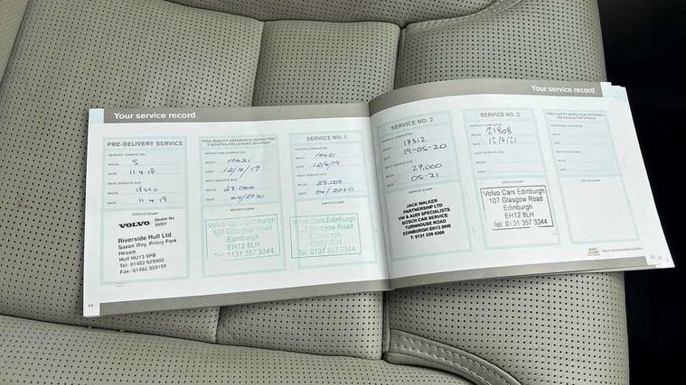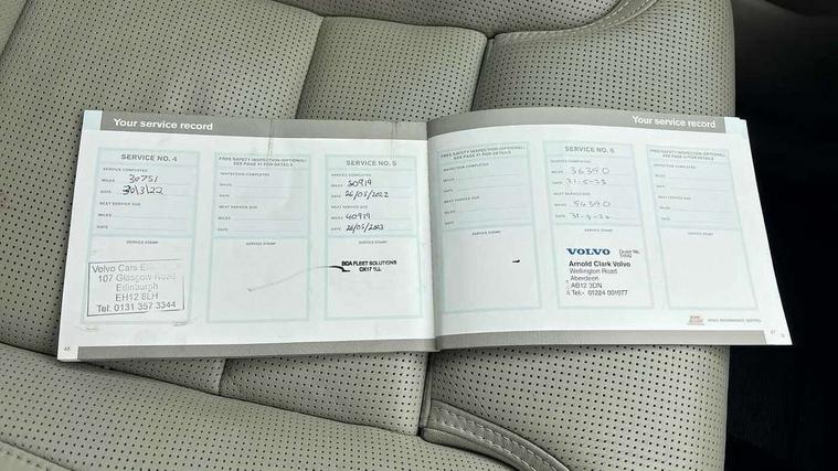 12.3" Active TFT crystal driver's instrument display, Adjustable steering wheel force, Bluetooth hands free telephone kit, Drive mode selector, Intelligent driver information system (IDIS), Lane keep assist with driver alert control, Oncoming Lane Mitigation, Power tailgate, Road Edge Detection, Service interval indicator, Speed limiter, Speed sensitive steering, Voice control system, Volvo on call, Diesel particulate filter, DAB Digital radio, Adaptive brake lights, Aluminium tread plates, Auto dimming interior + exterior mirrors, Body colour door mirrors, Chrome front lower bumper, Chrome lower door mouldings, Chrome side window trim, Electric front+rear windows, Electrically adjustable and heated door mirrors, Front skid plate, Headlamp levelling, High gloss black grille with chrome inserts, Home safe and approach lighting, Illuminated side steps, LED front fog lights, LED Headlights + Active high beam incorporating daytime running lights, Rain sensor windscreen wipers, Rear wiper, Roof spoiler, Silver roof rails, Tinted windscreen, Twin exhaust pipes, 12V power point in luggage area, 12V socket in front + rear tunnel console, 3 spoke leather steering wheel with chrome trim, 4 aluminium high level anchor points, 60/40 split folding rear seat, A-pillar parking ticket holder, Ambient lighting, B Pillar ventilation, Bright metal luggage threshold, Electric drivers seat with memory + mirrors memory, Electric front cushion extensions and side support, Electrically adjustable passenger seat with memory, Floor mats, Front and rear door pockets, Front centre armrest with storage compartment and cupholders, Front footwell illumination, Front/rear reading lights, Glovebox illumination, Head restraints for all seats, Heated front seats, Height adjustable drivers seat with lumbar support, Height/reach adjustable steering column, Illuminated driver/passenger vanity mirrors, Illuminated front cupholder, Illuminated luggage compartment, Illuminated tailgate, Isofix attachments on outer rear seats, Load cover, Lockable load floor, Memory function for passenger seat, Multicolour theatre lights, Nappa Leather Key Integrated Remote, Passenger seat adjustable for lumbar support, Perforated and ventilated nappa leather upholstery, Pollen filter, Rear armrest / integral cup holders / storage tray, Rear footwell illumination, Underfloor stowage compartment, WHIPS - Whiplash Protection System, 5 three point seatbelts, ABS/EBD, Child proof door locks, City safety, Drivers knee airbag, DSTC-Dynamic Stability and Traction Control, Dual stage driver/passenger airbags, EBA, Electronic parking brake with auto hold, Fasten seatbelt reminder, First aid kit, Hill descent control, Hill start assist, Hydraulic Brake Assist (HBA), Inflatable curtain, Passenger airbag deactivate switch, Road sign information display, Roll over protection, RSC - Roll stability control, Run off Road Protection, Seatbelt pre-tensioners, SIPS airbags, Tyre pressure monitor, Warning triangle, Anti-theft alarm including immobiliser/volume sensor + level sensor, Fuel flap with deadlocking system, Key integrated remote control central locking, Keyless Start, Locking wheel nuts, Private locking,