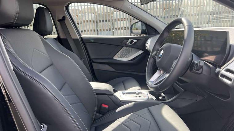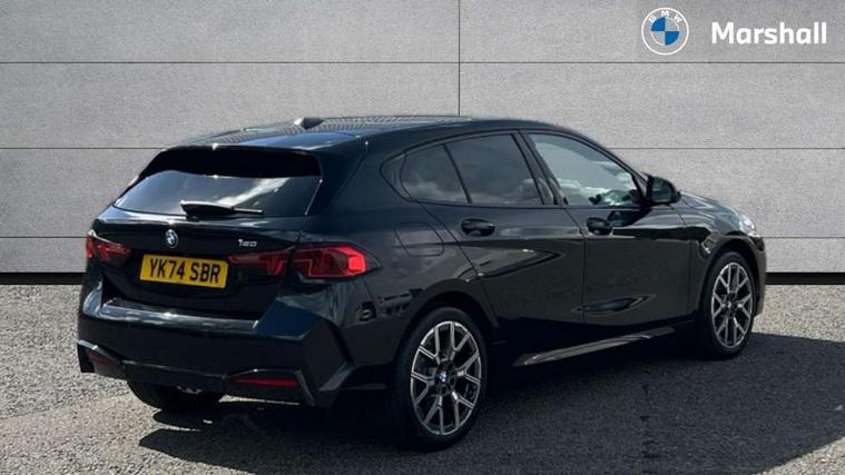 Active guard plus, Attentiveness assist, Bluetooth / WiFi interface for wireless connection of mobile terminal devices and audio streaming, BMW ConnectedDrive online services, BMW Live cockpit plus, BMW Teleservices, Check Control warning system for monitoring of lights and door/luggage compartment open warning, Eco pro mode, Electric power steering with Servotronic steering optimised at all speed ranges, Evasion assistant, Flat airvents in instrument panel with adjustable slats, Front and rear parking sensors, Front axle single joint with specific axle kinematics to minimise drive influences on steering + provide increased rigidity agile driving behaviour, Integrated owners handbook, Left turn warning with brake function, My modes (Personal / Efficient / Sport), Oil sensor for level and grade, On board computer, Optimum shift indicator, Park assist including reversing assistant, lateral parking aid and reversing assist camera, Personal e-SIM, Personal Profile, Pull away assistant, Rigidly mounted rear subframe - Multi link construction with separate spring / damper configuration and excellent driving characteristics, Speed limit Info including no-overtaking indicator, Speed limiter, 49 litre fuel tank, 7 speed automatic transmission with double clutch technology, Aluminium lightweight construction, Anti roll bar front and rear, Balancer shaft, Double VANOS twin scroll turbocharging system, Drive Performance Control, Electronic differential lock, Electronic selector lever, High precision injection, Petrol Particulate Filter, Suspension with twin tube gas filled shock absorbers with degressive characteristic curve, VALVETRONIC engine management, DAB Digital radio, Auto dimming rear view mirror, Automatic windscreen wipers and automatic headlight, Body colour door handles, Body colour mirror caps, Chrome exhaust twin tailpipes round 90mm in left, Direction indicator side lights in exterior mirrors, Electrically adjustable exterior mirror with mirror adjustment switch on drivers armrest and aspheric on driver side, convex on passenger side, Fading support, Follow me home headlights, Front and rear bumper system with replaceable deformation elements, Front and rear electric windows with open and close fingertip control, anti trap facility and comfort closing, Front bumper in Body colour with exclusive Sport air inlets finished in High gloss Black, Front door sill finishers in black plastic with BMW designation in metallic look, Grained matt black roof strip, Green tinted heat protection glazing, Heated rear window, High gloss black exterior mirrors, High gloss shadowline window frame, Recess cover mirror frames and B/C pillar embelisher trim, High level third brake light, Integrated front windscreen with washer jets, Kidney grille in chrome frame with highgloss black struts, LED daytime running lights, LED eyebrow turn indicators, LED front fog lights, LED Headlights, Lightweight engineering, Manual headlight beam throw control, Manual headlight levelling, Matt black air guide grilles, Matt black wheel arch trim, Model badge on tailgate right, Nearside reverse light in rear light cluster, Power folding and heated door mirrors, Preparation for high beam assistant, Rain sensor, Rear bumper in Body colour with exclusive Sport design elements finished in High gloss Black, Rear fog lights, Rear side wing doors, Rear window wiper, Shark fin antenna, Trailer stabilisation logic, Visible VIN plate, Welcome lighting, 12V power socket in front centre console with blanking plug, 3 rear seat head restraints, 3 seat bench in 2nd row, 3 spoke sports leather steering wheel in black leather with black stitching and decorative finisher in pearl chrome, Anthracite front and rear floor mats, Black boot net with lashing eyes, Cargo function on 2nd seat row, Child seat ISOFIX attachment for two outer rear seats and front passenger seat with anchorage points, Conditioned based service, Driver and front passenger backrest net on rear, Driver and front passenger seat heating, Driver side folding compartment in instrument panel, Folding rear clothes hook, Footrest and pedals in black plastic, Four grab handles integrated in roof lining, Front and rear door pockets with bottle holders, Front and rear side armrest integrated into door trim, Front armrest with storage compartment, Glove compartment, Height adjustable front head restraints, Luggage compartment for bag hooks on left and right, foldable luggage compartment liner and four lashing eyelets, Manual adjust steering wheel, Multi-function controls for steering wheel, Rear seat backrest with manual 60:40 split folding with 3 top tether clips integrated on rear of seat panels, Single front passenger seat, Storage compartment in centre console, Storage compartment in luggage compartment, Stowage of the parcel shelf in luggage compartment trim, Sun visors with vanity mirrors and insert tab, Two front centre console cupholders, Type C two USB ports in rear centre console, Upper retaining strap integrated into backrest rear panels, Connected pack professional - 1 Series, Interior lights pack - 1 Series, 2 tone horn, 3 point seatbelts on all seats, front pyrotechnic belt tensioners, stopper and belt force limiters, rear coded belt buckles, Airbags - Front driver/passenger, front and rear curtain head protection, front side, manual deactivation of front passenger airbag, Anti lock braking system (ABS) with brake assist, BMW emergency call, Brake drying, Braking readiness, Child proof locking system in rear door, Comfort modes, Cornering brake control, Crash sensor activating of airbags, Unlocking doors, hazard warning lights, fuel cut off, interior lighting+activation of safety battery terminal clamp, Driver and front passenger seat belt security check, Dynamic stability control + (DSC+), Dynamic Traction Control - DTC, Electrically operated hand brake including automatic hold function, Front and rear disc brakes, Seatbelt warning, Side impact protection, Tyre pressure 