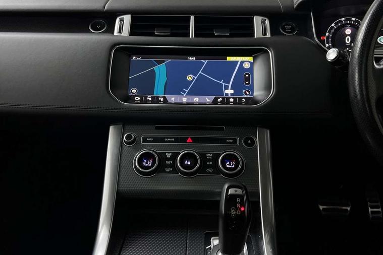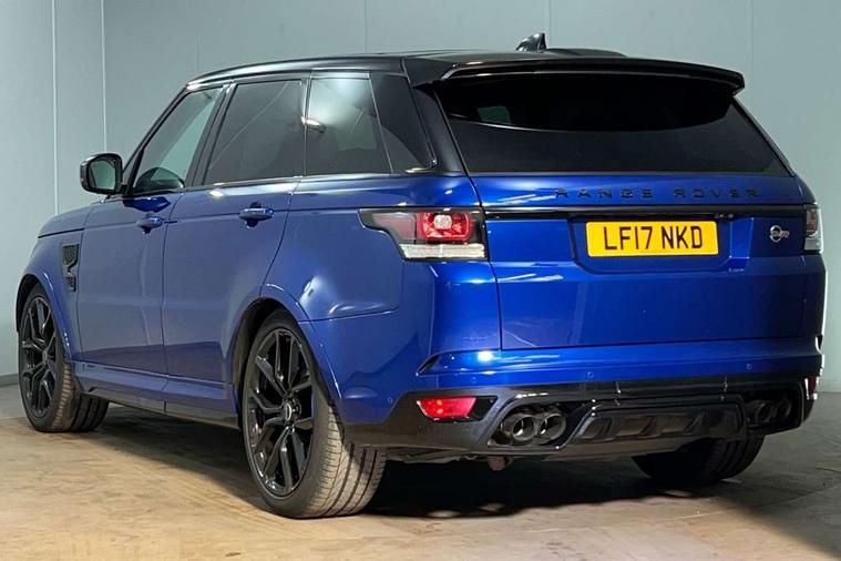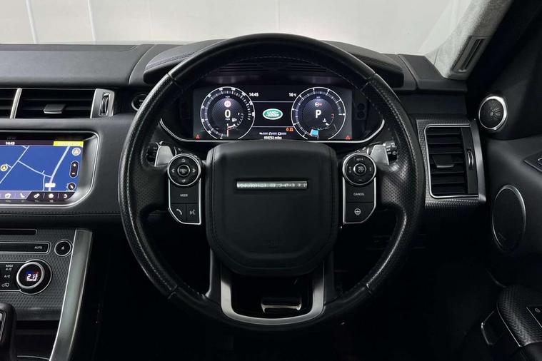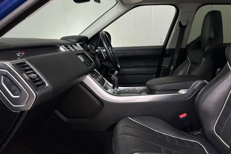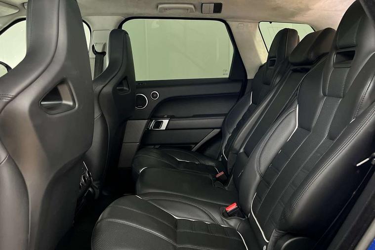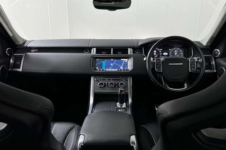 360 degree Park Distance Control, Bluetooth telephone connection, Dynamic response, Fatigue detection system, Front parking aid with visual display, Gesture tailgate, HDD Premium navigation including voice control, TMC with touch screen and media storage, InControl secure, Mist sensor, Push button starter, Rear park distance control, Speed limiter, Speed sensitive power steering, TFT Virtual Instrument Panel, Traffic sign recognition, Trip computer, Adaptive dynamics, Electronic air suspension, Terrain Response 2 Auto, Terrain Response 2 with dynamic program, Twin speed transfer box, Bluetooth audio streaming, DAB Digital radio, InControl protect, MP3 compatible radio/single CD player, USB/aux input socket, Active sports exhaust, Adaptive brake lights, Auto dimming door mirrors, Auto dimming rear view mirror, Automatic headlights with high beam assist, Body coloured side sills and bumpers, Daytime running lights, Door/quarter lights in toughened plate glass, Electric front/rear windows/one touch operation, Electric heated, adjustable, folding door mirrors with memory + approach lamp, Follow me home headlights, Gloss black door mirrors, Gloss black exterior trim, Headlight washers, Heated rear window, Heated washer jets, Heated windscreen, Illuminated aluminium treadplates with Range Rover lettering, Laminated front side windows, Laminated windscreen, LED rear lamps, Quad tailpipes, Rain sensor windscreen wipers, Rear wash/wipe, Remote window closing, Trailer stability assist, 16 way driver/passenger electrically adjustable sports seats with memory, 2 way rear head restraints, 60/40 split folding rear seat, Auto air recirculation, Centre armrest with cubby box, Climate control memory, Customer configurable interior mood lighting, Driver's footrest, Front and rear cupholders, Front and rear premium carpet mats, Front door storage bin, Front map lights, Front seat back map pockets, Front stowage pocket, Front/rear passenger grab handles, Glovebox, Heated front and rear seats, Integrated front head restraints, Isofix child seat preparation, Luggage compartment lighting, Multifunction steering wheel, Pollen filter, Premium Noble Plated Paddle Shift, Reach/rake electric adjustable steering column + entry/exit tilt away, Rear centre armrest, Roller blind loadspace cover, Sports pedals, SVR two tone oxford perforated leather upholstery, Three 12V accessory power outlets, InControl connect Pack - Range Rover Sport, 3 point seatbelts on all seats, ABS + EBD + EBA, Auto lock system when vehicle in motion, Auto locking differential, Autonomous emergency braking, Blue brake calipers, Cornering brake control (CBC), Curtain airbags, DSC - Dynamic Stability Control, Dual stage driver/passenger airbags, Electric child locks, Electronic parking brake, Electronic traction control, Front seatbelt pretensioners, Front side airbags, Height adjustable front seatbelts, Hill descent control, Low traction launch, Roll stability control, Seatbelt warning, Torque vectoring brake, Tyre pressure monitoring system, Keyless entry, Locking wheel nuts, Perimetric and volumetric anti theft alarm, Remote locking, Gloss black tailgate finisher,