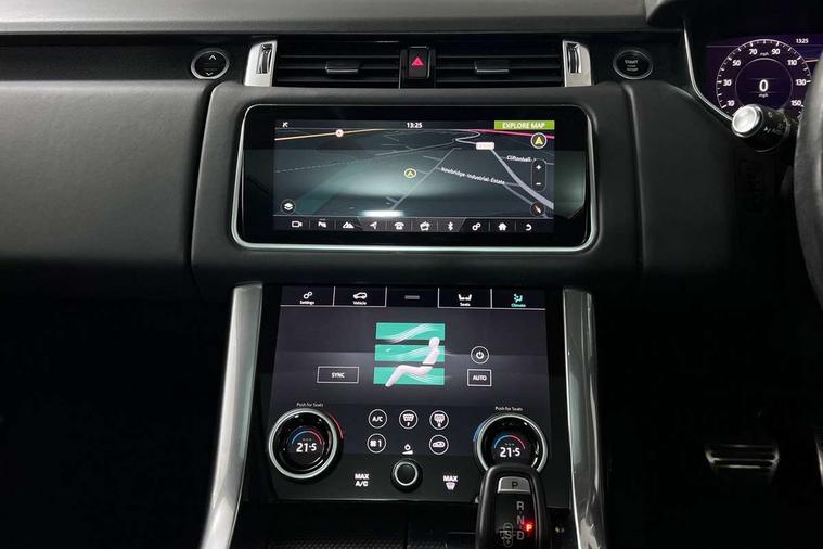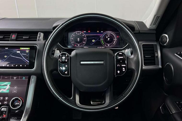 All Terrain Info Centre, Android Auto, Apple car play, Bluetooth connectivity, Electric power assisted steering (EPAS), Incontrol apps in vehicle touchscreen, Interactive Driver display instrument cluster, Mist sensor, Navigation pro system with 10" touch screen, app interface and media storage, Powered gesture tailgate/boot lid, Pro services and wifi hotspot, Push button start, Remote premium - Upgraded Incontrol remote app including remote climate control (engine dependent), remote lock + Unlock and remote beep + flash, TFT Virtual Instrument Panel, Touch pro duo system, Trip computer, 7 kW onboard charger, Adaptive dynamics, Electronic active differential with brake torque vectoring, Electronic air suspension, Gradient release control (GRC), Public charging cable, Terrain Response 2 with dynamic program, Twin speed transfer box, Bluetooth audio streaming, DAB Radio (Digital Audio Broadcasting), Incontrol protect - SOS emergency call with automatic collision detection, optimised assistance call and Incontrol remote app essential, USB/aux input socket, Acoustic front and toughened rear side glass, Acoustic laminated front windows, Adaptive brake lights, Auto dimming interior rear view mirror, Automatic headlights, Body coloured side sills and bumpers corners, Electric windows with one touch open/close and anti trap, Electrical towing preparation, Engine cover, Follow me home lighting, Front and rear recovery eyes, Front fog lights, Headlight power wash, Heated rear window, Heated windscreen includes heated washer jets, Illuminated metal treadplates with brand name script, LED rear lamps, Rain sensing windscreen wipers, Rear fog lights, Rear wash/wipe, Remote window closing, Side repeater indicators in mirror, Standard bonnet, Trailer stability assist, Twin bright tailpipes, 2 way active front head restraints, 2 way rear head restraints, Auto air recirculation, Bright metal foot pedals, Centre console with armrest, Climate control memory, Customer configurable single point entry, Driver's footrest, Extended leather upgrade includes door top rolls and leather instrument panel mid section, Front and rear cupholders, Front door storage space, Front map lights, Front seat back map pockets, Front stowage pocket, Front/rear passenger grab handles, Isofix child seat preparation, Leather steering wheel with Atlas inserts, Loadspace light, Loadspace mounting provisions, Lockable glovebox, Multifunction steering wheel, Pollen filter, Power socket, Reach/rake electric adjustable steering column + entry/exit tilt away, Rear centre armrest, Rear ISOFIX, Roller blind loadspace cover, Satin chrome gearshift paddles, Sports pedals, Three 12V accessory power outlets, Smartphone pack - Range Rover Sport, 3 point seatbelts on all seats, Anti-lock braking system (ABS), Brake pre-fill technology, Cornering brake control (CBC), Curtain airbags, Customer configurable autolock, DSC - Dynamic Stability Control, Dual stage driver/passenger airbags, EBD - Electronic brakeforce distribution, Electric parking brake, Electronic traction control, Emergency braking includes city, urban AEB and pedestrian, Front seatbelt pretensioners, Gradient acceleration control, Height adjustable front seatbelts, Hill descent control, Hill launch assist, Low traction launch, Passenger seat occupant detector with front airbags, Power operated child locks, Roll stability control, Seatbelt warning, TPMS (Tyre pressure monitoring system), Immobiliser, Intrusion sensor, Keyless entry, Locking wheel nuts, Perimetric and volumetric anti theft alarm, Remote locking, Tyre repair system,