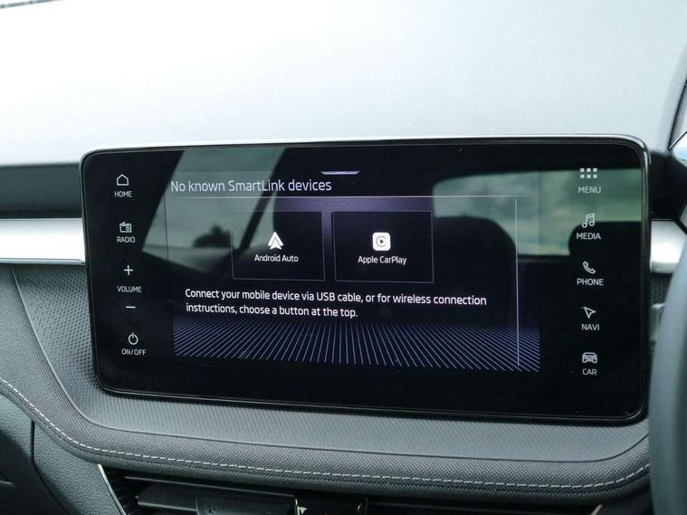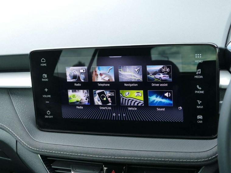 Advanced driver attention and drowsiness monitor, Bluetooth connection, Electromechanical power steering, Exterior temperature gauge, Service interval indicator, Traffic sign recognition, Virtual cockpit with 10.25" colour display, Wireless SmartLink for Apple CarPlay and Android Auto, 6 Speakers (4 in front and 2 in rear), 9.2" colour display skoda navigation system with voice control and web radio, Auxiliary socket for external MP3 player, DAB digital radio reception, Auto dimming rear view mirror, Body colour door mirrors, Body coloured bumpers, Chrome window surround, Door mirror integrated indicators, Front and rear electric windows, Front window wiper intermittent control, Headlight range control - Automatic, Ice scraper in fuel cap, LED daytime running lights with coming and leaving home feature, LED rear lights, Privacy glass, Rear LED fog light, Rear side wing doors, Rear window wiper with washing nozzles, Roof mounted spoiler, SKODA tailgate lettering in chrome, Third brake light, 2 reading lights in front and 2 reading lights in rear, 3 rear headrests, Backrest split and folding, Central console with removable cup holder and storage box, Chrome handbrake release button, Comfort seats, Door sills with fabia badging, Dual zone air conditioning with climatronic electronic control, Fabric upholstery, Front centre armrest, Gearshift knob/handle in leather, Hand brake lever handle in leather, Height adjustable front headrests, Height adjustable front seats, Height adjustable steering wheel, ISOFIX and TopTether anchorage points to the outer rear seats, ISOFIX and TopTether on the front passenger seat, Luggage compartment lighting, Manually adjustable lumbar support in front seats, Metallic grey interior door handles, Pollen filter, Rear seat bench unsplit, Single front passenger seat, Storm grey headlining, Sun visors with mirror and airbag label on passenger side, Textile floor mats, Ticket holder, Umbrella in drivers door, 3-point height adjustable front seats belts with pretensioner and force limiter, Automatic warning lights in case of crash, Driver and passengers airbag with switch off function, e-Call+, ESC including ABS, MSR, ASR, EDS, HBA and XDS, Front and rear seat belt warning, FRONT ASSIST (AEB City and AEB Inter Urban), Front side airbags, Head airbags, Hill hold control, One tone horn, Pedestrian protection, Three rear 3-points safety seat belts with pretensioner and force limiter including stop function for outer rear seat belts, Tyre pressure monitoring system, Anti-theft alarm system including immobiliser, interior monitoring, backup horn, and towing protection, Central locking with radio remote control, interior controls, SAFE function and 2 foldable keys, Chrome edged air vents, Metallic grey central console cover, Metallic grey upper decorative trim, Satin black door and side trim panel in front, Textile microsuede grey lower decorative trim with art grey stitching, Anti-theft wheel bolts protection, Super-low rolling resistance tyres,