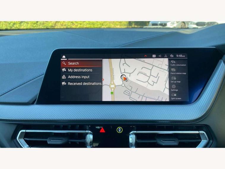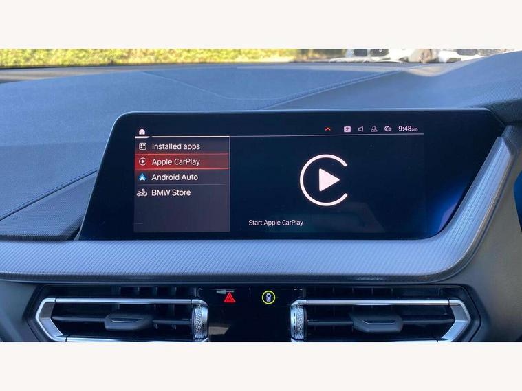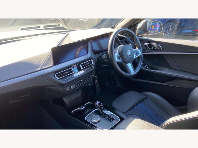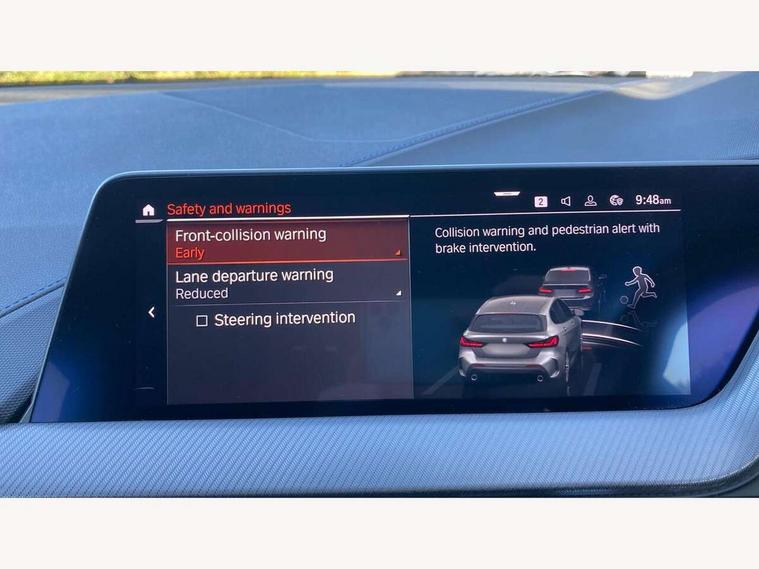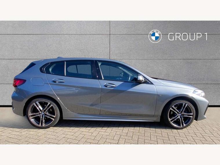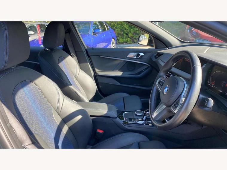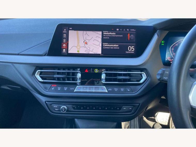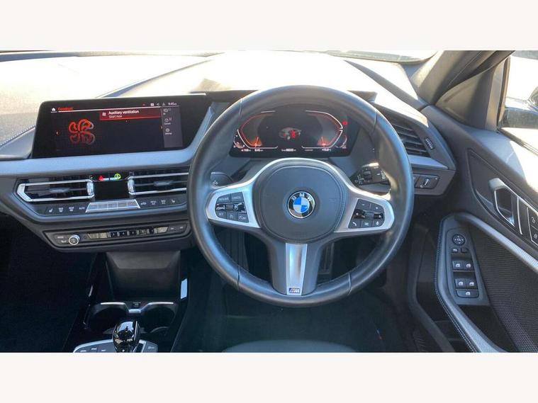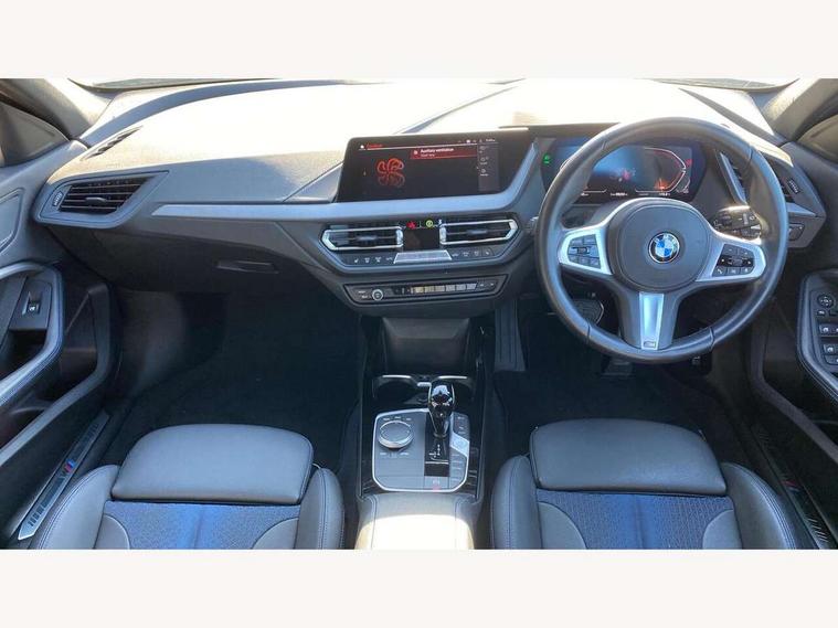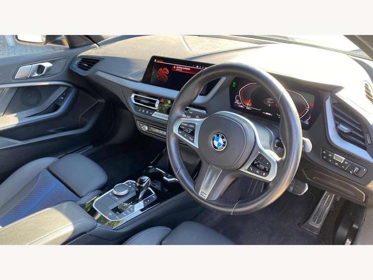 Active guard plus, Attentiveness assist, Bluetooth / WiFi interface for wireless connection of mobile terminal devices and audio streaming, BMW ConnectedDrive online services, BMW Teleservices, Check Control warning system for monitoring of lights and door/luggage compartment open warning, Cruise control with brake assist, Eco pro mode, Front axle single joint with specific axle kinematics to minimise drive influences on steering + provide increased rigidity agile driving behaviour, Integrated owners handbook, Lane departure warning system, Oil sensor for level and grade, On board computer, Optimum shift indicator, Personal Profile, Pull away assistant, Rigidly mounted rear subframe - Multi link construction with separate spring / damper configuration and excellent driving characteristics, Speed limit Info including no-overtaking indicator, Speed limiter, Aluminium lightweight construction, Anti roll bar front and rear, Balancer shaft, Double VANOS twin scroll turbocharging system, Drive Performance Control, Electronic differential lock, High precision injection, M sport suspension, Petrol Particulate Filter, Twin tube gas filled shock absorbers with degressive characteristic curve, VALVETRONIC engine management, DAB Digital radio, Auto dimming rear view mirror, Automatic headlight beam throw control, Automatic windscreen wipers and automatic headlight, Body colour door handles, Body colour mirror caps, Body colour roof trims, Chrome 'M' logo side designation, Chrome exhaust twin tailpipes round 90mm in left, Chrome kidney grille frame with Satin Aluminium struts, Direction indicator side lights in exterior mirrors, Fading support, Folding side mirrors with auto dimming/folding wing mirrors with auto dimming, Follow me home headlights, Front and rear bumper system with replaceable deformation elements, Front and rear electric windows with open and close fingertip control, anti trap facility and comfort closing, Front door sill finishers in black plastic with M designation in metallic look, Green tinted heat protection glazing, Heated, electrically adjustable exterior mirror aspheric on driver side, convex on passenger side, High gloss shadowline window frame, Recess cover mirror frames and B/C pillar embelisher trim, High level third brake light, Integrated front windscreen with washer jets, LED daytime running lights, LED eyebrow turn indicators, LED front fog lights, Lightweight engineering, Matt black air guide grilles, Matt black wheel arch trim, Model designation on electric bootlid, Nearside reverse light in rear light cluster, Preparation for high beam assistant, Rear fog lights, Rear side wing doors, Rear window wiper, Shark fin antenna, Trailer stabilisation logic, Visible VIN plate, Welcome lighting, 12V power socket in front centre console with blanking plug, 3 rear seat head restraints, 3 seat bench in 2nd row, 3 spoke sports leather steering wheel with black leather and stitching, pearl chrome decorative finish, specific M Badge, Ambient interior lighting, Anthracite headlining, Black boot net with lashing eyes, Cargo function on 2nd seat row, Child seat ISOFIX attachment for two outer rear seats and front passenger seat with anchorage points, Conditioned based service, Driver and front passenger seat heating, Folding rear clothes hook, Four grab handles integrated in roof lining, Front and rear door pockets with bottle holders, Front and rear side armrest integrated into door trim, Front armrest, Front sports seats, Glove compartment, Height adjustable front head restraints, Luggage compartment for bag hooks on left and right, foldable luggage compartment liner and four lashing eyelets, Manual adjust steering wheel, Multi-function controls for steering wheel, Single front passenger seat, Storage compartment in centre console, Sun visors with vanity mirrors and insert tab, Two front centre console cupholders, Two zone automatic air conditioning, Velour floor mats, Additional interior lighting pack - 1 Series, BMW live cockpit professional pack- 1 Series, Connected pack professional - 1 Series, Interior lights pack - 1 Series, M Sport exterior styling aerodynamics pack - 1 Series, 2 tone horn, 3 point seatbelts on all seats, front pyrotechnic belt tensioners, stopper and belt force limiters, rear coded belt buckles, Airbags - Front driver/passenger, front and rear curtain head protection, front side, manual deactivation of front passenger airbag, Anti lock braking system (ABS) with brake assist, BMW emergency call, Brake drying, Braking readiness, Child proof locking system in rear door, City braking function, Comfort modes, Cornering brake control, Crash sensor activating central locking release, hazard warning lights, fuel cut off, interior lighting + activation of safety battery terminal clamp, Driver and front passenger seat belt security check, Dynamic stability control + (DSC+), Dynamic Traction Control - DTC, Electrically operated hand brake including automatic hold function, Front and rear disc brakes, Seatbelt warning, Side impact protection, Tyre pressure monitoring system, Warning triangle and first aid kit, Central locking switch for all doors, fuel filler cap and luggage compartment, Deadlocking function system to all doors, Drive away locking system on all doors and luggage compartment with de-activated in iDrive settings, Locking wheel bolts, Remote control with integrated key with High-gloss Black inlay and M designation and 1 button for open/ close lock, window, open luggage compartment, Start/stop button illuminated in centre console with keyless engine start and auto start stop deactivation button, Thatcham Cat.1 alarm and immobiliser, Wheel slip limitation close to the actuator (ARB), Contrast stitching on instrument panel, Electrically powered 12V compressor, Reduced rolling resistance tyres,