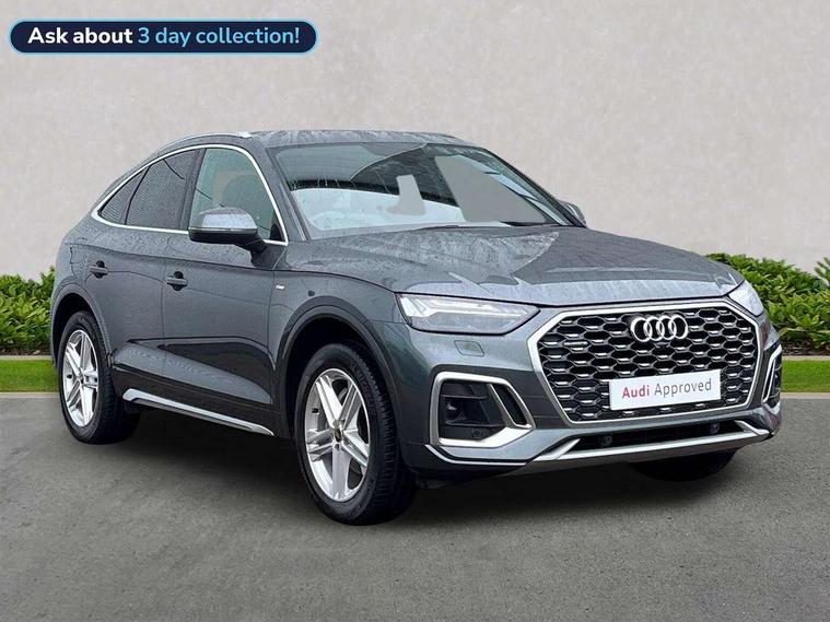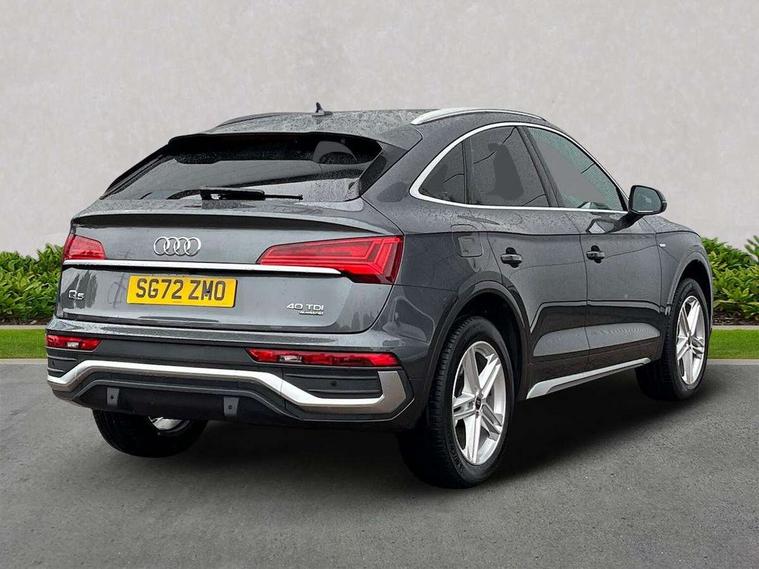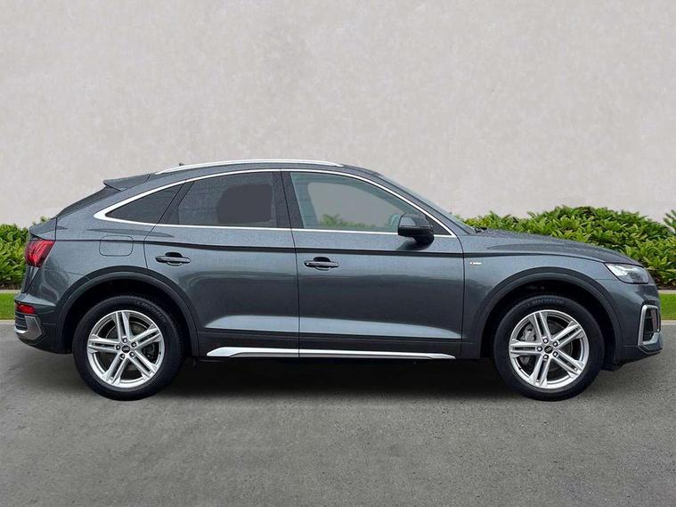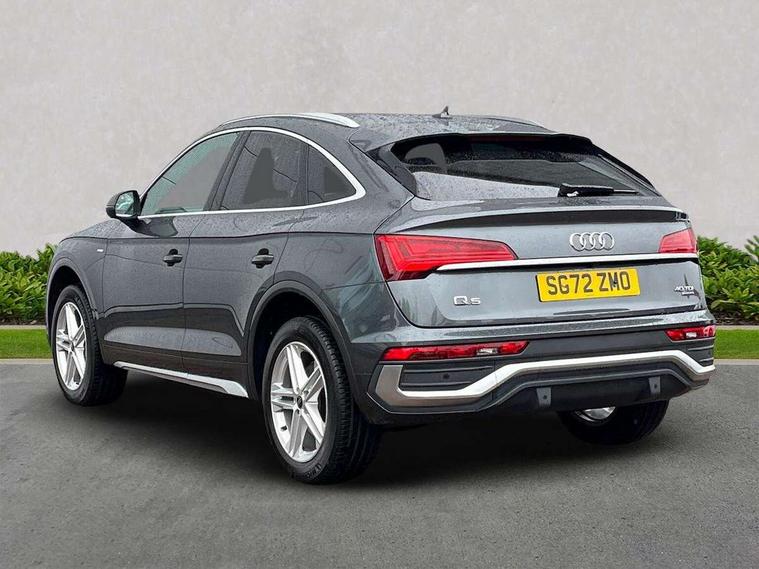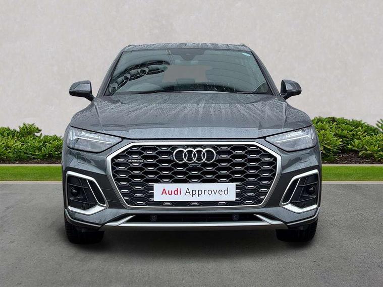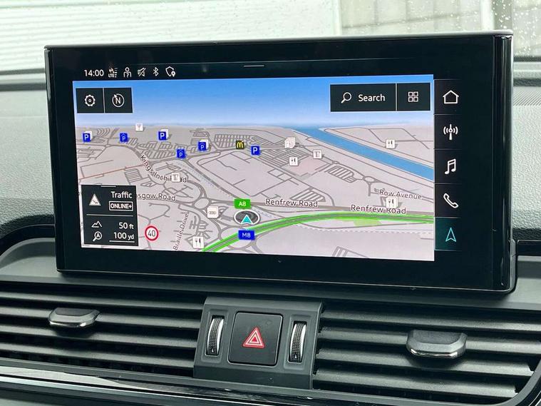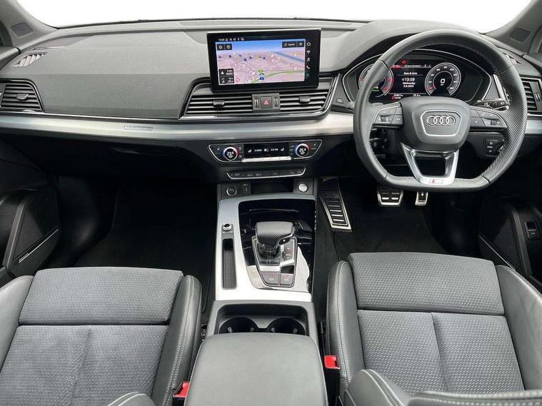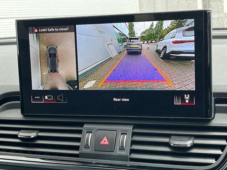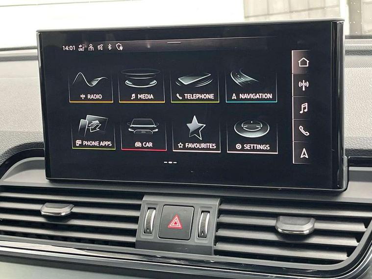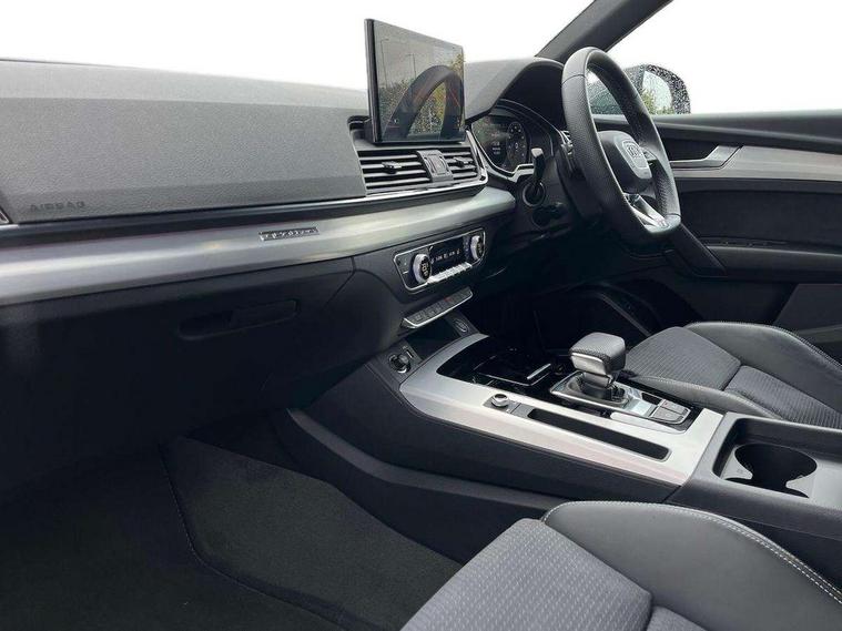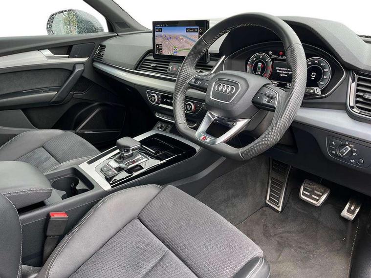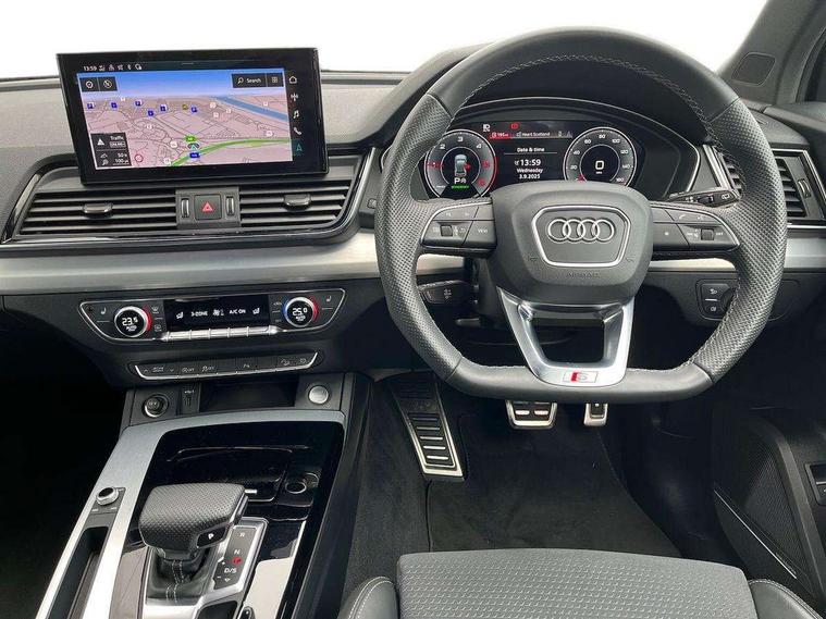 Audi connect safety and service (e-call), Audi connect with Amazon Alexa Integration, Audi drive select, Audi virtual cockpit plus with 12.3" screen and three different layout designs, Audi wireless smartphone interface, Automatic start-stop system with coasting functionality and efficiency programme, Bluetooth interface, Electro - mechanical power assisted steering, MMI navigation plus with 10.1" touch screen, Power tailgate, Reversing camera, Service interval indicator, Voice control system with Audi hotword activation "Hey Audi", Diesel particulate filter, Quattro on demand, S line sports suspension, 2 x USB charging port with aux input socket, DAB Digital radio, Acoustic windscreen, Aluminium roof rails, Audi matrix LED headlights with dynamic front and rear indicators, Auto dimming door mirrors, Auto dimming rear view mirror, Automatic headlights and windscreen wipers, Body colour door mirrors, Body colour rear diffuser with matt aluminium silver surrounds, Body colour underbody protection, Chrome plated exhaust trims, Daytime running lights, Door sills in Selenite silver, Electric adjustable/heated/folding door mirrors, Front air inlet surrounds in aluminium, Front and rear electric windows, Front radiator grille in honeycomb design, Headlight washers, High level LED brake light, Lower bumpers painted in contrast Manhattan grey, Rear chrome trim strip below lights, Rear privacy glass and rear side windows, Rear side wing doors, Rear wiper, Roof bars, S Line badges on the front wings, S Line front and rear bumpers, S Line rear spoiler, S Line side skirts, 3 rear headrests, 40:20:40 split folding 3 rear bench seat in 2nd row with rear centre armrest, Black cloth headlining, Comfort front centre armrest, Contrast stitching on seats, steering wheel and gear lever gaiter, Deluxe 3 zone electronic climate control, Front head restraints, Front/rear floor mats, Gear lever in black leather, Heated front seats, Height/reach adjustable steering column, Illuminated door sill trims with S logo, ISOFIX child seat mounting and top tether, Manual seat adjustment with 4-way electric lumbar support, Removable luggage compartment floor, Single front passenger seat, Stainless steel pedals, Sunvisors with vanity mirrors, Trunk roller cover, High gloss pack - Q5, LED interior light pack - Q5, 3 point seatbelts on all seats, 6 airbags - Driver, front passenger, curtain and side airbags, Electrically operated child locks on rear doors, Electromechanical parking brake, Electronic stabilisation control including ABS, ASR and EDL, Front passenger airbag deactivation, Hill descent control, Hill hold assist, Multi collision brake assist, Pop-up bonnet for pedestrian protection, Pre sense city, Seat belt force limiter, Seatbelt monitoring, Tyre pressure warning, Warning triangle and first aid kit, Anti theft alarm, Anti-theft wheel bolts, Keyless Go access/ignition system, Remote central locking, Matt brushed aluminium inlays,