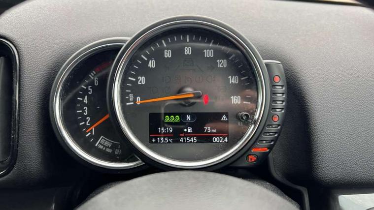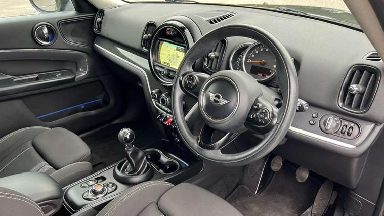 Brake pad wear indicator warning light, DTC - Dynamic traction control, Exterior temperature gauge, Intelligent emergency call, MINI TeleServices, Navigation system, On board computer, Personal Profile, Service interval indicator, Servotronic speed sensitive power steering, Electronic differential lock, Performance Control, Auxiliary input socket, DAB digital radio module, MINI Connected, MP3 compatible radio/single CD player, Radio visual boost, Anti dazzle rear view mirror, Body colour scoop integrated into engine- compartment lid, Chrome door handles, Chrome headlight surround, Chrome plated radiator grille, Chrome side scuttle, Chrome window surround, Electric front windows + one touch + anti-pinch, Electrically adjustable door mirrors, Follow me home headlights, Heated door mirrors/heated windscreen washers, Heated rear window with automatic switch off, Metal look door sill finishers, Rain sensor including auto headlights activation, Rear wiper, Twin chrome exhaust tailpipes, White indicator lights, 12V power point front, 2 cupholders in front centre console, 4 lashing points to secure luggage, 40:20:40 split folding rear seats, Centre console storage box, Chrome interior door handles, Driver/passenger sunvisors, Front and rear headrests, Front and rear Isofix child seat preparation, Front and rear velour floor mats, Front centre armrest with storage compartment, Front interior light, Front passenger grab handle, Front seat backrest storage nets, Heater with recirculation function, Height/reach adjust steering wheel, Luggage compartment lighting, Multifunction steering wheel, Rear grab handles, Sensatec gearshift and handbrake, Sport front seats, Storage compartments in doors, Toolkit in luggage compartment, Interior lights pack - Countryman, MINI Excitement Pack - Countryman, 3 point automatic seatbelts, 3 point seatbelts on all rear seats, ABS, CBC - (Cornering brake control), Crash Sensor - activates hazard/interior lighting + unlocks doors, Driver and passenger airbags, Driver and passenger side airbags, DSC - Dynamic Stability Control, Electronic brake force distribution, Electronic parking brake, Front curtain airbags, Front passenger airbag deactivation, Fuel cut off safety device, Hill start assist, Pyrotechnically pre-tensioned front seatbelts, Tyre pressure warning, Automatic door locking, Keyless Start, Locking wheel bolts, RF remote control central locking, Second remote key, Thatcham category 1 alarm + immobiliser,