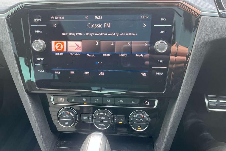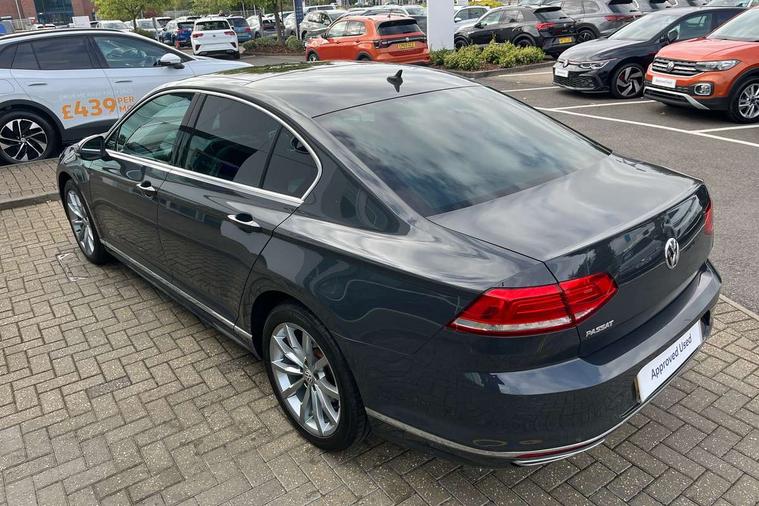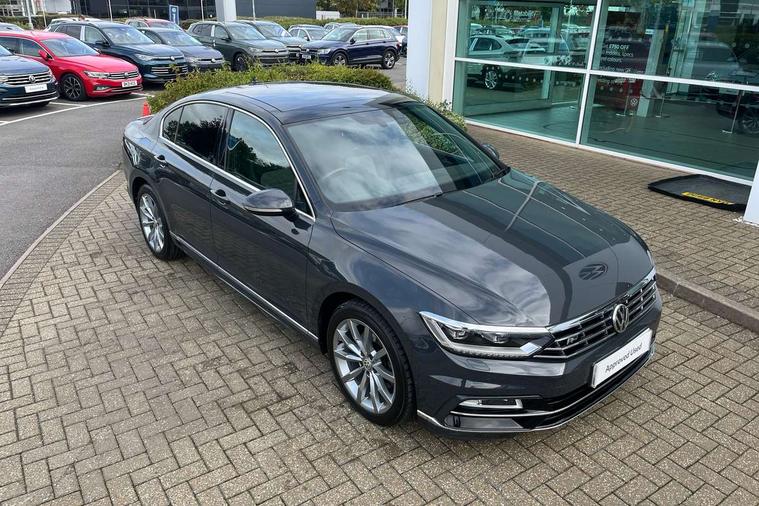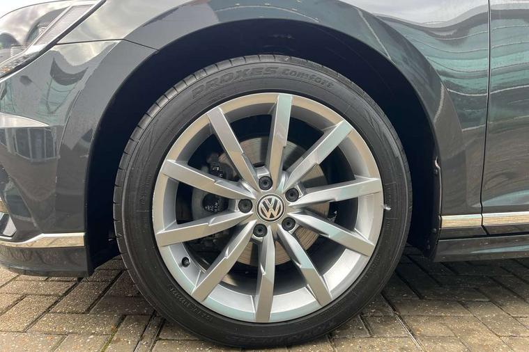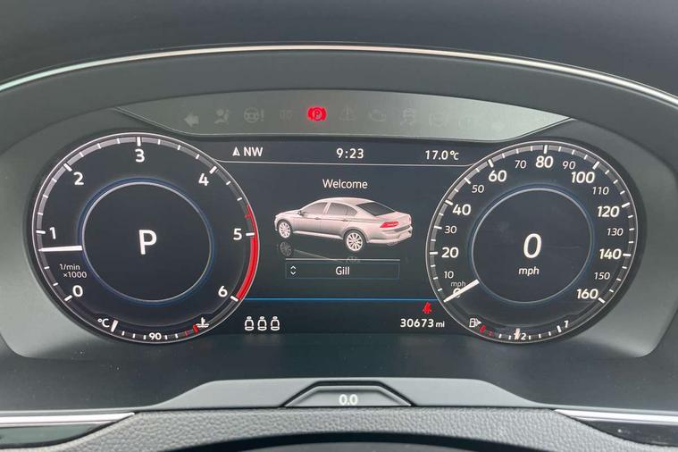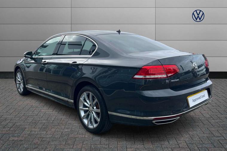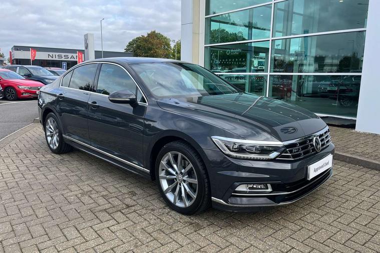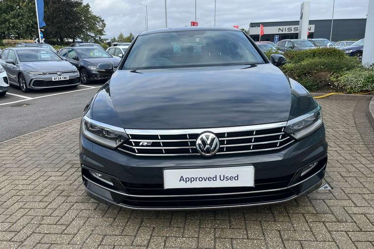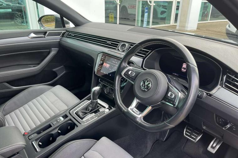 Adaptive cruise control, Analogue clock, Door/boot open warning light, Driver alert system, Driver profile selection, Exterior temperature gauge with frost alarm, Information display, Low washer fluid warning light, Multifunction computer, Remote boot release, Remote fuel flap release, Rev counter with fuel gauge, Service interval indicator, Speed limiter, Warning buzzer and light for front seatbelts unfastened, Diesel particulate filter, Auxiliary socket for external device, Composition media system with Radio/CD/MP3, DAB Digital radio, MDI with USB/iPod connection cables, SD card slot, Auto dimming driver's door mirror, Auto dimming rear view mirror, Automatic activation of hazard warning lights, Automatic headlights with dusk sensor, Body colour bumpers, Body colour door handles, Body coloured door mirrors, Chrome fog light surround, Chrome louvres in grille, Chrome side sills, Chrome side window surrounds, Chrome surround for air intake, Coming/leaving home lighting function, Electric front windows, Electric panoramic sunroof with sunblind, Electric rear windows, Electrically adjustable and heated door mirrors, Front fog lights with static cornering function, Gloss black finish on B pillar, Headlight range control, Heated rear window, LED rear lights, R Line body kit, Rain sensor, Remote folding door mirrors and puddle lights, Trailer stability assist, Twin Trapezoidal tailpipes, Windscreen wipers/ intermittent wipe + 4 position delay, 12V Accessory socket in centre console, 12V socket in luggage compartment, 3 rear head restraints, 3 spoke multifunction leather steering wheel including paddle shift, 3 Zone electronic climate control with automatic air recirculation, 4 boot load lashing points, 60/40 split folding rear seat, Black roof lining, Driver's cushion tilt adjust, Entry lights on doors, Front + rear carpet mats, Front and rear interior lighting with delay and dimming function, Front centre armrest with storage compartment, Front comfort seats, Front cupholders x2 with covers, Front door pocket bottle holders, Height adjustable head restraints, Height/reach adjust steering wheel, Leather gearknob, Load through provision, Lockable, illuminated, cooled glovebox, Luggage compartment cover, removable, Luggage compartment lighting, Rear centre armrest with cupholder and storage, Stainless steel pedals, Storage compartment in driver's door, Storage compartment in passenger's door, Storage compartment in rear doors, Storage compartment in roof console, Storage pockets in backrests of front seats, Sunvisors with illuminated vanity mirrors, Variable boot floor, Ambient lighting pack - Passat, Mirror pack - Passat, 3 rear 3 point seatbelts, ABS, brake assist and EBD, Automatic post collision braking, Curtain airbags, Driver/Front Passenger airbags, Driver/Front passenger WOKS head restraints, Drivers knee airbag, Electronic parking brake with auto hold, ESP with EDL + ASR, First aid kit, Front assist including city emergency braking, Front side airbags, Height adjustable front 3 point seatbelts + pretensioners, Hill hold function, Passenger airbag deactivation system, Pre crash system, Rear seatbelt warning indicator, Rear side airbags, Warning triangle, Alarm with interior protection, Electronic engine immobiliser, Keyless Start, Remote central locking with 2 remote folding keys, Brushed aluminium interior trim, Chrome air vent and instrument surround, Piano black centre console, White instrument dials,
