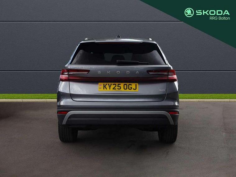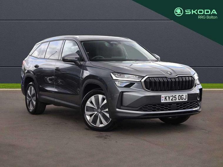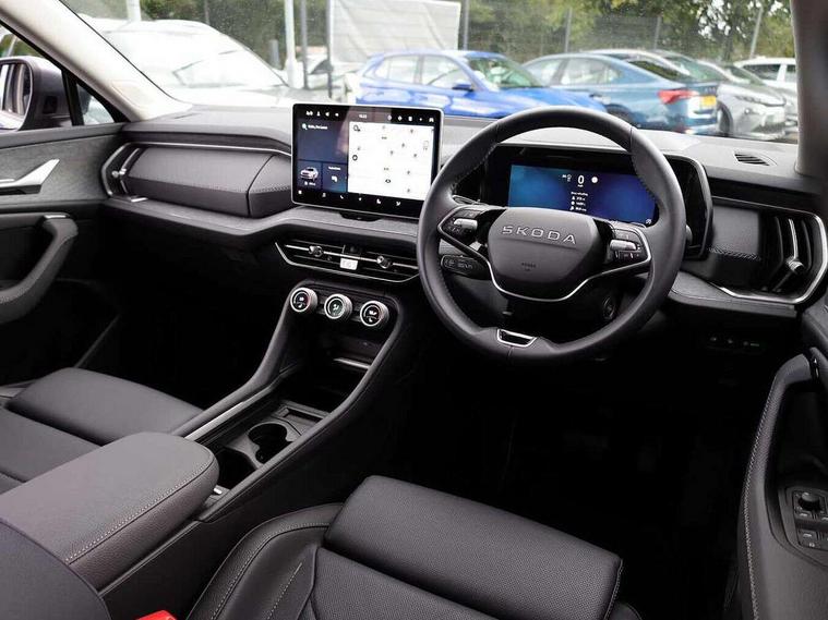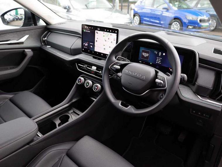 13" satellite navigation touchscreen display, Blind spot detection with door exit warning, Bluetooth system, ChatGPT functionality, Driver alert - Fatigue and drowsiness monitor, Dry display cleaner, Emergency call, Front and rear parking sensors, Front cross traffic assist, Lane assist, PAS, Rear traffic assist, Tailgate unlocking from outside, Traffic sign recognition, USB C Port x 2 in front centre console, Virtual Cockpit - 10.25" digital display, Voice control system, Wireless charging for two smartphones (15W) with cooling function, Wireless SmartLink for Apple CarPlay and Android Auto, Stop/start function, 2x USB-C in the rear, DAB Digital radio, Aero front windscreen wipers with intermittent function, Auto dimming rear view mirror, AWL (all weather lighting) and all weather light with cornering function, Black wheel arch surrounds, Body colour bumpers, Body colour door mirrors and handles, Cornering light and poor weather light, Electric folding /adjustable/separted heated/folding door mirrors, auto dimming with boarding sports and memory function, Electric front and rear windows, Exterior black decorative trims, Heat insulating glass in windshield, Heated rear window, Ice scraper in fuel tank cap, Invisible tailpipe, LED daytime running lights, LED third brake light in rear spoiler, Light assistant with automatic headlight control and coming home feature, Logo projection in door mirrors, Privacy glass, Rear roof spoiler, Rear side wing doors, Rear window wiper, Red decorative strip between rear LED lights, Safety reflectors on front and rear doors, Unique dark chrome design logo on alloy wheels, Window control switches with black trim, Windscreen wipers with rain sensor, Without engine designation, 1.5l bottle holder points in all door, 1x centre rear reading light, 2 seat bench in 3rd row, 3 configurable smart dials with 32mm coloured display, 3 seat bench in 2nd row, 4 foldable roof handles with rear coat hooks, Ambient interior lighting - Dashboard, front-door stowage compartments, front and rear door panels and footwell lighting, Automatic gear selector on steering column, Chrome interior door handles, Driver/front passenger reading lights, Fabric headlining, Fixed bench 40:60:40 split folding backrests, Front and rear floor mats, Front centre armrest with jumbo box storage compartment, cup holder and 12V socket, Height adjustable front headrests, Isofix child seat fittings in outer middle row rear seats and front passenger with top tether, Manually adjustable steering column, Pollen filter, Rear centre armrest with cupholders, Rear seat boot backrest release, Single front passenger seat, Skoda lettering on steering wheel, Storage pocket including mobile phone pockets on the backs of the front seats, Sunvisors with illuminated vanity mirrors, Three rear height adjustable headrests, Ticket holder on A Pillar, Tri zone climate control, Umbrella in door panel x1 made from sustainable materials, Upper and lower glovebox with card holder and coin compartment, USB C port by rear view mirror for charging only (15W), Exterior styling pack - Kodiaq, Auto door release and activation of warning lights in the event of an accident, Driver and front passenger airbag with knee airbag and front passenger airbag deactivation, Electric child locks, Electronic parking brake, ESC (incl. ABS+EMD+MSR+ASR+EDL+HBA+DSR+RBS+ESBS+MCB+TSA+XDS), Front assist with braking reaction to vehicles, pedestrians and cyclists, Front disc brakes, Fuel cut off safety device, Height adjustable front 3 point seatbelts + pretensioners, Hill hold assist, Junction assist with automatic emergency braking, Rear disc brakes, Safety vest holder in door, Seat belt reminder for all seats, Three point rear seat belts, Two tone horn, Tyre pressure monitor, Anti-theft wheel bolts, Immobiliser, Remote central locking with 2 keys,
