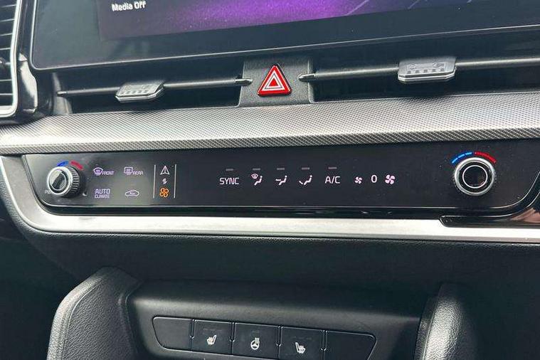 12.3" Display with navigation, 12.3" supervision colour cluster display, Apple car play/Android Auto with voice control, Cruise control + speed limiter, Drive mode selector, E-call, Forward collision avoidance assist (FCA) - city/pedestrian/cyclist/junction covering, Front and rear parking sensors, Intelligent speed limit assist, Kia Connect (UVO), Lane Following Assist (LFA), Lane keep assist, Low washer fluid warning, Rear view monitor, Reversing camera system integrated into centre fascia screen, Speed sensitive power steering, Trip computer, Windscreen washer level indicator, Intelligent Stop and Go, 6 speaker audio system, Bluetooth audio streaming, DAB Radio with MP3, Rear USB port, Steering wheel mounted audio controls, USB port for connection of a media device, All round electric windows with drivers and front passenger auto up/down function, Automatic headlight control system, Automatic window defogger, Backlite glass heated with timer, Black side sill and wheel arch body mouldings, Body colour and black bumper with silver accents, Body colour door mirrors, Body colour exterior door handles, Electrically adjustable/heated/folding door mirrors with LED indicators, High beam assist, Interior electrochromic mirror, LED daytime running lights, LED front fog lamps, LED headlamps (low and high beam - MFR type), LED High mounted stop light, Rain sensing wipers with aero blades, Rear fog lamp, Rear privacy glass, Rear side wing doors, Rear skid plate - silver, Rear spoiler, Rear wiper, Satin finished beltline, Silver radiator upper garnish and door garnish, Silver roof rack, Trailer stability assist, 12V power socket in front centre fascia and luggage compartment, 2nd row personal lamps, 3 seat bench in 2nd row, 3 x passenger assist grips, 40/20/40 split folding rear seat, All-round height adjustable headrests, Centre console storage box, Cloth/faux leather upholstery, Cupholders in rear armrest, Door courtesy lamps, Drink holder at centre armrest, Driver and front passenger side sunvisors with illuminated vanity mirrors, Drivers seat power lumbar support, Electric height adjustable front seats, Front and rear door storage, Front seat and rear pockets, Front/rear centre armrests, Gear shift indicator, Glovebox illumination, Heated front and outer rear seats, Heated steering wheel, Interior door lock/unlock function, ISOFIX Child seat top tethers and anchor fixings outer rear seats, Leather steering wheel, Luggage area light, Luggage area load cover, Luggage net with hooks, Metal paint interior door handles, Overhead console lamp, Rear coat hooks, Single front passenger seat, Three zone climate control, Tilt/telescopic adjustable steering wheel, Ventilation ducts to rear compartment, Active front headrests, All round 3-point seatbelts, Anti-lock braking system (ABS), Dual front side airbags, Dual horn, Electronic parking brake, Electronic stability control with downhill brake control, Front passenger airbag cut-off switch, Front seatbelt pretensioners + load limiters, Height adjustable front seatbelts, Hill start assist control (HAC), Impact sensing auto door unlocking, Multi collision brake assist, Rear door child safety locks, Rear seat alert system, Traction control, Twin curtain airbags, Twin front airbags, Tyre pressure monitoring system, Advanced anti-theft system including immobiliser and alarm, Door deadlocks, Engine Start/Stop Button with Smart Entry System, Locking wheel nuts, Speed sensitive auto door locking, Visible vehicle identification number, Aluminium pattern finish centre fascia and door garnish, 18" Alloy wheels, Tyre mobility kit,