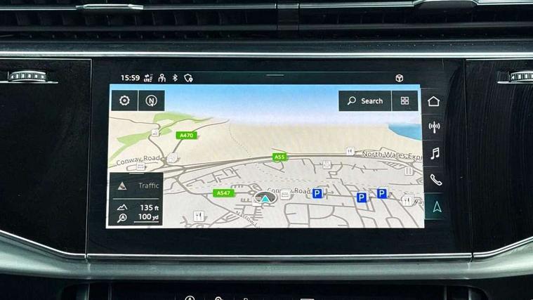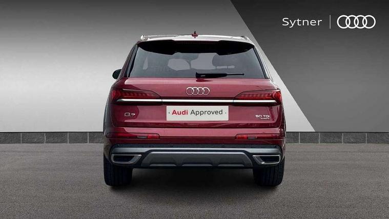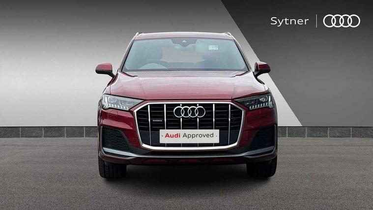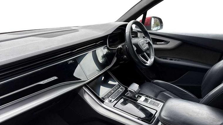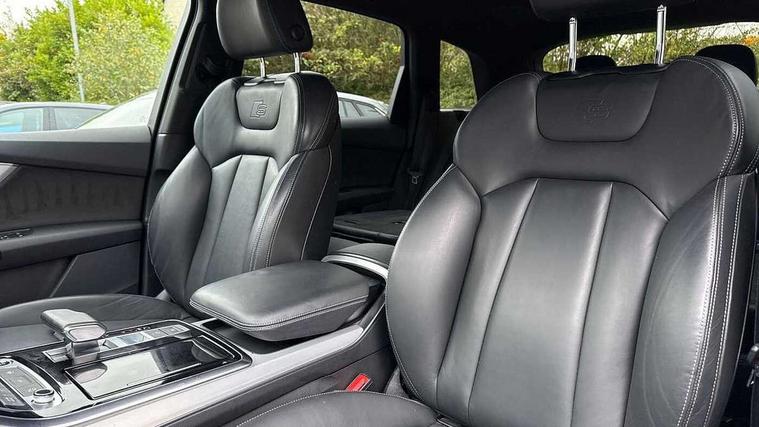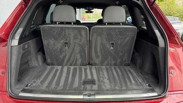 Audi connect safety and service (e-call), Audi connect with Amazon Alexa Integration, Audi drive select (Auto, Comfort, Dynamic, Efficiency, Individual, Off-road and All road), Bluetooth interface, Camera based traffic sign recognition, Electromechanical steering, MMI navigation plus with MMI touch screens includes 10.1" and 8.6" screens with haptic feedback, Natural voice recognition, Parking system plus with 360 degree display (front, rear and side sensors) - acoustic and visual park assist system, Power operated tailgate, Rear view camera, Smartphone interface includes wireless Apple carplay/Android Auto, Start/stop system, 48V Mild hybrid technology, Adaptive air suspension, Quattro all wheel drive with self locking centre differential, Audi music interface - front 2 USB-C ports with charger and data functions, Audi sound system with 6 channel amplifier, 180 watt amplifying capacity and 10 loudspeakers including subwoofer, DAB digital radio module, 3rd brake light, Aluminium roof rails, Aluminium window trim, Auto dimming frameless rear view mirror, Body coloured door mirrors, Electrically adj heated/folding + automatically dimming exterior mirrors with memory + automatic kerb side function for passenger side exterior mirror, Heat insulating glass in windshield, Integrated LED indications in door mirrors, LED daytime running lights, LED headlights and high beam assist, LED rear tail lights, Privacy glass - dark tinted rear and rear side windows from B-pillar backwards, Rear side wing doors, Rear wiper, S Line badge on wings, S line bumpers in full body colour paint finish, S line roof spoiler, S line styling side ventilation grilles and side skirts, 2 seat bench in 3rd row, 2 zone automatic climate control, 3 seat bench in 2nd row, 7 seat layout with ISOFIX points for the front passenger seat and rear passenger seat, Black cloth headlining, Comfort front centre armrest, Electric adjustable front seat with 4 way lumbar support, driver memory functionality, Folding rear seats, Front head restraints, Front/rear floor mats, Heated front seats, Illuminated door sill trims with S logo, LED interior ambient lighting, Luggage compartment cover, Luggage compartment sill protection in stainless steel, Rear head restraints, Single front passenger seat, Stainless steel pedals, Sunvisors with illuminated vanity mirrors, 3 point seatbelts on all rear seats, Audi pre sense front, Child locks on rear doors, Driver and front passenger, front side and curtain airbags, Electromechanical parking brake, Electronic Stabilisation Control (ESC) including ABS, ASR and EDL, Extended pedestrian protection measures, Hill hold assist, Seatbelt monitoring, Tyre pressure loss indicator, Warning triangle and first aid kit, Anti theft alarm, Anti-theft wheel bolts and wheel loosening detection, Keyless Go, Remote central locking, Darkened matt brushed aluminium inlays, Tool kit, Tyre repair kit,