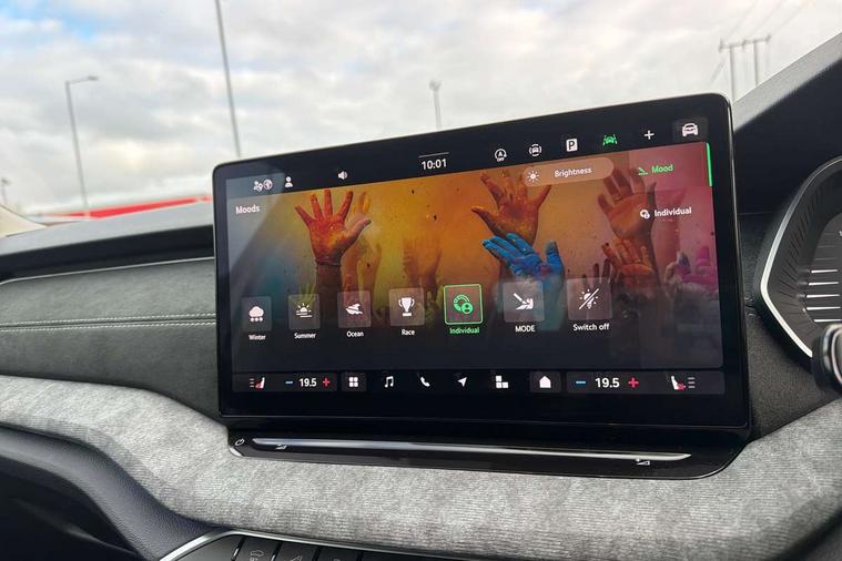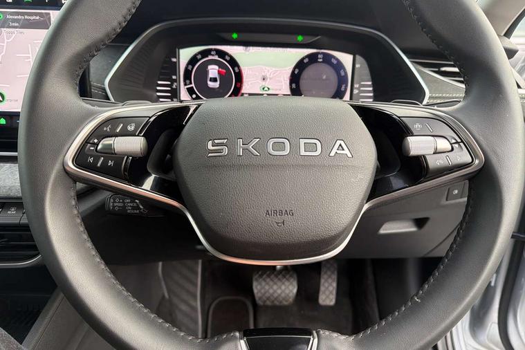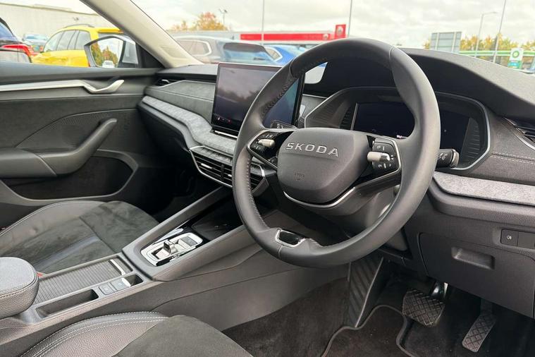 1x USB Typc C port in rear view mirror, 4x USB Type C ports - 2x in front centre console and 2x in rear (45W), Drive mode selection, Driver fatigue sensor, eCall emergency system, Electro-mechanical power steering, Front assist system, Traffic jam assist, Traffic sign recognition, Turn Assist, Virtual Cockpit - 10.25" digital display, Voice control system, Wireless charging (15W) with cooling function, Wireless SmartLink for Apple CarPlay and Android Auto, 13" touchscreen display with navigation, DAB Digital radio, Aero front windscreen wipers with intermittent function, Auto dimming rear view mirror, Body colour bumpers, Body colour door mirrors and handles, Chrome grille surround, Chrome strip in lower front bumper, Chrome window surrounds, Electric front and rear windows, Heated rear windscreen, High level third brake light, Ice scraper in fuel cap, LED daytime running lights, LED Headlights, Logo projection in front doors, Rain and light sensors, Rear fog light on one side, Rear privacy glass, Rear side wing doors, 12 volt socket in boot, 3 rear headrests, 3 seat bench in 2nd row, 4 foldable roof handles, Boot net programme, Front head restraints, Heated front seats, Illuminated glovebox, Interior door handles in dark chrome, Jumbo Box storage, Luggage compartment lighting x2 lights, Mechanical rear seat release from boot, Parcel shelf - folding, Single front passenger seat, Steering wheel in black leather with black stitching, Storage compartments in left and right of boot, Sun visors with mirrors, Sunglasses storage, Ticket holder, Umbrella in door panel, Unsplit rear bench seat, split folding backrest with centre armrest with cupholder, Comfort package - Octavia, 3x3 point rear seat belts, Alarm with interior monitoring, tilt sensor and back up horn, Curtain airbags and front side airbags, Driver and front passenger airbags, Drivers knee airbag, Electronic parking brake, ESC including ABS, EBV, MSR, ASR, EDS, HBA, DSR, Front central airbag, Hill hold assist, ISOFIX on front passenger seat and outer rear seats, Passenger airbag deactivate switch, Three point seat belts in front and rear, Two tone horn, Tyre pressure monitor, Visual and acoustic seat belt reminder, Warning reflectors in front door, Anti-theft wheel bolts, Keyless start/stop, Remote central locking, Chrome air vent surrounds,