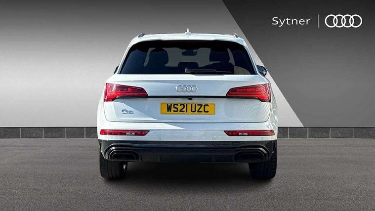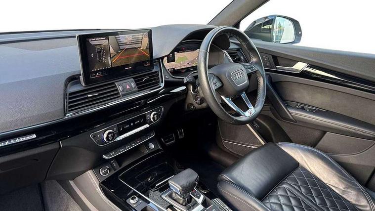 360 degree camera with top view, Advanced key with electric hands free boot opening system, Audi connect safety and service (e-call), Audi connect with Amazon Alexa Integration, Audi drive select, Audi phone box with wireless charging, Audi virtual cockpit plus with 12.3" screen and three different layout designs, Audi wireless smartphone interface, Automatic start-stop system with coasting functionality and efficiency programme, Electro - mechanical power assisted steering, Head up Display, MMI navigation plus with 10.1" touch screen, Mobile telephone preparation - bluetooth interface, Park assist with parking aid plus, Power tailgate, Service interval indicator, Voice control system with Audi hotword activation "Hey Audi", Adaptive air suspension, Diesel particulate filter, Quattro on demand, 2 x USB charging port with aux input socket, Bang + Olufsen sound system, DAB Digital radio, Acoustic windscreen, Audi beam with 'Vorsprung' logo, Auto dimming rear view mirror, Automatic headlights and windscreen wipers, Black roof rails, Body colour bumpers, Body colour underbody protection, Chrome plated exhaust trims, Door sills in Selenite silver, Electric adjustable/heated/folding door mirrors, Electric panoramic glass sunroof, Front air inlet surrounds in titanium black, Front and rear electric windows, Gloss black finish for Audi rings and Q5 logos without engine badging, Headlight washers, High gloss black B pillar trims and triangular rear door trim, Lower bumpers painted in contrast Manhattan grey, Matrix LED headlights with dynamic front and rear indicators, Rear chrome trim strip below lights, Rear privacy glass and rear side windows, Rear spoiler, Rear wiper, Roof bars, Running boards, 3 rear headrests, 3 spoke heated leather multi-function steering wheel, 4 way electric lumbar support for driver and front passenger, 40:20:40 split folding rear seat with rear centre armrest, Black cloth headlining, Comfort front centre armrest, Contrast stitching on seats, steering wheel and gear lever gaiter, Deluxe 3 zone electronic climate control, Electrically adjustable front seats with driver memory, Fine Nappa leather upholstery with diamond pattern contrast stitching + front sport seats with S embossed logo, Front/rear floor mats, Gear lever in black leather, Heated front and outer rear seats, Height adjustable front head restraints, Illuminated door sill trims with aluminium inlays, ISOFIX child seat mounting and top tether, Luggage compartment cover, Massage function for front seats, Rear seat bench plus, Removable luggage compartment floor, Stainless steel pedals, Sunvisors with vanity mirrors, Black styling package - Q5, City Assist pack - Q5, Extended interior upholstery pack - Q5, Extended LED Interior multi coloured Lighting Pack - Q5, Tour pack - Q5, 3 point seatbelts on all seats, 6 airbags - Driver, front passenger, curtain and side airbags, Electrically operated child locks on rear doors, Electromechanical parking brake, Electronic stabilisation control including ABS, ASR and EDL, Front passenger airbag deactivation, Hill descent control, Hill hold assist, Multi collision brake assist, Pop-up bonnet for pedestrian protection, Pre sense city, Seat belt force limiter, Seatbelt monitoring, Tyre pressure warning, Warning triangle and first aid kit, Anti theft alarm, Anti-theft wheel bolts, Keyless Go access/ignition system, Piano black finish inlay, Tool kit, Tyre repair kit,