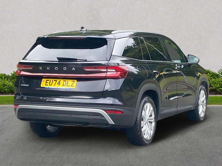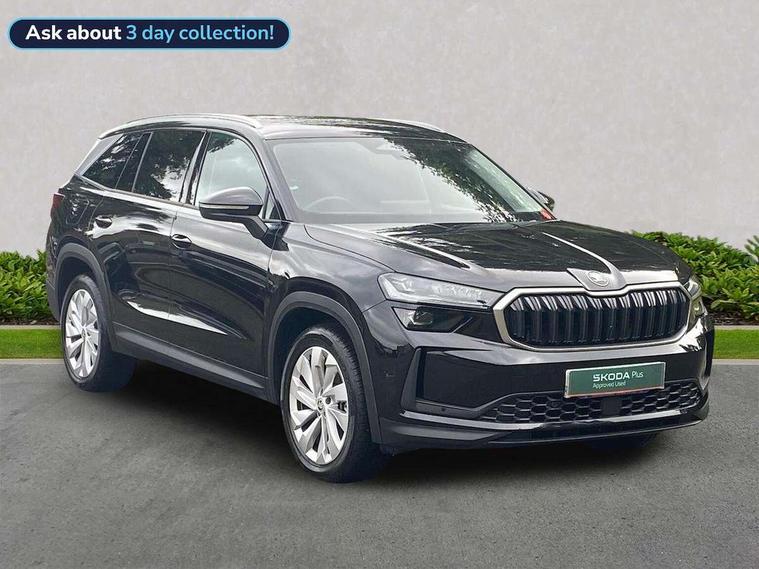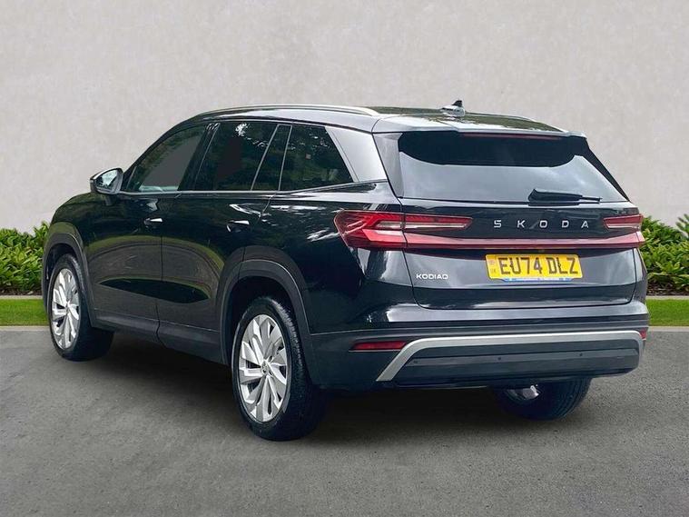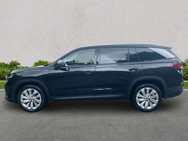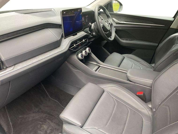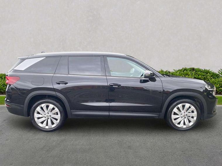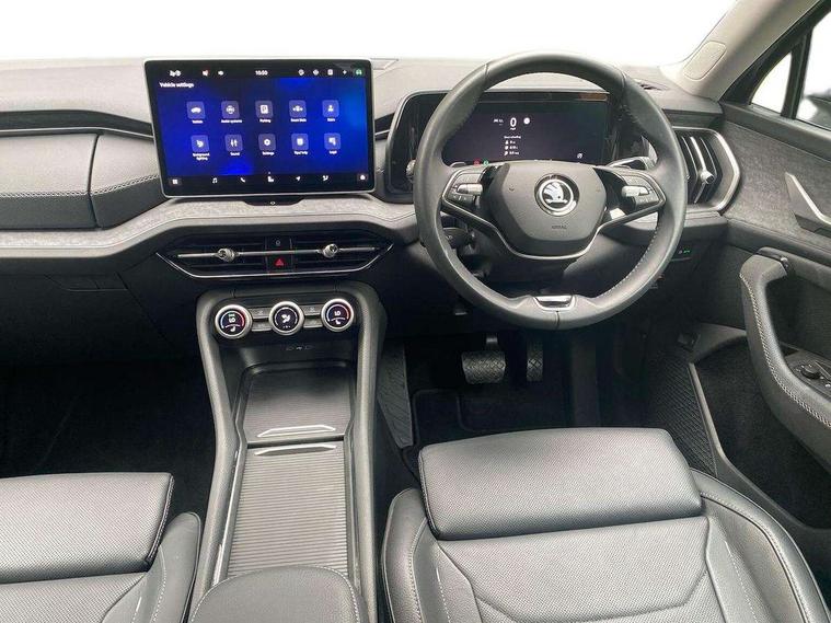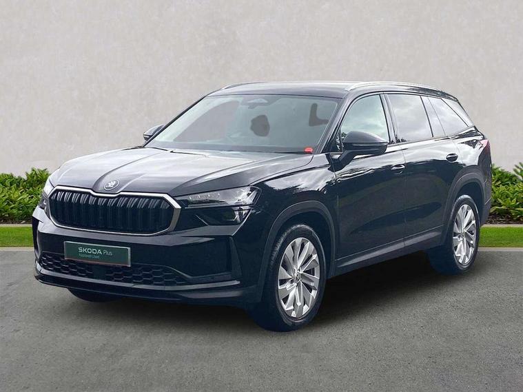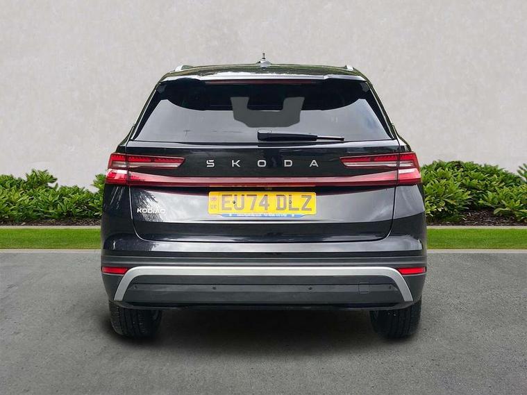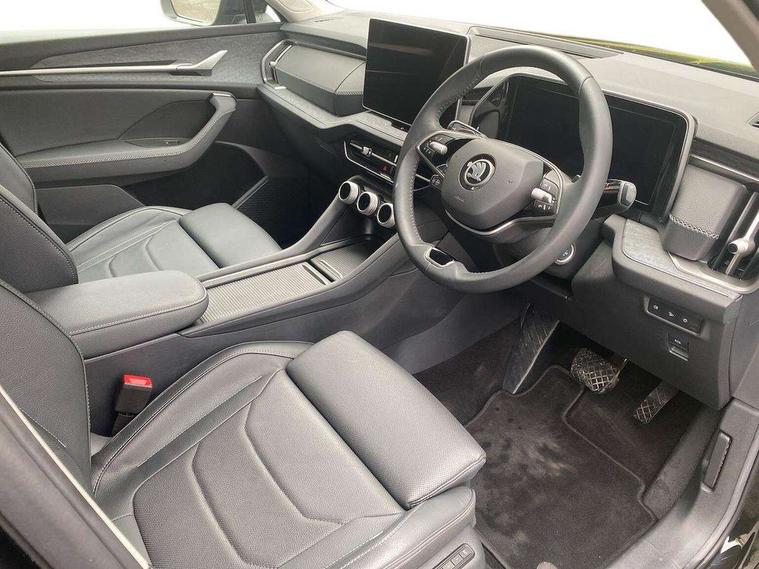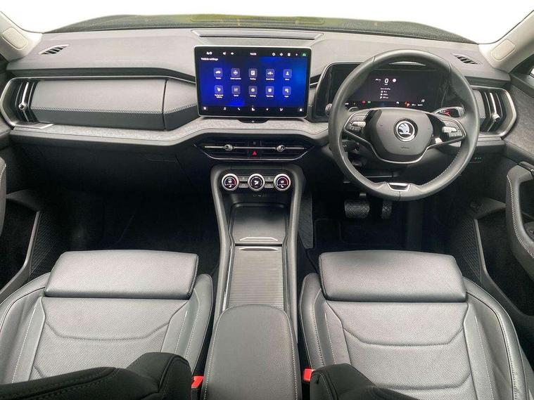 13" satellite navigation touchscreen display, Blind spot detection with door exit warning, Bluetooth system, ChatGPT functionality, Drive mode selector, Driver alert with fatigue sensor, Driver drowsiness alert system, Dry display cleaner, e call+, Front cross traffic assist, Lane assist, PAS, Rear traffic assist, Tailgate unlocking from outside, Traffic sign recognition, USB C Port x 2 in front centre console, Virtual Cockpit - 10.25" digital display, Voice control system, Wireless charging for two smartphones (15W) with cooling function, Wireless SmartLink for Apple CarPlay and Android Auto, Stop/start function, 2x USB-C in the rear, DAB Digital radio, Aero front windscreen wipers with intermittent function, Auto dimming rear view mirror, AWL (all weather lighting) and all weather light with cornering function, Black wheel arch surrounds, Body colour bumpers, Body colour door mirrors and handles, Cornering light and poor weather light, Electric folding /adjustable/separted heated/folding door mirrors, auto dimming with boarding sports and memory function, Electric front and rear windows, Exterior black decorative trims, Heat insulating glass in windshield, Heated rear window, Ice scraper in fuel tank cap, Invisible tailpipe, LED daytime running lights, LED third brake light in rear spoiler, Light assistant with automatic headlight control and coming home feature, Logo projection in door mirrors, Privacy glass, Rear side wing doors, Rear spoiler, Rear window wiper, Red decorative strip between rear LED lights, Safety reflectors on front and rear doors, Unique dark chrome design logo on alloy wheels, Window control switches with black trim, Windscreen wipers with rain sensor, Without engine designation, 1.5l bottle holder points in all door, 12V socket in boot, 1x centre rear reading light, 2 seat bench in 3rd row, 3 configurable smart dials with 32mm coloured display, 3 seat bench in 2nd row, 4 foldable roof handles with rear coat hooks, Ambient interior lighting - Dashboard, front-door stowage compartments, front and rear door panels and footwell lighting, Automatic gear selector on steering wheel, Chrome interior door handles, Driver/front passenger reading lights, Fabric headlining, Fixed bench 40:60:40 split folding backrests, Front and rear floor mats, Front centre armrest with jumbo box storage compartment, cup holder and 12V socket, Front courtesy lights, Height adjustable front headrests, Isofix child seat fittings in outer middle row rear seats and front passenger with top tether, Manually adjustable steering column, Pollen filter, Rear centre armrest with cupholders, Rear seat boot backrest release, Retractable luggage compartment cover, Single front passenger seat, Skoda lettering on steering wheel, Sliding trunk cover, Small Bags on the inner sides of the front backrests, Storage pocket including mobile phone pockets on the backs of the front seats, Sunvisors with illuminated vanity mirrors, Three rear height adjustable headrests, Ticket holder on A Pillar, Tri zone climate control, Umbrella in door panel x1 made from sustainable materials, Upper and lower glovebox with card holder and coin compartment, USB C port by rear view mirror for charging only (15W), Exterior styling pack - Kodiaq, Auto door release and activation of warning lights in the event of an accident, Driver and front passenger airbag with knee airbag and front passenger airbag deactivation, Electric child locks, Electronic parking brake, ESC (incl. ABS+EMD+MSR+ASR+EDL+HBA+DSR+RBS+ESBS+MCB+TSA+XDS), Front assist with braking reaction to vehicles, pedestrians and cyclists, Front disc brakes, Fuel cut off safety device, Height adjustable front 3 point seatbelts + pretensioners, Hill hold control, Junction assist with automatic emergency braking, Rear disc brakes, Safety vest holder in door, Seat belt reminder for all seats, Three point rear seat belts, Two tone horn, Tyre pressure monitor, Anti-theft wheel bolts, Immobiliser, Remote central locking with 2 keys, Breakdown kit,