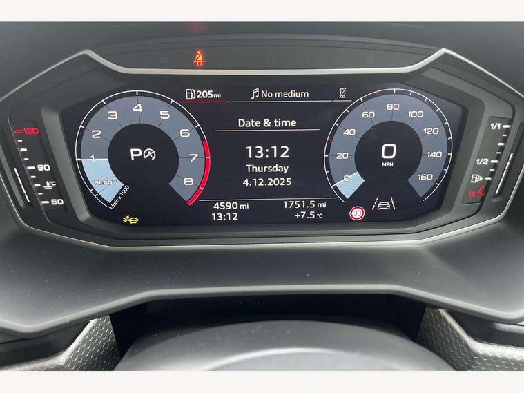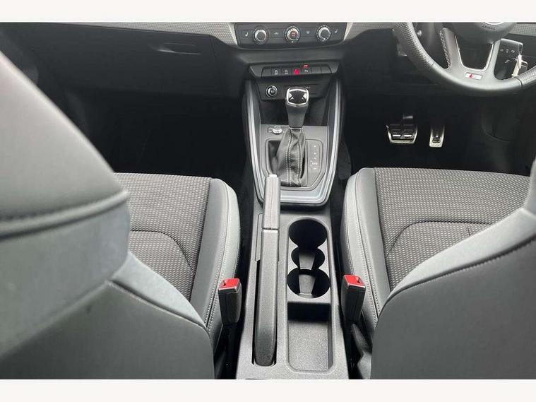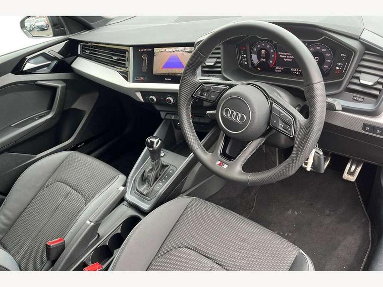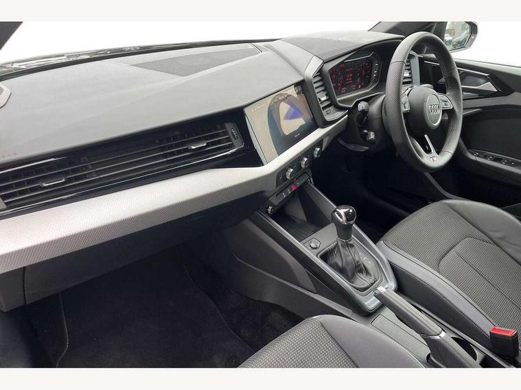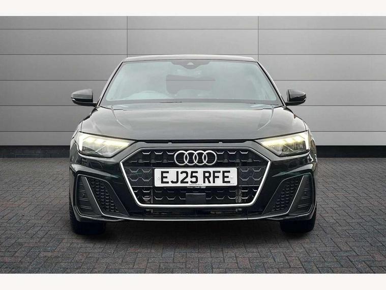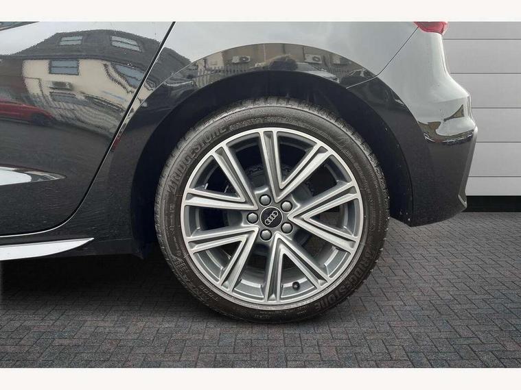 10.25" Digital instrument cluster display classis style instrument dials + speed, odometer, time, outside temperature, telephone menu + fuel level warning, Advanced driver attention and drowsiness monitor, Audi connect emergency call and service, Audi remote connect and control, Audi smartphone interface, Bluetooth interface, Camera based traffic sign recognition, Cruise control, Driver's information system, Electromechanical power steering, Lane departure warning system, Rear parking sensor, Service interval indicator, Speed limiter, Start stop system with recuperation, Voice control system, Washer fluid level indicator, Sports suspension, 2 x USB type C connection points, 6 loudspeakers, DAB Digital radio, MMI radio plus with 10.1" colour MMI display screen and MMI touch, Auto dimming rear view mirror, Body coloured door mirrors, Door sill trims with aluminium inlays and S line logo in front, Electric front and rear windows, Electrically adjustable, heated, folding door mirrors with integrated LED side indicator, Front side air inlets in grained matt black and C frame in anthracite black, Headlight cleaning system, Heat insulating glass windscreen and side windows, Heated rear windscreen, High level LED brake light, LED daytime running lights, LED headlights with range control LED rear lights + dynamic rear indicators, Privacy glass, Radiator grille and rear diffuser in matt anthracite black, Radiator protective grille frame in matt aluminium silver, Rain and light sensors, Rear fog lights, Rear side wing doors, Rear wiper, S line badges on front wings, Side front spoiler lips in grained matt black, 12V socket in centre console with two cup holders, 3 rear seats with headrests, 3 seat bench in 2nd row, 3 spoke leather multi-function plus steering wheel features S badging and grips in perforated leather with contrast stitching, 40:60 Split folding rear seat or fully collapsed, Black cloth headlining, Front and rear velour black floor mats with contrast stitching in fine silver, Front head restraints, Front passenger seat, Height and reach adjustable steering wheel, Interior lighting includes roof module, front and rear reading lights and right luggage compartment lighting, ISOFIX child seat mounting for front passenger and outer rear seats including top tether attachment point of outer rear seats, Leather gear knob with aluminium trim, Leather handbrake grip, Manual air conditioning, Manual height adjustable for driver and front passenger seat, Manually adjustable lumbar support in front seats, Stainless steel pedals, Ambient lighting package - A1, Luggage compartment pack - A1, S line exterior styling pack - A1 Sportback, 3x3 point rear seatbelts, Audi pre-sense front with pedestrain and cyclist recognition, Brake assist function, Driver and front passenger airbag with front side and head airbags, Electronic Stability Control including ABS, EBD, ASR and EDL, Front passenger airbag deactivation switch, Hill hold assist, Manual rear child locks, Seatbelt height adjustment for front seats, Seatbelt monitoring, Tyre pressure loss indicator, Warning triangle and first aid kit, Anti theft alarm, Anti theft wheel bolts, Immobiliser, Remote control key with safelock, Aluminium trim for control switches, air vents and digital instrument cluster, Black dashboard, Silver grey inlays polygon structure in diamond paint finish, Structured grey accent surfaces insert of air vents, interior door handle recesses and centre console in quartz paint finish,