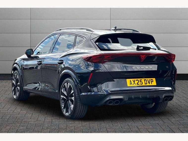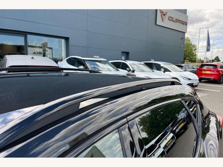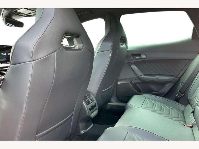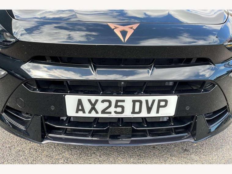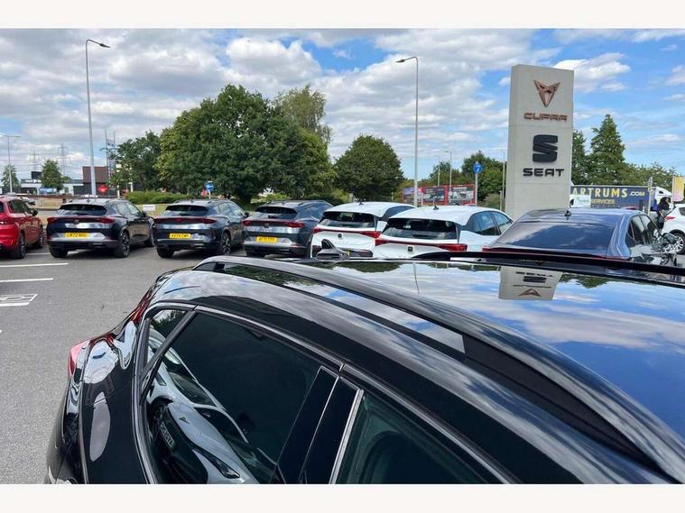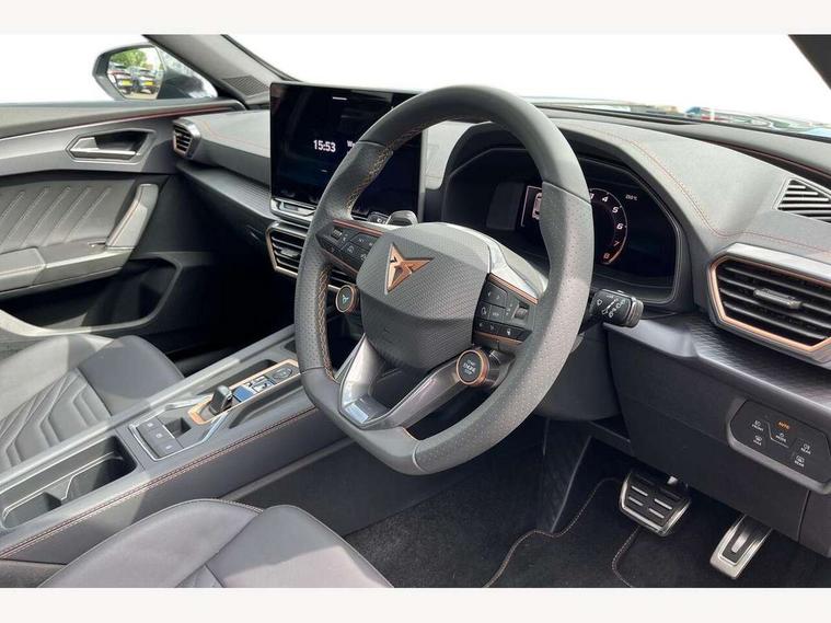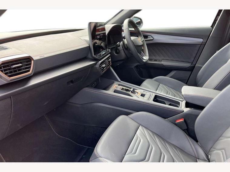 10.25" digital cockpit and configurable dashboard, Adaptive cruise control with follow-to-stop and speed limiter, Advanced driver alert system, Advanced lane assist with semi-automatic vehicle control in a medical emergency and traffic jam assist, Dynamic chassis control with driving profile selection (Comfort, Sport, CUPRA, Individual), Dynamic road sign display, Emergency steering support with turn assist, Forward collision warning with automatic braking, Full link phone integration, Intelligent park assist, RPM, trip computer, outside temp gauge, instrument light brightness, low fuel warning light, lights on reminder, gearshift indicator, Service interval indicator, Side and exit assist, Speed sensitive power steering, Start/stop system with regenerative braking, Top view camera, Virtual pedal and electric tailgate, Voice control system, Wired Android Auto, Wireless apple carplay, Wireless phone charger, Adaptive chassis control with continuous operation, CUPRA sport suspension, Electronic locking differential and dynamic traction support, 2 front and 2 rear USB type C sockets, Media system with navigation, 12.9" touchscreen display, voice control, DAB, steering wheel mounted controls, Auto dimming rear view mirror, Body colour door handles, Body coloured bumpers, Dark grey wing mirror, Daytime running light with automatic headlight control and coming home feature, Door panel ambient lighting, Dynamic headlight range control, Electric front/rear windows, Electrically adjustable heated and folding door mirrors with memory function, Gloss black roof rails and window surrounds, High beam assist, LED 3rd brake light, LED front fog lamps with cornering function, LED Taillights with dynamic indicator, Matrix LED headlights with multifunction camera, Rain sensing wipers, Rear diffuser with twin exhaust pipe on each side, Rear fog lights, Rear side wing doors, Rear wash/wipe, Tinted rear windows, Welcome lights (within exterior mirror housing), 12V socket, 2 front and 2 rear reading lights, 3 seat bench in 2nd row, 60/40 split rear bench seat with armrest and mechanical seat release, Black headlining, Black interior roof lining, Cupra sports pedals, Dust/pollen filter, Electrically adjustable front seats with lumbar support and memory function, Front and rear head restraints, Front centre armrest, Heated front seats, Heated supersports multifunction leather steering wheel with satellite buttons and gear shift paddles, Height/reach adjust steering wheel, Illuminated aluminium doorsteps, Illuminated interior front door sills, Illuminated sunvisor with mirror, Isofix, Leather dashboard, door insert and side trim panel, LED smart wraparound lighting, PVC/Leather upholstery, Satellite steering wheel, Single front passenger seat, Storage pockets on rear of front seats, Three zone climate control with control panel in rear, Variable luggage/load compartment floor, 3 point seatbelts on all rear seats, ABS, Brake control system - ESC and brake booster, Child proof door locks, Driver and front passenger airbags with front passenger airbag de-activation, Electronic parking brake, Front and rear disc brakes, Front side curtain airbags, Hill hold control, Pre-crash front and rear seat belt tensioner, window closure and hazard lights, Public e-call, Seat belt reminder for front and rear seats, Tyre pressure monitoring system, Anti theft alarm system, KESSY Advanced - Keyless start, keyless entry with SAFELOCK, Locking wheel bolts, Copper and aluminium interior detailing, 19" Artic machined sport black and silver alloy wheels, Breakdown and tool kit,