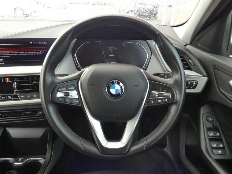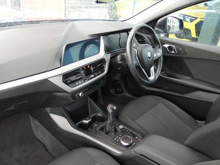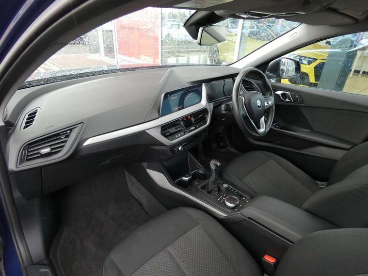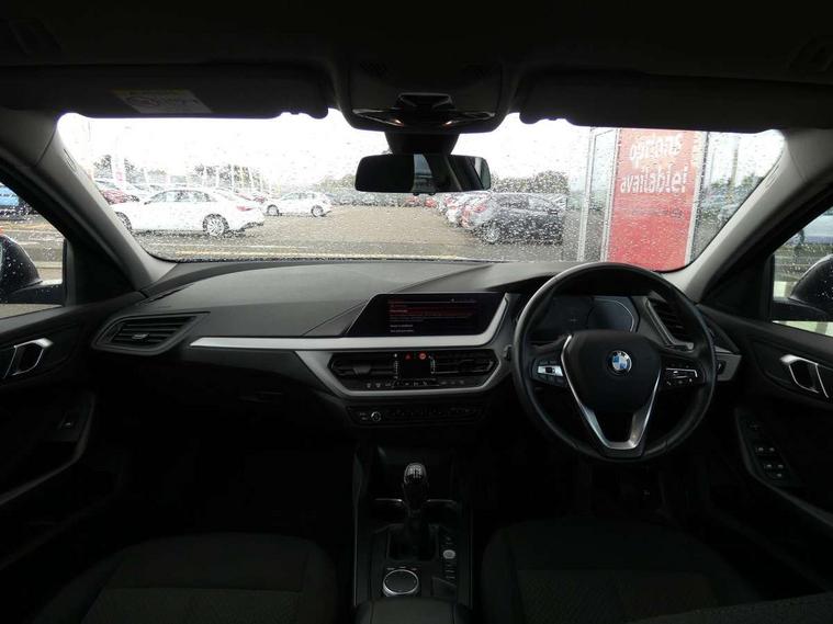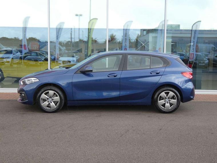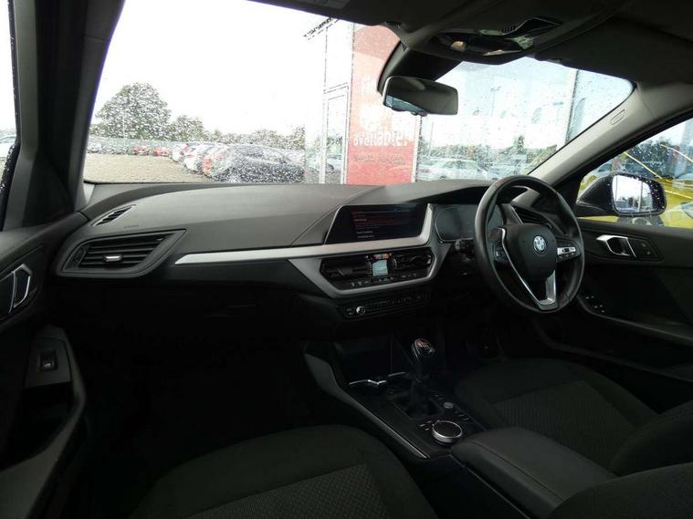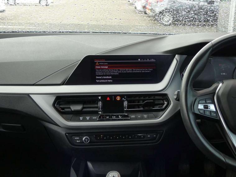 Active guard plus, Attentiveness assist, BMW Online services, BMW Teleservices, Check Control warning system for monitoring of lights and door/luggage compartment open warning, Connected eDrive Services, Cruise control with brake assist, Eco pro mode, Electric power steering with Servotronic steering optimised at all speed ranges, Integrated owners handbook, Lane departure warning system, Oil sensor for level and grade, On board computer, Optimum shift indicator, Personal Profile, Pull away assistant, Speed limiter, 6 speed manual transmission, Aluminium lightweight construction, Anti roll bar front and rear, Balancer shaft, Double VANOS, Drive Performance Control, Electronic differential lock, High precision injection, Petrol Particulate Filter, VALVETRONIC engine management, Bluetooth audio streaming, DAB Digital radio, Auto dimming rear view mirror, Body colour door handles, Body colour front and rear bumpers, Body colour mirror caps, Chrome exhaust tailpipe in single, round (Exhaust tailpipe, stainless steel - single, round), Chrome kidney grille with extra wide black, high gloss black vertical slats, Direction indicator side lights in exterior mirrors, Fading support, Follow me home headlights, Front and rear bumper system with replaceable deformation elements, Front and rear electric windows with open and close fingertip control, anti trap facility and comfort closing, Front door sill finishers in black plastic with BMW designation, Green tinted heat protection glazing, Heated, electrically adjustable exterior mirror aspheric on driver side, convex on passenger side, High level third brake light, LED daytime running lights, LED eyebrow turn indicators, LED front fog lights, Lightweight engineering, Manual headlight beam throw control, Matt black air guide grilles, Matt black roof moulding, B pillar finisher and wheel arch trim, Matt black window frame, Model designation on right side of tailgate, Nearside reverse light in rear light cluster, Preparation for high beam assistant, Rain sensor including auto headlights activation, Rear fog lights, Rear window wiper, Shark fin antenna, Visible VIN plate, Welcome lighting, Windscreen wipers with integrated washing jets, 12V power socket in centre console, 2 cupholders in front centre console, 3 rear seat head restraints, 3 spoke sports leather steering wheel in pearl Chrome, Automatic single zone air conditioning, Child seat ISOFIX attachment for two outer rear seats and front passenger seat with anchorage points, Conditioned based service, Driver side folding compartment in instrument panel, Folding rear clothes hook, Folding rear seats, Four grab handles integrated in roof lining, Front and rear door pockets, Front and rear side armrest integrated into door trim, Front armrest foldable with integrated storage compartment, Glove compartment, Height adjustable front head restraints, Manual adjust steering wheel, Multi-function controls for steering wheel, Rear seat backrest with manual 60:40 split folding with 3 top tether clips integrated on rear of seat panels, Storage compartment in centre console, Sun visors with vanity mirrors and insert tab, Velour floor mats, Connected pack professional - 1 Series, Extended storage pack - 1 Series, Interior lights pack - 1 Series, 2 tone horn, 3 point seatbelts on all seats, front pyrotechnic belt tensioners, stopper and belt force limiters, rear coded belt buckles, Airbags - Front driver and passenger, front and rear head, front side, curtain head protection, Anti lock braking system (ABS) with brake assist, BMW emergency call, Brake drying, Braking readiness, City braking function, Crash sensor activating central locking release, hazard warning lights, fuel cut off, interior lighting + activation of safety battery terminal clamp, Driver and front passenger seat belt security check, Dynamic stability control + (DSC+), Dynamic Traction Control - DTC, Electrically operated hand brake, Front and rear disc brakes, Front passenger manual airbag deactivation, Rear child proof door locks, Seatbelt warning, Side impact protection, Tyre pressure monitoring system, Warning triangle and first aid kit, Automatic drive away locking facility, Central locking switch for all doors, fuel filler cap and luggage compartment, Deadlocking function system to all doors, Locking wheel bolts, Remote central locking with two Integrate key, one button for opening and closing all lock, open and close window, button for open luggage compartment, Start/stop button with comfort go keyless engine start and auto start stop deactivation button, Thatcham Cat.1 alarm and immobiliser, Quartz Silver matt interior trim, Reduced rolling resistance tyres,