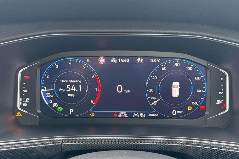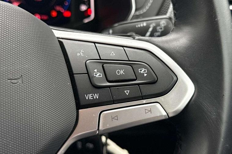 'Lights On' Reminder warning buzzer, 10.25" Digital cockpit pro, Advanced driver attention and drowsiness monitor, Blind spot monitoring, Car information display, Driver profile selection including ECO function, Dynamic road sign display, E-Sim card for online connectivity, eCall emergency call system, Front and rear parking sensors, Front assist, forward collision warning, autonomous emergency braking and speed limiter, Low washer fluid warning light, Multifunction computer with visual gear change recommendation for fuel consumption, Multifunction front facing camera for distance control, Operating permit alteration, Power assisted steering, Predictive adaptive cruise control, Preparation for navigation system with media and internet package, Preparation for We connect and We connect plus, Semi-automated driving assistance, travel assist including lane keeping system Lane Assist and emergency assisst, Speedo, rev counter, electronic odometer, trip, service interval display, exterior temperature and fuel gauge, Warning sound and light for doors and tailgate open, Warning sound and light for front seatbelts unfastened, Wireless Car net app connect with Apple CarPlay, combined functionality of Apple CarPlay/Android Auto and MirrorLink, Wireless charging, Misfuel prevention device, Start-stop system with battery regeneration (recuperation - energy recovery during braking), 2 USB C ports in front, 2 USB charging sockets on the centre console in the rear charging capacity upto 45W, Diversity antenna for FM reception, Music playback - MP3, WMA and AAC files, Radio, Automatic dimming interior rear view mirror, Automatic hazard lights activation under emergency braking, Automatic headlight control with LED separate daytime running light and coming home and leaving home feature, Body colour door handles, Body colour door mirrors, Body coloured bumpers, Dynamic headlight range control with self adjusting whilst driving, Electric folding door mirror, adjustable, heated with front passenger exterior mirror lowering function, Exterior mirrors convex on the left and aspherical on the right, Front and rear electric windows, Front door sill protectors with R-Line logo, Galvanised body, Heat insulating and laminated safety glass windshield, Heat insulating darkened glass in side and rear windows, High Beam Assist, automatic sensing for switching between dipped and main beam, LED rear combination lights, LED third brake light, Lower door sills and door pillars in black, Privacy glass for rear side windows and rear window, Rain sensor, Rear fog light on one side, reversing light on both sides, Rear side wing doors, Rear window aerial, Rear window wiper with intermittent control, Reflectors in all doors, Scuff plates, Tailgate with integrated roof spoiler, 12V Accessory socket in centre console, 2 Front and rear reading lights incorporating LED technology, 3 rear head restraints, 3 seat bench in 2nd row, 60/40 split folding rear seat backrest, Air care climatronic 2 zone air conditioning system, Ambient lighting, Brushed stainless steel pedals, Chrome plated radiator grille inserts, air vent surrounds and light switch surrounds, Cloth upholstery, Comfort front sport seats, Door and side trim panel, Drawer under drivers seat, Driver and front passenger sunvisor with vanity mirror, Dust and pollen filter, Front + rear carpet mats, Front centre armrest with storage compartment, Front footwell illumination, Front seat back storage pockets, Glove compartment door with light, Heated front seats, Heating and fresh air system with 4 stage blower, Height/reach adjust steering wheel, Instrument lighting white adjustable panel illumination, Interior light with switch off delay and dimmer, Isofix anchors for child seats on outer rear seats and front passenger seats, Leather gearshift handle, Leather wrapped multifunction steering wheel, Luggage compartment floor, Luggage compartment lighting, Manual front seats with height adjustment, Padded dashboard, Removable luggage compartment cover, Single front passenger seat, Storage compartment in drivers and front passengers door, Titanium black roof lining, Unsplit sliding rear seat bench, 3 point outer rear seat belts with ECE label, 3 Point seatbelt for centre rear seat, Anti-lock Braking System (ABS) with Hydraulic Brake Assist (HBA), Automatic post collision braking system, Disc brakes in front, Disc brakes in rear, Driver and front passenger safety-optimised head restraints, Drivers and Front Passengers airbags with front passengers airbag deactivation switch, ESC with EDL and ASR (traction control), Extended and predictive pedestrian/cyclist protection, Front and rear passenger curtain airbag system including front side airbags, Height adjustable front 3 point seatbelts + pretensioners, Hill start assist, Pre crash preventive occupant protection, Proactive passenger protection system in combination with front assist, Rear door child safety locks, Rigid safety cell with front and rear crumple zones, Single tone horn, Tyre pressure loss indicator, Volkswagen roadside assistance, Alarm with interior protection, Anti theft alarm system, Electronic engine immobiliser, Remote tailgate unlocking using key fob, Titanium Black Decorative inserts - R Line, Low rolling resistance tyres,