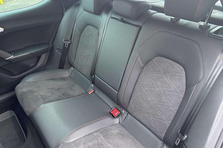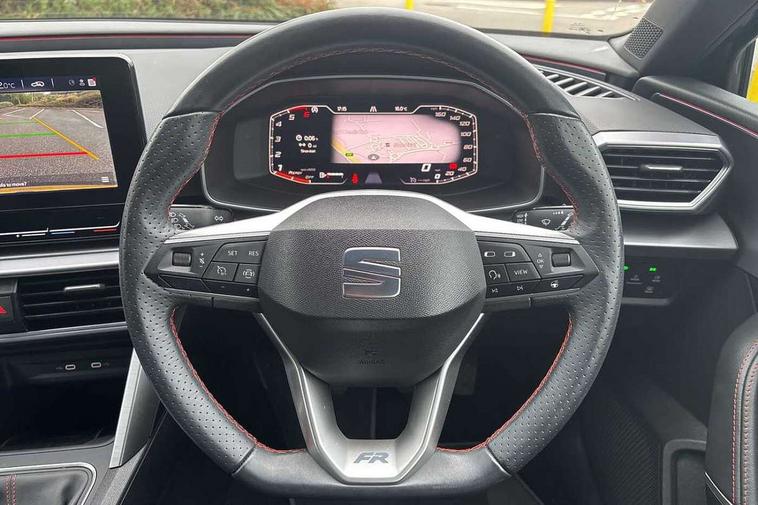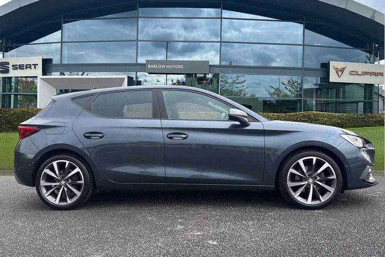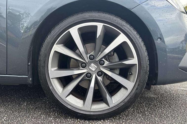 Digital cockpit, E-call, Four x USB Type C ports, Front assist with forward collision warning braking reaction to vehicles, pedestrians and cyclists, Full link smartphone integration with Mirror Link, wireless Apple CarPlay and wired Google Android Auto, Lane assist, Lockable tailgate, Park assist (inc front/rear parking sensors), Power assisted speed sensitive electro-mechanical steering, Rear view camera, RPM, trip computer, outside temp gauge, instrument light brightness, low fuel warning light, lights on reminder, gearshift indicator, SEAT drive profile with 4 modes (Eco/Normal/Sport/Individual), throttle response, Service interval indicator, Start/stop system with regenerative braking, Sports suspension, XDS electronic differential lock and dynamic traction support, 7 speakers, Auxiliary input socket, Auto dimming rear view mirror, Body colour door handles, Body coloured bumpers, Dark tinted rear windows, Door mirror LED indicator lights, Dynamic headlight range control, Electric adjustable/heated/folding door mirrors with memory, Electric front/rear windows, FR sports bumper, Illuminated front door sill, LED front fog lamps, LED Headlights with dynamic turn signals, LED tail lights and rear fog lights with rear coast to coast lighting, Rear side wing doors, Rear wash/wipe, Separate daytime running light with automatic headlight control and coming home feature, Third brake light, Welcome light silhouette from exterior mirrors, Windshield wiper intermittent control with light/rain sensor, 12v power point in centre console, 3 seat bench in 2nd row, 60/40 split rear bench seat with armrest, Ambient lighting with glovebox, footwell and single monocolour, Black headlining, Dust/pollen filter, Electric driver lumbar support + passenger manual lumbar support, Folding boot cover, Front and rear height adjustable headrests, Front and rear reading lights X 4, Front centre armrest, Front seatback storage pockets, Heated front seats, Heated leather steering wheel with leather gearstick, Height/reach adjust steering wheel, Interior wraparound lighting (FR), ISOFIX points in outer rear seats with top tether anchorage points, Luggage tie-down hooks, Microsuede cloth upholstery, Power driver seat with memory and manual height adjustable passenger seat, Single front passenger seat, Sunvisors with covered illuminated mirror, Three zone climate control, Media system plus with navigation - Leon, 3 point seatbelts on all rear seats, ABS, Brake control system - ESC and brake booster, Child proof door locks, Driver and front passenger airbags with front passenger airbag de-activation, front side and curtain airbags, Electronic parking brake, Extended safety system - seat belt tensioner, window closure and hazard lights, Hill hold control, Rear disc brakes, Seat belt reminder for front and rear seats, Tiredness recognition system, driver alert system, Tyre pressure monitoring system, Anti theft alarm system with interior monitoring in cab, backup horn and towing protection, KESSY Go (Keyless start), Locking wheel bolts, Wireless phone charging, Chrome interior detailing, 18" Performance machined alloy wheels with 92Y tyres, Tool kit,