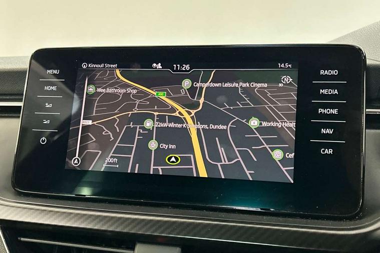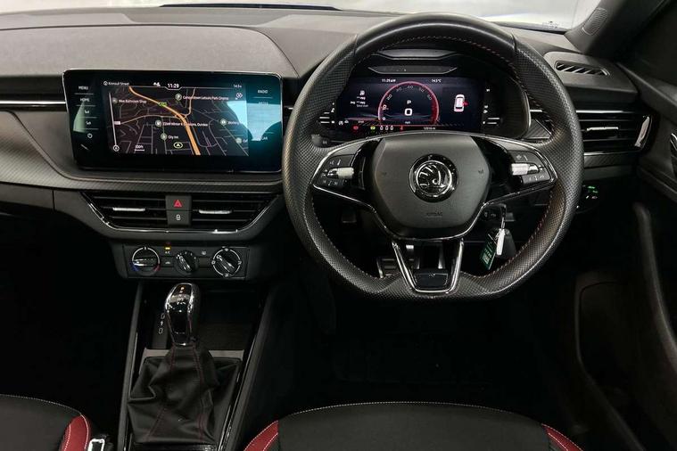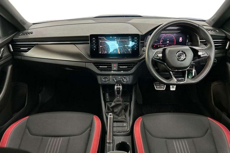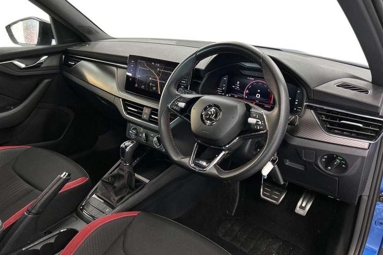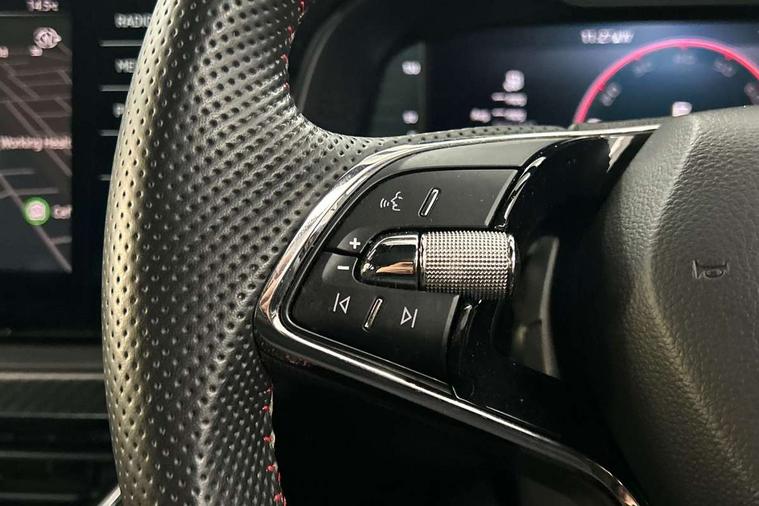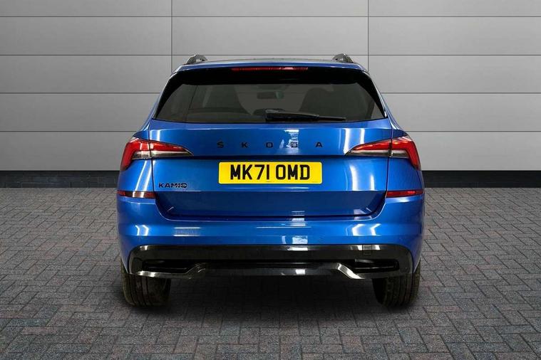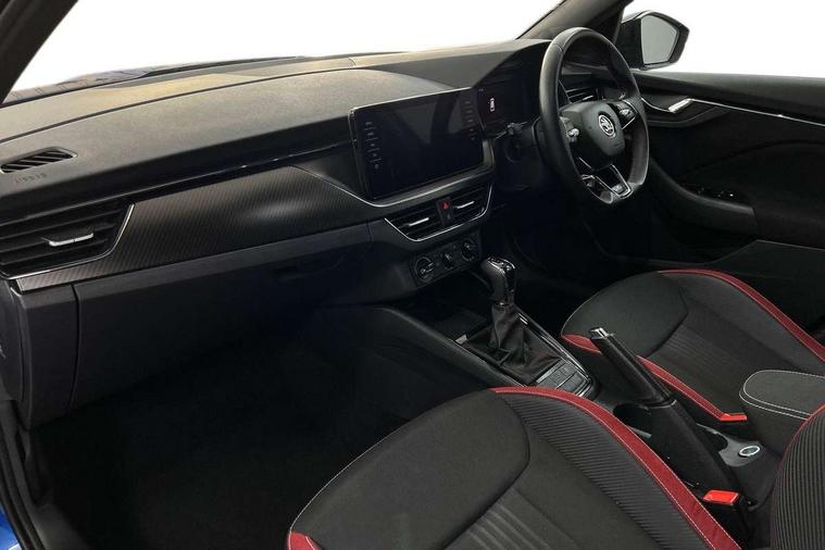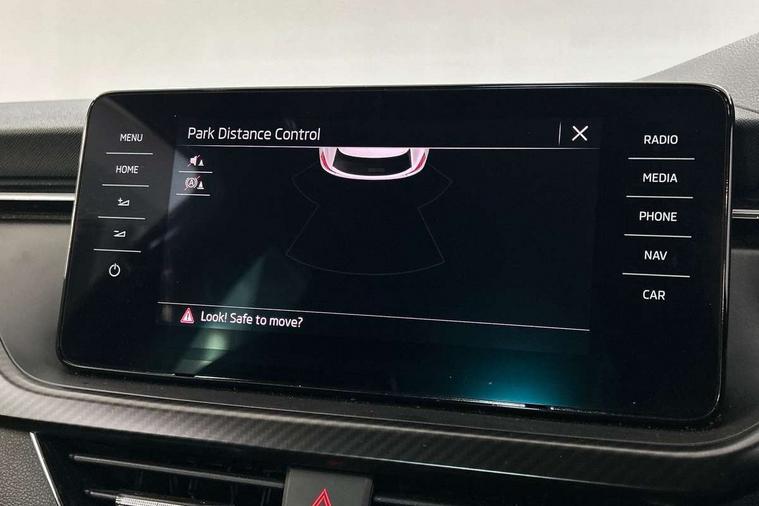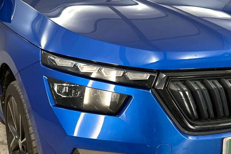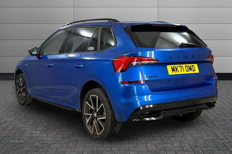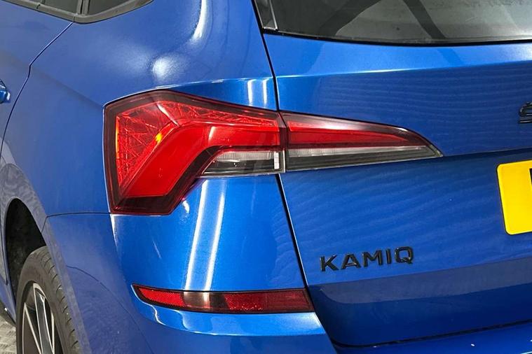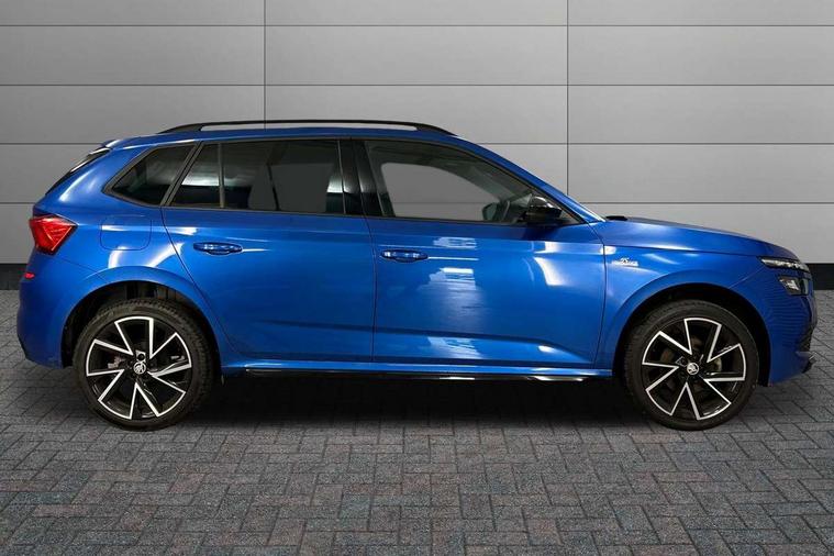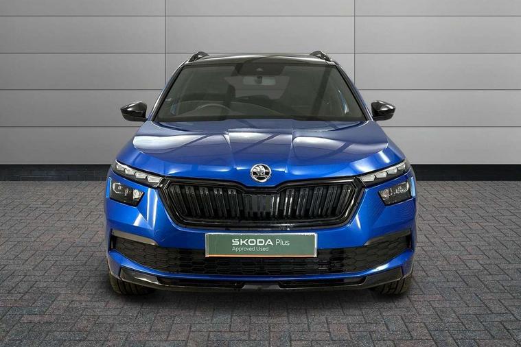 Amundsen satellite navigation with 9.2" touchscreen display, voice control, virtual cockpit and web radio, Bluetooth system, E-call, Front assist system, Gesture control, PAS, Service indicator, Speed limiter, Virtual cockpit with 10.25" display, Wireless SmartLink for apple car play, android auto and mirrorlink, 2 USB - C ports with 1x adaptor cable, Auxiliary input socket, DAB Digital radio, Auto dimming rear view mirror, Black door mirrors, Black radiator grille, Black rear diffuser, Body colour bumpers, Body colour door handles, Body colour roof spoiler, Boot lettering in black, Chrome grille surround, Electrically adjustable and heated door mirrors, Front and rear electric windows, Front sport bumper, Full LED headlights with adaptive front light system, dynamic indicators, cornering function and fog lights, Headlight range control, Heated rear window, High functionality rear led lights with dynamic indicators, KAMIQ Door sills, Light sensors, Monte carlo plaque, Panoramic sunroof with black roof rails, Privacy glass, Rear fog lights, Rear wiper, 12V Accessory socket in centre console, Aluminium pedals, Black ceiling for black/beige interior, Chrome inner door handles, Cloth upholstery, Front head restraints, Glove compartment with illumination, Height adjustable passenger seat, Ice scraper, Isofix child seat fittings on outer rear seats, ISOFIX on front passenger seat, Leather gear lever, Manual lumbar support for front seats, Rake/reach adjustable steering wheel, Reading lights, Sports seats, Sun visors with illumination on front passenger, Textile floor mats, Third rear headrest, Top tether for front passenger seat, Umbrella in driver's door, 3x3 point rear seatbelts, Airbags - driver and front passenger, ESP, Front passenger airbag deactivation switch, Front side airbags with curtain airbags, Hill hold control, Manual parking brake, One tone horn, Rear disc brakes, Seatbelt reminder for driver an co-driver, Traction control, Tyre pressure monitor, Anti-theft alarm system with interior monitoring, backup horn, towing protection and remote central locking with SAFE system, Anti-theft wheel bolts, Electronic engine immobilizer, Chrome air vent surrounds, 18" Vega alloy wheels in black,