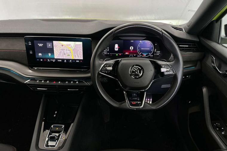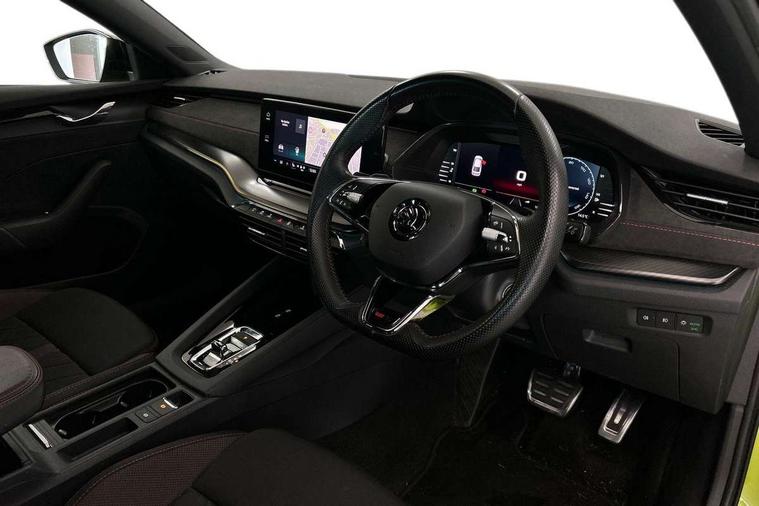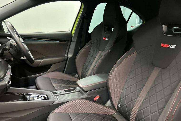 1x USB Type C port in rear view mirror (charging only), 2x USB Type C ports in rear of front centre armrest (charging only), Bluetooth system, Columbus satellite navigation with 10" touchscreen display, Driver fatigue sensor, eCall emergency system, Front and rear parking sensors with manoeuvre assist, Front assist system, Progressive dynamic steering, Speed limiter, Turn Assist, Virtual Cockpit - 10.25" digital display, Virtual pedal with electrically operated boot door (Rear LED lights (high functionality), dynamic indicators, Voice control system, Wireless SmartLink for Apple Car Play, Electronically controlled limited slip differential, Front and rear stabilizers, 2x USB Type C ports (for charging and data transfer), 8 Speakers, DAB Digital radio, Aero front windscreen wipers with intermittent function, Auto dimming rear view mirror, Body colour door handles, Chrome exhaust tailpipes, Door sills with vRS logo, Electric front and rear windows, Exterior gloss black sports styling including front grille, side strip, window surrounds, door mirror and badging, Full LED Matrix headlights with AFS, rear LED lights (high functionality) and dynamic indicators and cornering front fog lights, Headlight washers, Heated rear windscreen, High level third brake light, Ice scraper in fuel cap, LED daytime running lights, Rain and light sensors, Rear fog light on one side, Rear privacy glass, Rear side wing doors, vRS bumpers and lip spoiler, 3 rear headrests, 3 seat bench in 2nd row, 4 foldable roof handles, Aluminium pedals, Black headlining, Black microsuede padded dash panel with red contrast stitching, Chrome inner door handles, Front centre armrest, Front head restraints, Heated front seats, Illuminated glovebox, Leather trimmed gearshift lever, Luggage compartment lighting x1 light, Mechanical rear seat release, Parcel shelf - folding, Single front passenger seat, Sunglasses storage, Textile floor mat set, Three spoke leather sports multifunction steering wheel with paddles, Ticket holder, Umbrella in door panel, Unsplit rear bench seat and split folding backrest, LED interior light pack - Octavia, 3 point front/outer rear seatbelts+pre-tensioners, Alarm with interior monitoring, tilt sensor and back up horn, Automatic door unlocking in case of crash, Automatic fuel cut off in case of crash, Automatic warning lights in case of emergency braking, Curtain airbags and front side airbags, Driver and front passenger airbags, Drivers knee airbag, Electronic parking brake, ESC including ABS, EBV, MSR, ASR, EDS, HBA, DSR, Front and rear disc brakes, Front central airbag, Hill hold control, Hill start assist, ISOFIX on front passenger seat and outer rear seats, Manual rear child locks, Passenger airbag deactivate switch, Pro active services, Red brake calipers, Two tone horn, Tyre pressure monitor, Visual and acoustic seat belt reminder, Warning reflectors in front door, Door locks with immobiliser, Keyless entry and start/stop including rear doors, Remote central locking, Carbon optic decorative inserts, Gloss black air vent surrounds, 19" Altair anthracite alloy wheels,