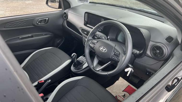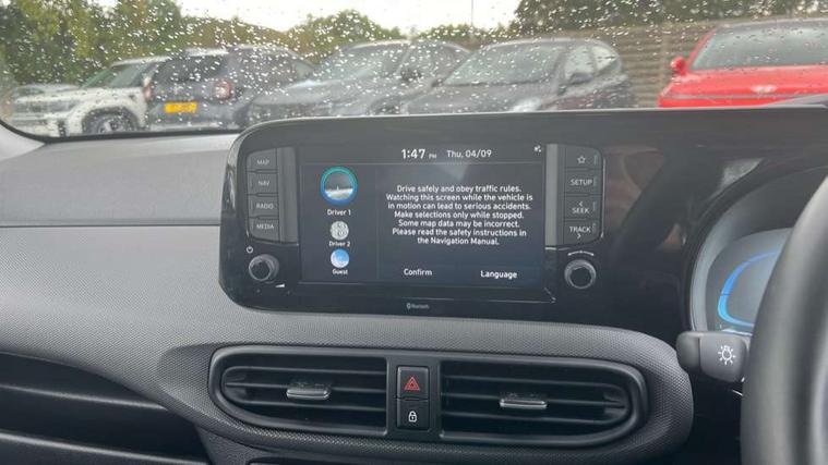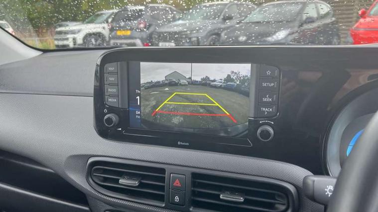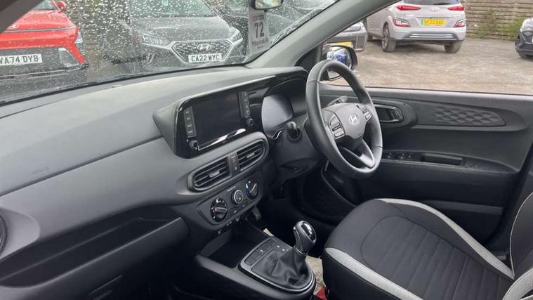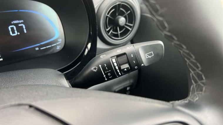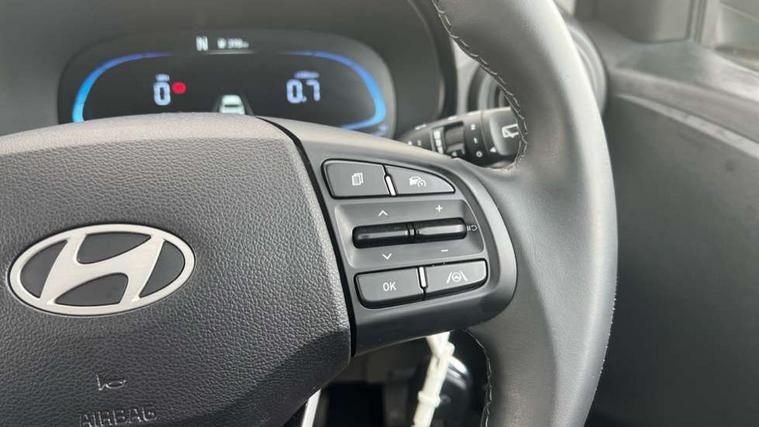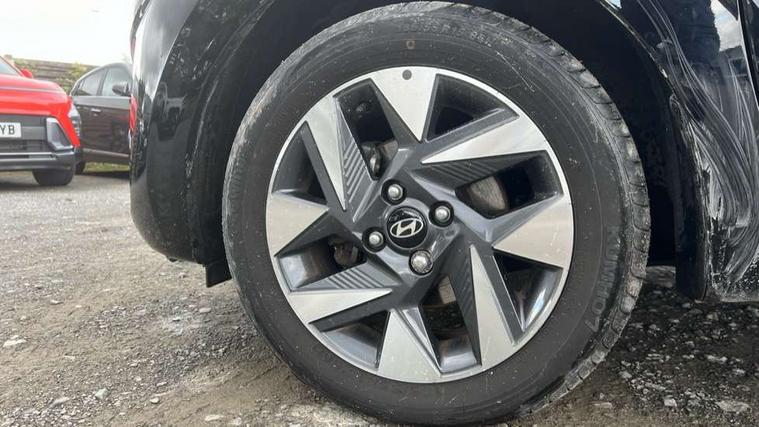 Apple car play/Android Auto, Bluelink mobile remote connectivity, Bluetooth connectivity with voice recognition, Cruise control, Driver attention alert system, eCall emergency call system, Forward Collision-Avoidance Assist (FCA) - Pedestrian/Cyclist, Front USB-C charging and USB-A data, Full-width 4.2" LCD instrument cluster, Intelligent speed limit assist, Lane departure warning system with lane keep assist - LKAS, Lane follow assist, PAS, Rear parking sensors, Rear view camera with guidelines, Roadside assistance, Start/Stop function, Tailgate, Trip computer, 2 front/2 rear speakers, Rear USB-C device charger, Steering wheel audio, phone and cruise controls, 1 speed non intermittent rear windscreen wiper, Black finish on B pillars, Body colour door handles, Body coloured bumpers, Body coloured door mirrors, Electric front windows, Electric rear windows, Electrically adjustable and heated door mirrors, Flat metal emblem, Front grille in matte black, Front intermittent wipers, Halogen daytime running lights, Halogen headlights, Headlights inner with Black Blade design, Heated rear window, High beam assist, Indicator light on door mirrors, Rear roof spoiler with integrated LED brake light, Rear side wing doors, 12v power outlet - front, 3 seat bench in 2nd row, 60/40 split folding flat to floor rear seats, Air conditioning, Auto light control, Bottle holders in front/rear doors + front centre console, Cabin and luggage compartment interior lighting, Cloth upholstery, Driver + passenger vanity mirrors, Driver's seat height adjustment, Driver/passenger sunvisors with ticket holders, Floor mats, Front door pockets, Front Head Restraints - Vertical and Horizontal Adjustment, Glove compartment, Height adjustable steering column, Isofix child seat preparation, Leather multifunction steering wheel, Rear door pockets, Single front passenger seat, Vertical adjustment rear head restraints, 3x3 point rear seatbelts, Airbags - front, front side and curtain airbags, Anti-lock brake system (ABS), Autonomous emergency braking (AEB) with forward collision warning system, Brake assist function, Childproof rear door locks, Electronic stability control, Front and rear seatbelt reminder, Front seatbelt pretensioners, Hill start assist control (HAC), Passenger airbag deactivate switch, Traction control, Tyre pressure monitoring system, Immobiliser, Perimeter alarm, Rear occupant alert, Remote central locking, Second remote key, Speed sensitive auto door locking, 15" Alloy wheels, Tyre repair kit,