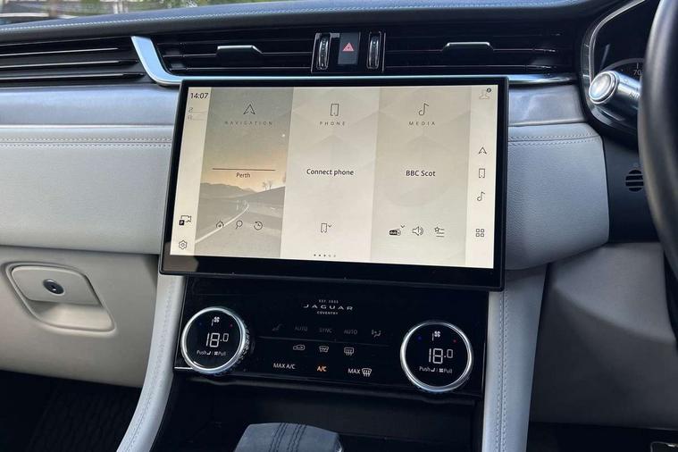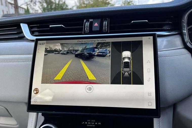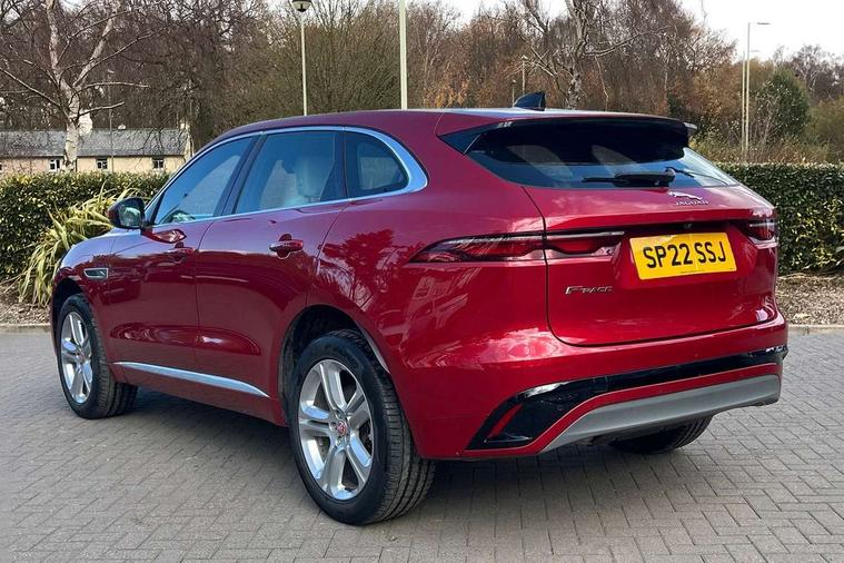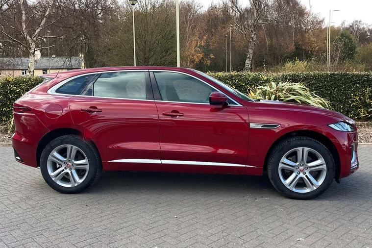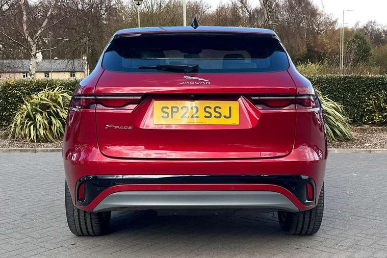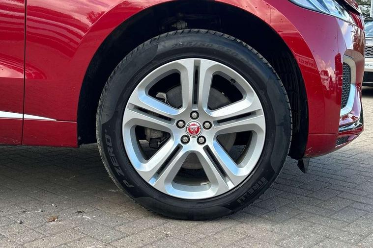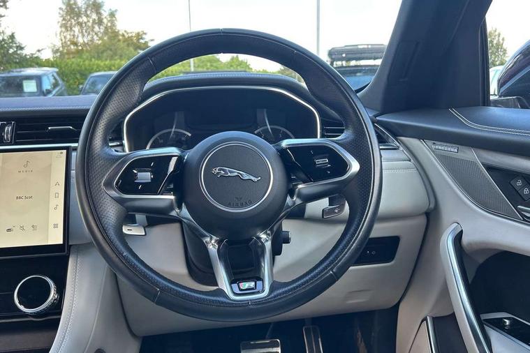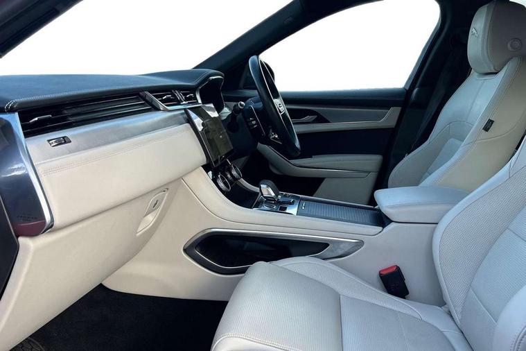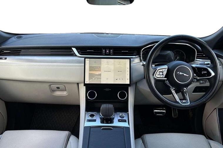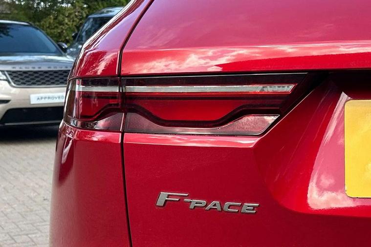 11.4" touchscreen, Android Auto, Apple car play, Blind spot assist, Bluetooth connectivity, Clear exit monitor, Driver alert system, Driver condition monitor, eCall emergency call system, Eco driving style assistant, Electric power assisted steering, InControl remote, Jaguar Toggle shift selector, Lane departure warning system, Lane keep assist, Outside temperature gauge, Personalisation profile management, Pivi pro connected navigation system with app interface and media storage, Pro services and wifi hotspot, Push button starter, Rear traffic monitor, Service interval indicator, Speed proportional steering, Start up sequence with movement in dials and lighting, Traffic sign recognition with adaptive speed limiter, Trip computer, Voice control system, 8 speed automatic transmission, All terrain progress control, All Wheel Drive (AWD), Open differential with torque vectoring by braking, AM/FM radio, Bluetooth streaming, DAB Radio (Digital Audio Broadcasting), Dynamic volume control, InControl apps, InControl protect, iPod integration, 3 flash lane change indicators, Animated directional indicators, Approach Illumination, Auto dimming rear view mirror, Automatic headlights, Body colour door mirrors, Electric heated/power fold memory door mirrors with approach lights and auto dimming driver side, Electric windows with one touch open/close and anti trap, F-Pace and R Dynamic badge, Green tinted glass, Heated front windscreen + heated washer jets, Heated rear window with timer, Jaguar script and leaper, LED High level third brake light, LED tail lights, Non acoustic front windscreen, R Dynamic badge on side door, Rain sensor windscreen wipers, Rear fog lights, Rear metal tread plates, Rear side wing doors, Rear wiper, Trailer stability assist, Variable front intermittent wipers, 12V power point front, 3 rear headrests, 3 seat bench in 2nd row, Air distribution speed, Bright metal foot pedals, Centre armrest console, Centre console with side storage, Deletion loadspace storage rails, Door sill tread plates, Fold flat front seats, Front centre armrest with storage compartment, Front door storage space, Glovebox finisher with jaguar script, Heated steering wheel, Hooks in loadspace, Illuminated glovebox, Interior front door handles with separate locking switches, ISOFIX on outer rear seats, Jaguar sense, Luggage tie downs in loadspace, Mist sensing, Multifunction steering wheel, Overhead lighting console, Overhead stowage for sunglasses, Passive front head restraints, Premium cabin lighting, Premium carpet mats, R-Dynamic branded leather steering wheel, Rear air vents, Rear armrest with twin cupholders, Rear centre headrest, Rear door storage space, Reversible boot floor, Satin chrome gearshift paddles, Shopping bag hook, Single front passenger seat, Sunvisors with illuminated vanity mirrors, Twin front cupholders with cover, Online Pack with data plan - F-Pace, 355mm front brakes and 325mm rear brakes, 3x3 point rear seatbelts, ABS, All surface progress control (ASPC), Brake pad warning light, DSC - Dynamic Stability Control, Electric parking brake (EPB), Emergency brake assist, Front airbags with passenger seat occupant detector, Front and rear seatbelt reminder, Front side airbags, Full length side window curtain airbag, Hill launch assist, Power operated child locks, Torque vectoring brake, Traction control, Tyre pressure monitoring system, Immobiliser, Keyless entry, Keyless Start, Locking wheel nuts, Perimeter alarm, Remote central locking, Valet mode,