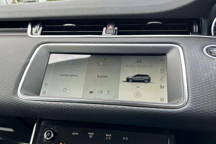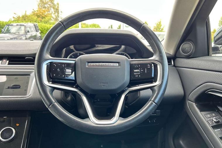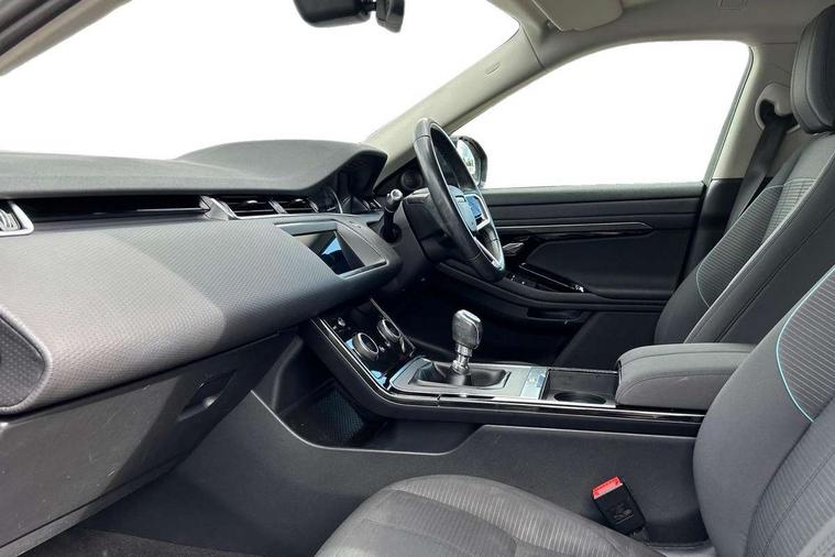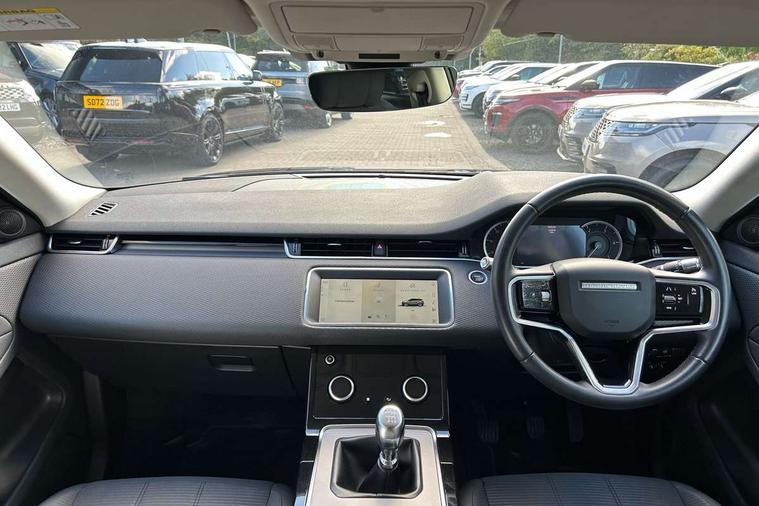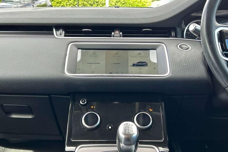 10" touch screen, Android Auto, Apple car play, Bluetooth connectivity, Brake pad wear indicator warning light, Cruise control + speed limiter, Driver condition monitor, Electronic power assisted steering (EPAS), Front and rear parking aid, InControl remote, Land Rover InControl apps, Lane keep assist, Push button starter, Voice control system, Passive suspension, Digital Audio Broadcast radio-DAB, Steering wheel mounted controls, Electric windows with one touch open/close and anti trap, Evoque badge, Flush deployable exterior door handles, Heated rear window with timer, Heated washer jets, Heated windscreen, Rain sensing windscreen wipers, Rear fog lights, Tailgate spoiler, 40:20:40 split folding rear seats with centre headrest and armrest, Ambient interior lighting, Isofix system on outer rear seats, Overhead lighting console, Overhead stowage for sunglasses, Passive front head restraints, Rear air vents, Rear centre headrest, Sunvisors with illuminated vanity mirrors, Twin sliding front centre armrest, 3 rear 3 point seatbelts, Anti-lock braking system (ABS), Customer configurable autolock, DSC - Dynamic Stability Control, Electronic brake force distribution, Electronic parking brake, Electronic traction control, Emergency braking, Front and rear seatbelt reminder, Hill launch assist, Power operated child locks, Roll stability control, Six airbags - Driver and passenger airbags/driver knee airbag/front side airbag and curtain airbags, Tyre pressure monitoring system, Alarm, Immobiliser, Intrusion sensor, Locking wheel nuts,