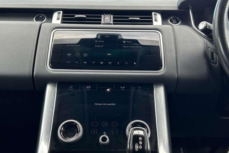 All Terrain Info Centre, Android Auto, Apple car play, Bluetooth connectivity, Electric power assisted steering (EPAS), Incontrol apps in vehicle touchscreen, Interactive Driver display instrument cluster, Mist sensor, Navigation pro system with 10" touch screen, app interface and media storage, Powered gesture tailgate/boot lid, Pro services and wifi hotspot, Push button start, Remote premium - Upgraded Incontrol remote app including remote climate control (engine dependent), remote lock + Unlock and remote beep + flash, TFT Virtual Instrument Panel, Touch pro duo system, Trip computer, Gradient release control (GRC), Bluetooth audio streaming, DAB Radio (Digital Audio Broadcasting), Incontrol protect - SOS emergency call with automatic collision detection, optimised assistance call and Incontrol remote app essential, USB/aux input socket, Acoustic front and toughened rear side glass, Acoustic laminated front windows, Adaptive brake lights, Auto dimming interior rear view mirror, Automatic headlights, Body coloured bumpers, Electric windows with one touch open/close and anti trap, Electrical towing preparation, Engine cover, Follow me home lighting, Front and rear recovery eyes, Front fog lights, Headlight power wash, Heated rear window, Heated windscreen includes heated washer jets, LED rear lamps, Rain sensing windscreen wipers, Rear fog lights, Rear wash/wipe, Remote window closing, Side repeater indicators in mirror, Standard bonnet, Trailer stability assist, 2 way active front head restraints, 2 way rear head restraints, Auto air recirculation, Centre console with armrest, Climate control memory, Customer configurable single point entry, Driver's footrest, Front and rear cupholders, Front door storage space, Front map lights, Front seat back map pockets, Front stowage pocket, Front/rear passenger grab handles, Isofix child seat preparation, Leather steering wheel, Loadspace light, Loadspace mounting provisions, Lockable glovebox, Multifunction steering wheel, Pollen filter, Power socket, Reach/rake electric adjustable steering column + entry/exit tilt away, Rear centre armrest, Rear ISOFIX, Roller blind loadspace cover, Three 12V accessory power outlets, Smartphone pack - Range Rover Sport, 3 point seatbelts on all seats, Anti-lock braking system (ABS), Brake pre-fill technology, Cornering brake control (CBC), Curtain airbags, Customer configurable autolock, DSC - Dynamic Stability Control, Dual stage driver/passenger airbags, EBD - Electronic brakeforce distribution, Electric parking brake, Electronic traction control, Emergency braking includes city, urban AEB and pedestrian, Front seatbelt pretensioners, Gradient acceleration control, Grey anodised brake calipers, Height adjustable front seatbelts, Hill descent control, Hill launch assist, Low traction launch, Passenger seat occupant detector with front airbags, Power operated child locks, Roll stability control, Seatbelt warning, TPMS (Tyre pressure monitoring system), Immobiliser, Intrusion sensor, Keyless entry, Locking wheel nuts, Perimetric and volumetric anti theft alarm, Remote locking,