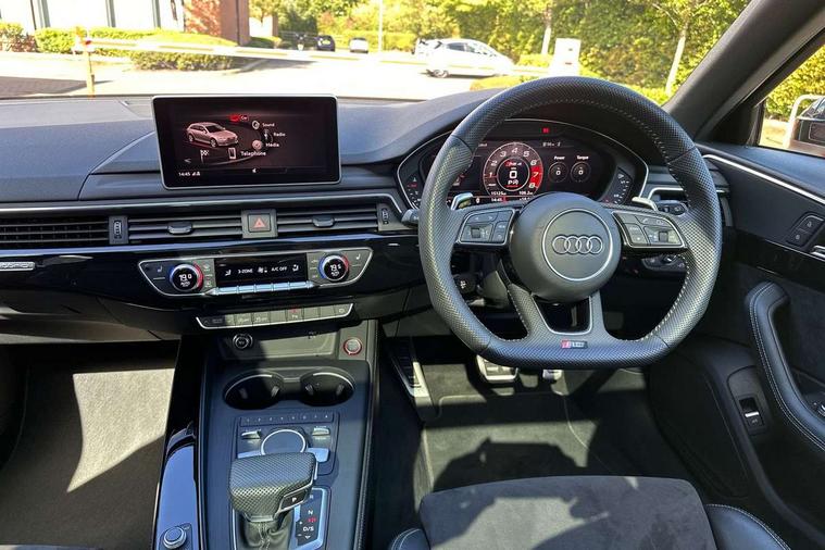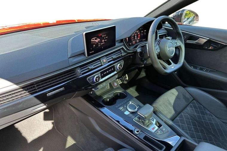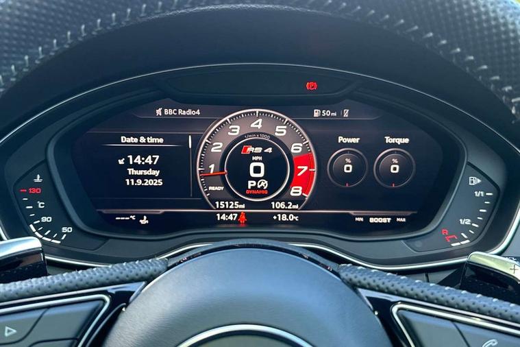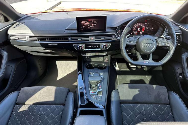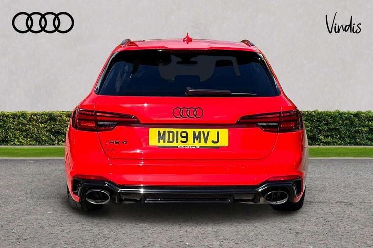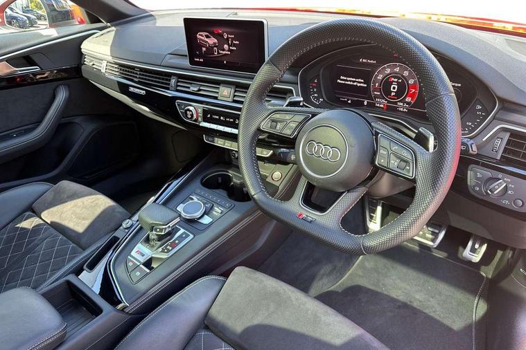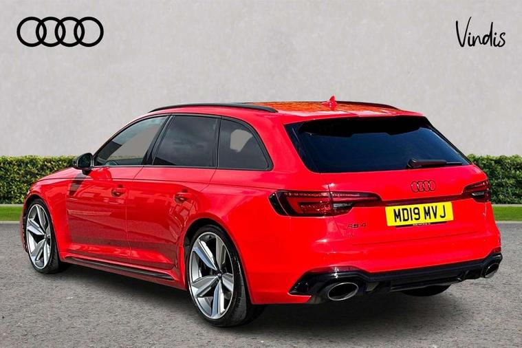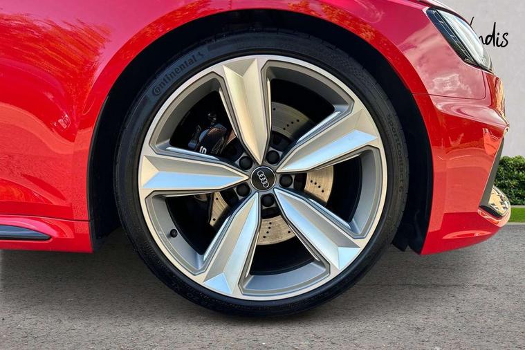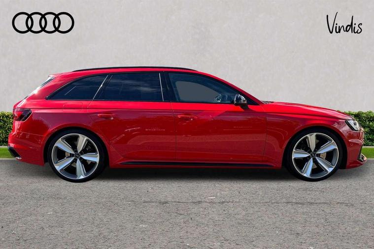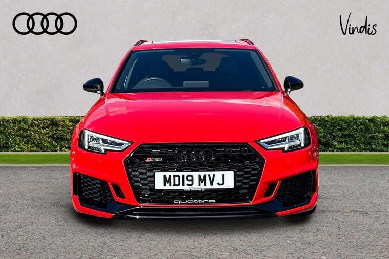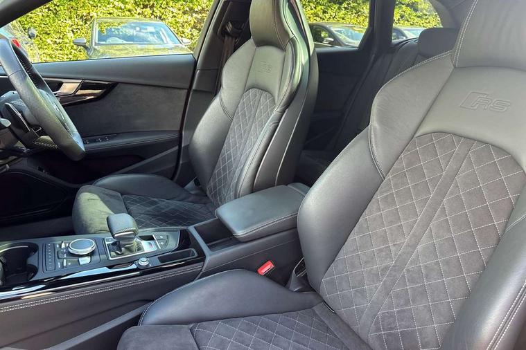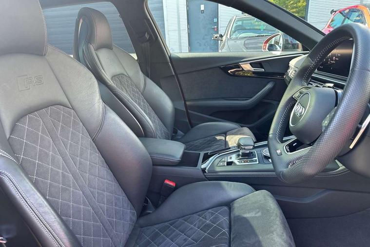 7" Colour driver information system, Audi drive select, Audi parking system plus with front and rear sensors, Audi phone box with wireless charging, Audi Pre sense collision avoidance, Audi side assist, Audi smartphone interface, Audi virtual cockpit with RS specific display, Automatic start-stop system with coasting functionality and efficiency programme, Bluetooth interface, Cruise control + speed limiter, Electromechanical power steering, MMI Navigation plus with MMI touch includes 10.1" high resolution colour MMI display, 3D map, Power opening/closing tailgate, Service interval indicator, Voice control system, 58 Litre fuel tank, Quattro sports differential, RS sports suspension, 2 USB interfaces and Aux-In jack, Audi sound system, DAB digital radio module, Acoustic windscreen, Auto dimming rear view mirror, Automatic headlights + automatic windscreen wipers, Blue tinted glass, Body colour door handles, Electric adjustable/heated/folding door mirrors, Electric front windows, Electric rear windows, Flared front and rear wheel arches, Front bumper with enlarged air inlets, Gloss black audi rings and name plates, Headlight range control, High beam assistant, High gloss black air ducts with quattro logo in matt titanium look, High gloss black door mirror housing, High gloss black front lip spoiler, High gloss black radiator grille, High gloss black roof rails, High gloss black side window capping strips, High gloss black triangular aperture at rear door, Honeycomb design grille with quattro logo, Lateral air inlets next to front headlights, LED daytime running lights, LED headlights with RS air intake, LED indicators in door mirrors, Panoramic glass sunroof, Privacy glass with rear acoustic glazing, Rain and light sensors, Rear wiper, Roof spoiler, RS 4 badges on grille, the front wing panels and rear, RS sport exhaust system, RS4 dual branch chrome tailpipes with left and right oval pipes, Side sill extensions in body colour with high gloss black inserts, Towbar preparation, 3 spoke flat bottomed high multi-function leather sport steering wheel with RS badging, 3 zone climate control, 40/20/40 split folding rear seats with rear centre armrest, Black cloth headlining, Electric load area cover, Electrically adjustable front seats, Front centre armrest, Front headrests, Front/rear floor mats, Height and reach adjustable steering wheel with full size airbag, Illuminated door sill trims with RS4 logo, Isofix child seat preparation for front passenger/outer rear seats inc passenger airbag deactivation, Leather door armrests and knee pad, Leather/Alcantara upholstery, Luggage compartment carpet, Rear centre armrest, Rear headrests, Retractable load area cover, RS Specific perforated leather gear lever knob with contrast stitching, Stainless steel pedals, Sunvisors with vanity mirrors, Tool kit, Top tether anchor plate for isofix child seat, Black styling pack - RS4, LED Interior light pack - RS4, Non Smokers pack, 3 point seatbelts on all rear seats, Adaptive driver and front passenger airbags, Black painted brake calipers with RS logo at the front, Electromechanical parking brake, Electronic stabilisation control including ABS, ASR and EDL, Enhanced braking system, Front head airbags, Front seatbelt pretensioners + load limiters, Front side airbags, Hill hold assist, Multi-Collision braking, Pop-up bonnet for pedestrian protection, Pre sense city, Seatbelt warning, Traction control, Tyre pressure warning, Variable restraint system, Warning triangle and first aid kit, Anti theft alarm, Anti-theft wheel bolts, Keyless Go, Remote central locking, Remote control key with RS emblem, Thatcham category 1 alarm + immobiliser, Piano black finish inlay, Tyre repair kit,