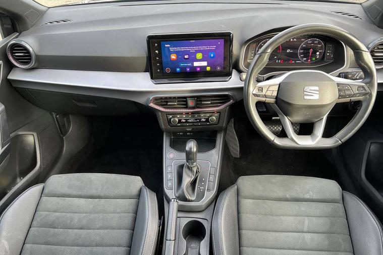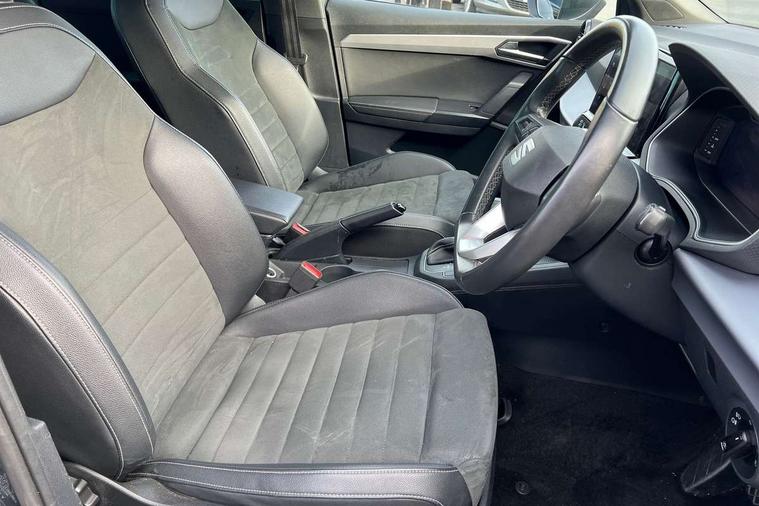 'Lights On' Reminder warning buzzer, 10" Digital cockpit, 9.2" touchscreen navigation system with type C USB socket, Voice control and DAB/AM/FM radio, Auto start and stop system, Bluetooth audio streaming with handsfree system, Digital clock, E-call, Front and rear parking sensors with rear view camera, Full link smartphone integration with mirror link, wireless apple carplay, Google android auto + USB Type C cable for apple and android devices, Lane assist, Low fuel warning light, Outside temperature gauge, Power Steering, Seat connect plus with safety, service, remote and online, SEAT drive profiles and ECO function, SEAT logo boot release, Speed limiter, Traffic sign recognition, Trip computer, Comfort suspension, 6 speakers, Auxiliary input socket, Radio/MP3 player, SD card slot, Steering wheel mounted controls, Anti theft roof antenna, Atom grey door mirrors, Auto dimming rear view mirror, Automatic rain sensing wipers, Body colour bumpers, Body colour door handles, Chrome window surround and upper grille surround, Dark tinted rear windows, Electric adjustable/heated/folding door mirrors, Electric front windows, Electric headlight adjustment, Electric rear windows, Front/rear fog lights, FULL LED automatic headlights with dynamic headlight range control, coming and leaving home, LED daytime running lights, LED tail lights, Rear side wing doors, Rear wiper, Third brake light, 3 seat bench in 2nd row, 60/40 split folding rear seat, Ambient interior lighting, Chrome detailing and black headlining, Comfort seats, Dual zone climate control with combination filter, Front centre armrest, Front courtesy lights, Front cupholders x 2, Front reading lights, Gear shift indicator, Glovebox, Height adjustable front and rear headrests (five), Height adjustable front seats, Height/reach adjust steering wheel, Illuminated air vent surrounds, Illuminated boot, Instrument lighting with brightness control, Isofix, Leather multifunction flat bottomed sports steering wheel, Microsuede cloth upholstery, Passenger sunvisor, Single front passenger seat, Storage pockets on back of front seats, Sunvisors with mirror and driver side card holder, Safety and driving pack (M) - Ibiza, Safety and driving pack (S) - Ibiza, 3 point seatbelts on all 3 rear seats, ABS, Active front headrests, Child locks on rear doors, Electronic stability control, Energy recovery system, Front driver and passenger side airbags with curtain airbag and front passenger airbag deactivation, Hill hold control, Multi-Collision braking, Seat belt reminder for front and rear seats, Tiredness recognition system, Tyre pressure monitoring system, KESSY Keyless entry and go, Locking wheel bolts, Perimeter alarm and interior monitoring inc.backup horn, tow away protection and electronic engine immobiliser, Remote central locking + deadlocks, 18" Dynamic machined alloy wheels in Nuclear grey,