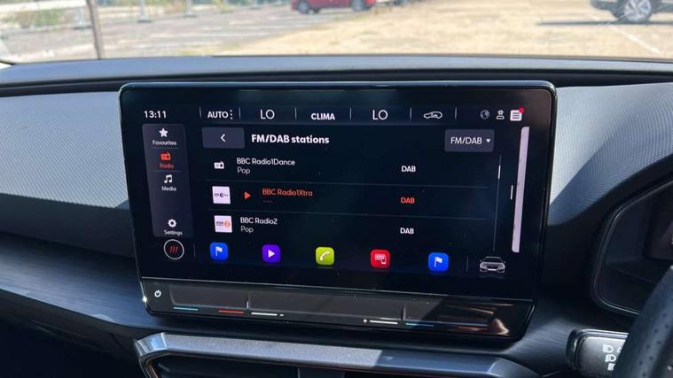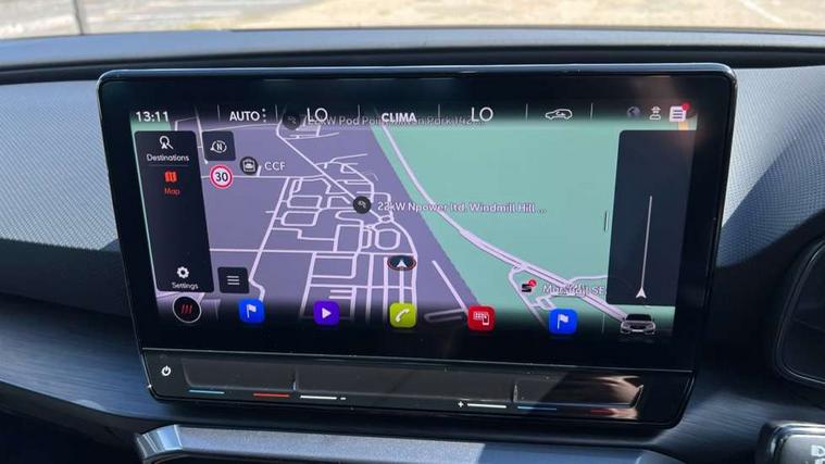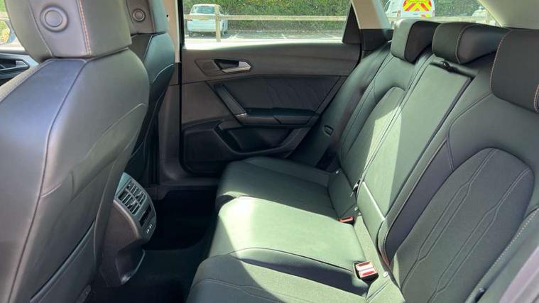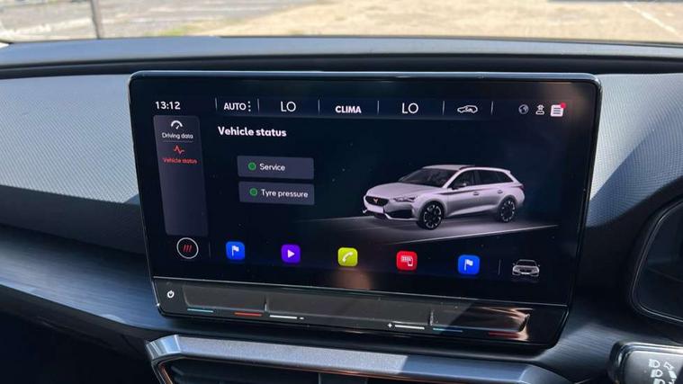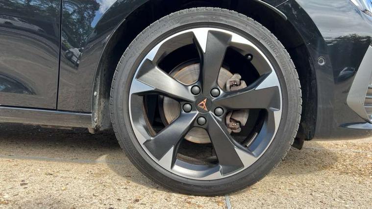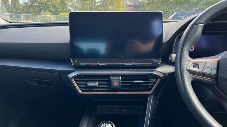 CUPRA drive profile selection with (Comfort/Sport/Individual), throttle response and gearshift mode, Digital cockpit, E-call, Electro mechanical speed sensitive power steering, Four x USB Type C ports (2 in front and 2 in rear), Front assist with forward collision warning braking reaction to vehicles, pedestrians and cyclists, Full link smartphone integration with Mirror Link, wireless Apple CarPlay and wired Google Android Auto, Lane assist, Lockable tailgate, Park assist (inc front/rear parking sensors), Rear view camera, RPM, trip computer, outside temp gauge, instrument light brightness, low fuel warning light, lights on reminder, gearshift indicator, Service interval indicator, Start/stop system with regenerative braking, Wireless phone charger, Sports suspension, Auxiliary input socket, Auto dimming rear view mirror, Body colour door handles, Body coloured bumpers, Cupra sports bumpers, Dark tinted rear windows, Electric front/rear windows, Electrically adjustable, heated and folding door mirrors, Gloss black roof rails, LED front fog lamps with cornering function, LED headlights with dynamic turn signals, tail lights, rear fog lights with rear coast to coast lighting, Rain sensing wipers, Rear diffuser with twin exhaust pipe on each side, Rear side wing doors, Rear wash/wipe, Separate daytime running light with automatic headlight control and coming home feature, Third brake light, 12v power supply in centre console, 12v socket in loadspace, 3 seat bench in 2nd row, 5 headrests, 60/40 split rear bench seat with armrest, Ambient lighting with glovebox, footwell and single monocolour, Cupra Leather flat bottomed, perforated steering wheel, Driver/passenger manual seat height adjustment, Front and rear reading lights X 4, Front centre armrest, Front seats manual lumbar adjustment, Grey headlining, Height/reach adjust steering wheel, Illuminated interior front door sills, ISOFIX points in outer rear seats with top tether anchorage points, Jack and tool kit, PVC/Cloth upholstery with copper stitching, Single front passenger seat, Sliding boot cover, Sports seats, Sunvisors with illuminated mirror, Three zone climate control, Media system plus with navigation pack - Leon Cupra, Safety and driving pack (M) - Cupra leon, 3 point seatbelts on all rear seats, ABS, Brake control system - ESC and brake booster, Child proof door locks, Cupra black brake calipers, Driver and front passenger airbags with front passenger airbag de-activation, front side and curtain airbags, Electronic parking brake, Extended safety system - seat belt tensioner, window closure and hazard lights, Hill hold control, Rear disc brakes, Seat belt reminder for front and rear seats, Tiredness recognition system, Tyre pressure monitoring system, Anti theft alarm system with interior monitoring in cab, backup horn and towing protection, KESSY Advanced - Keyless start, keyless entry, Locking wheel bolts, Chrome and copper interior detailing, 18" Machined sport black and silver alloy wheels with 92Y tyres,