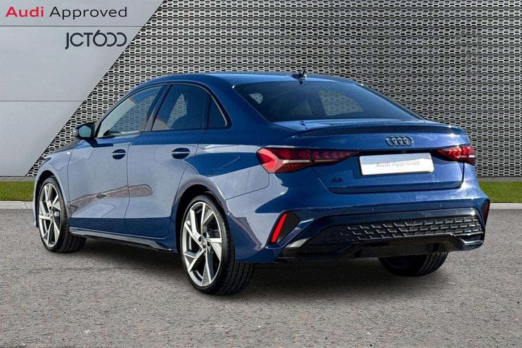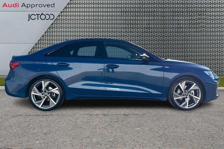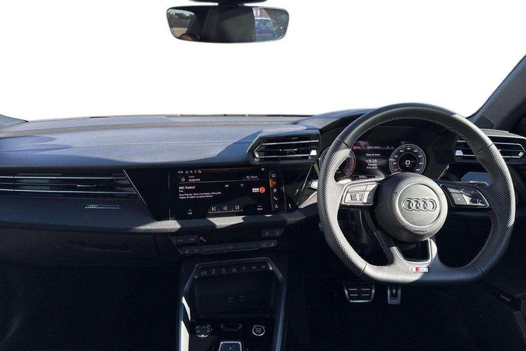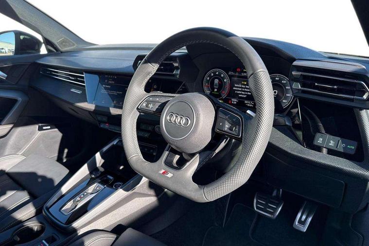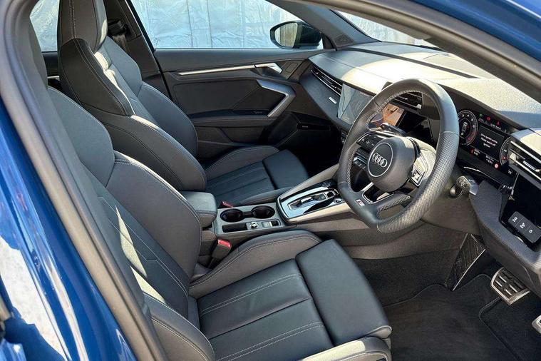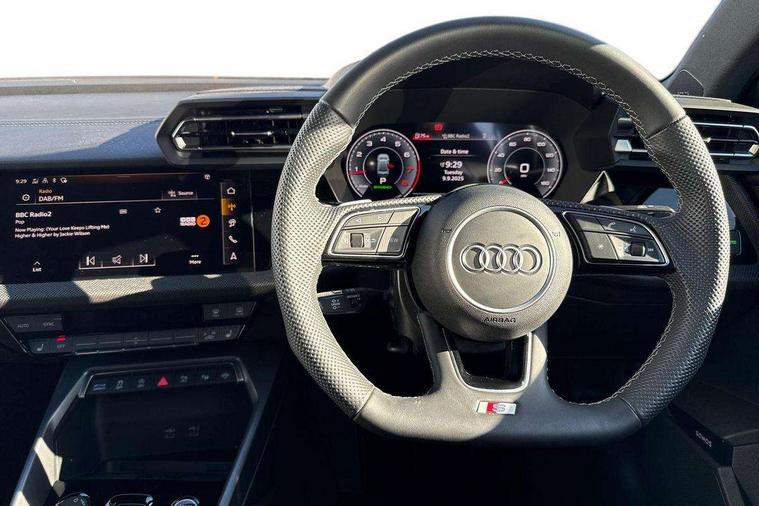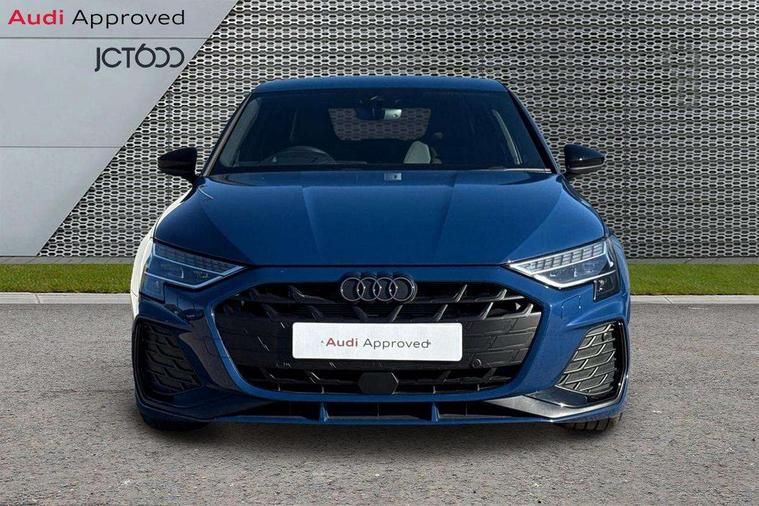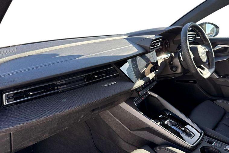 Adjustable speed limiter, Audi drive select, Audi smartphone interface with app store includes wireless Apple carplay, Android auto and Amazon alexa integration, Audi virtual cockpit plus - 12.3" full HD resolution dynamic digital instrument cluster, Automatic start/stop system with recuperation, Bluetooth interface, Camera based traffic sign recognition, Collision avoidance assistant, Cruise control, Distraction and Fatigue warning, e-Call (emergency call), Electromechanical power speed sensitive steering, Lane departure warning system, MMI Navigation Plus with high resolution 10.1" colour touch screen display, Park Assist with parking system Plus, Service indicator, Trip computer, Voice control system with natural language interaction, Sports suspension, Audi Phonebox light with wireless charging, Audi sound system - 10 loudspeakers including centre loudspeaker and subwoofer, DAB Digital radio, USB ports with charging function in the rear, Acoustic glass windscreen, Anthracite grey Audi rings (front and rear), Audi beam uses LEDs to project the Audi logo onto the ground as you exit your A3, Auto dimming frameless rear view mirror, Black accents front and rear bumpers, Black accents in the area of the Audi single frame grille, Black accents window trims strips, Electrically adjustable/heated/folding/auto dimming door mirrors with integrated LED indications + kerb view function for passenger side, Exterior model badging, Front electric windows, Heat insulating glass windscreen, Illuminated door sills with aluminium inserts at the front with S logo, LED 3rd brake light, LED daytime running lights, LED headlights with LED rear lights and dynamic rear indicators, Light and rain sensors, Privacy glass - dark tinted rear window, rear door and side windows, Rear boot, Rear electric windows, Rear side wing doors, 12V socket and storage compartment in front centre console, 3 seat bench in 2nd row, 3 spoke flat bottomed leather multifunction sport steering wheel with gear shift paddles, 3-zone deluxe automatic air conditioning, 4 way electrically adjustable lumbar support for driver and front passenger, 40/20/40 split folding rear seat bench, Black cloth headlining, Front and rear centre armrest in artificial leather, Front and rear centre armrest in artificial leather with contrasting stitching on armrests and instrument panel, Front and rear headrests, Front/rear floor mats, Heated front seats, Height and reach adjustable steering wheel, Manual boot compartment lid, Manually adjustable front seats, Rear cup holders, S badging on the steering wheel, Seat side bolsters, Single front passenger seat, Stainless steel pedals and front footrest in black, Twin leather upholstery with front sports seats S embossed logo, Aluminium interior elements pack - A3, Multi-coloured LED interior lighting package - A3 Black Edition, 3x3 point rear seat belts, Driver and front passenger airbag with passenger airbag deactivation, Electronic Stabilisation Control (ESC) including ABS, ASR and EDL, First aid kit with warning triangle and 2 safety vests, Front side airbags with head airbags and interaction airbag, Hill hold assist, Pre-sense front with pedestrian and cyclist detection, Seatbelt monitoring, Tyre pressure loss indicator, Anti theft alarm, Anti-theft wheel bolts, Electronically operated child locks, Immobiliser, Remote central locking with safelock, Inlays in black Impressum woven textile,