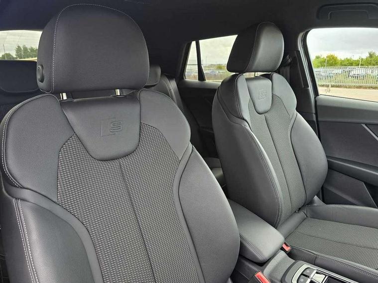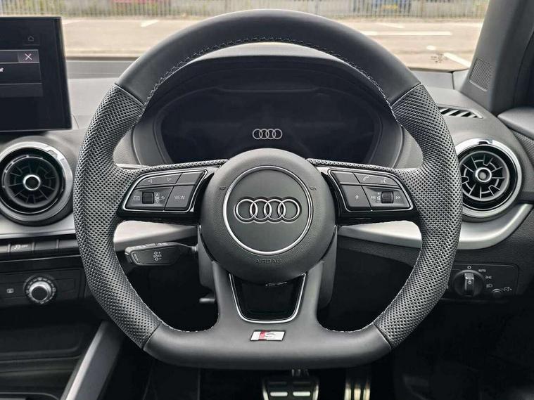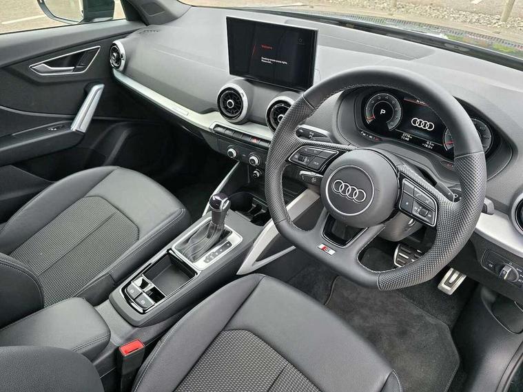 3D map display, Audi connect navigation and infotainment includes innovative services, Audi connect remote and control connects your vehicle to your smartphone, Audi drive select: S tronic - power steering assistance + engine + gearshift (modes: comfort, auto, dynamic, efficiency, individual), Audi smartphone interface - Apple carplay/Android Auto, USB connect, 2xSDXC card readers, voice control for navi, telephone, music and 3rd party apps, Audi virtual cockpit, Automatic start/stop system with recuperation, Bluetooth interface includes bluetooth audio streaming, Camera based traffic sign recognition, Cruise control, Distraction and Fatigue warning, E-call, Jukebox hard drive memory for music (10GB), Lane departure warning, MMI navigation plus with 8.8" touchscreen, Natural voice recognition, Power operated tailgate, Progressive steering, Rear parking sensors, Sport suspension, 6 passive loudspeakers, DAB Digital radio, USB type C port, Audi beam, Auto dimming rear view mirror, Black window trims, Bumper in full body colour paint finish, Electrically adjustable, folding, auto dimming and heated door mirrors with integrated LED side indicators, Front windscreen with grey tinted sunband, LED daytime running lights, LED headlights with dipped beam, high beam, position lights, indicators, LED rear lights, LED third brake light, Privacy glass - dark tinted rear and rear side windows from B-pillar backwards, Rear side wing doors, Rear wiper, Variable front intermittent wipers, Wheel arch trims in manhattan grey, 12v socket in front, 3 seat bench in 2nd row, 3 spoke flat bottomed multi-function leather sport steering wheel with gear shift paddles, 4-way electric lumbar support for front seats including manual seat height adjustment for both front seats, 60/40 split folding rear seat bench, Black carpets, Black cloth headlining, Front and rear head restraints, Front centre armrest, Front sport seats, Front/rear floor mats, Height/reach adjust steering wheel, Illuminated door sill trims with S logo, ISOFIX child seat mounting in front passenger and rear outer seats, Manual air conditioning, Single front passenger seat, Stainless steel pedals, Black styling pack - Q2, 3x3 point rear seatbelts, 6 airbags - Front, curtain and front side airbags, Electromechanical parking brake, Electronic stabilisation control including ABS, ASR and EDL, Front passenger airbag deactivation, Hill hold assist, Pre-sense front with pedestrian recognition, Seatbelt monitoring, Tyre pressure warning light with visual and acoustic warning, Warning triangle and first aid kit, Anti theft alarm, Anti theft wheel bolts, Electronically operated child locks, Remote central door locking, Aluminium interior element, Black dashboard, Gloss black centre console, Matt brushed aluminium trim inlays, Tool kit,