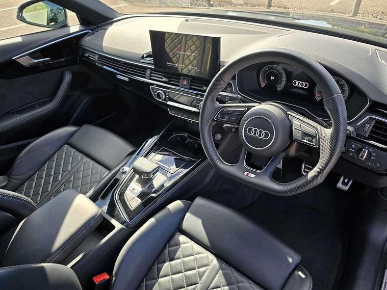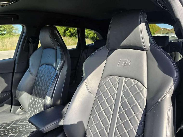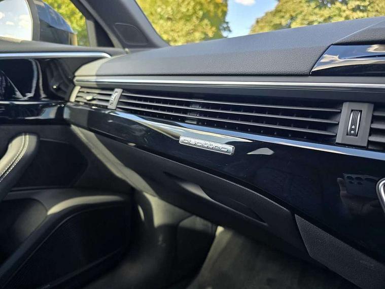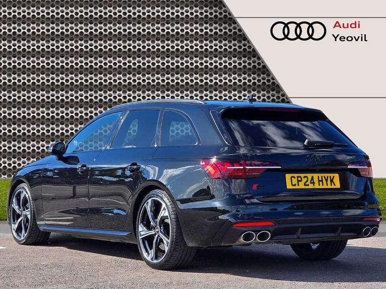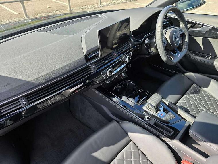 Audi connect safety and service (e-call), Audi connect with Amazon Alexa Integration, Audi drive select, Audi smartphone interface, Audi virtual cockpit, Automatic start-stop system with coasting functionality and efficiency programme, Bluetooth interface, Electromechanical power steering, Email, calendar and text messages displayed via MMI, MMI Navigation plus with MMI touch includes 10.1" high resolution colour MMI display, 3D map, Power operated tailgate, S instrument dials, Voice control system, 58 Litre fuel tank, S sports suspension, 2 USB charging ports, Audi sound system with 10 loudspeakers, DAB digital radio reception, Audi Beam uses LEDs to project the Audi logo, Audi rings and model badging in black, Auto dimming rear view mirror, Body colour door handles, Body colour front spoiler lip, Body colour side sill trim, Electrically folding auto dimming/adjustable/heated door mirrors with LED side indicators and kerb view function for passenger side, Front and rear bumpers with side skirts, High beam assistant, High gloss black B pillar trims and triangular rear door trim, LED headlights with LED rear lights + dynamic rear indicators + headlight adjustment and high beam, turning light + LED daytime running lights, LED third brake light, Privacy glass, Rain and light sensors, Rear side wing doors, Rear wiper, S Line badges on the front wings, S Line roof edge spoiler, S rear diffuser in twilight grey matt and honeycomb grille in black, S specific dual branch chrome tailpipes with twin oval pipes on left and right, S specific side air inlets in black with chrome inlays in unique S design, S Style rear spoiler, Variable intermittent front wash/wipe, Windscreen with acoustic glazing, 40/20/40 split folding 3 rear seat bench in 3 parts with rear centre armrest, Black cloth headlining, Black leather gear lever knob, Contrast stitching on seats, steering wheel and gear lever gaiter, Deluxe 3 zone electronic climate control, Door sill trims with aluminium inlay, Electric load area cover, Electrically adjustable front seats, Fine nappa leather upholstery with S embossed logo + super sports seats, Front and rear head restraints, Front centre armrest, Gear lever with diamond S badge, Heated front seats, Illuminated door sill trims with S logo, ISOFIX child seat mounting and top tether, Key with S logo, Pneumatically adjustable lumbar support with massage function, Single front passenger seat, Stainless steel pedals and foot rest, Black styling pack - A4 Avant Sport Edition/S4 Black edition/S4 Vorsprung, Extended leather pack - A4/S4, LED Interior light pack - A4/S4, 3 rear seatbelts, 6 airbags - Driver, front passenger, curtain and side windows, Electronic Stabilisation Control (ESC) including ABS, ASR and EDL, Front brake calipers painted in black with S4 logo, Hill hold assist, Multi collision brake assist, Pop-up bonnet for pedestrian protection, Pre sense city, Rear door child safety locks, S model enhanced braking system, Seatbelt monitoring, Warning triangle and first aid kit, Anti theft alarm, Anti theft wheel bolts, Central locking, Keyless Go, Tool kit, Tyre repair kit,