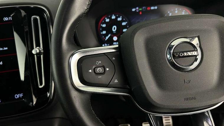 12.3" Active TFT crystal driver's instrument display, 9" centre console portrait touch screen, Adjustable steering wheel force, Bluetooth hands free telephone kit, Drive mode selector, Lane keep assist with driver alert control, Oncoming Lane Mitigation, Power operated tailgate, Sensus navigation with European mapping and traffic information, Speed limiter, Speed sensitive steering, Voice activated control for key functions, Volvo on call, Sports chassis, DAB Digital radio, Steering wheel mounted remote controls, Adaptive brake lights with high level LED brake lights, Auto dimming interior mirror, Automatic headlamp levelling, Black stone door mirrors, Black stone roof, Colour coordinated auto folding and heated power door mirrors, Dark tinted windows for rear door side windows and cargo compartment, Dual integrated exhaust pipes with high gloss black surround, Front aluminium tread plates, Front and rear electric windows, High gloss black front and rear skid plate, High gloss black lower front bumper, High gloss black mesh front grille with high gloss black surround, High gloss black roof rails, High gloss black sensus surround deco, High gloss black window trim, Home safe and approach lighting, LED Headlights + Active high beam incorporating daytime running lights, Rain sensor with automatic windscreen wiper activation, Rear side wing doors, Rear wiper, Roof antenna, Roof spoiler, Visible VIN plate, 12V socket in front tunnel console and luggage compartment, 2 zone electronic climate control and rear air vent, 3 seat bench in 2nd row, 60/40 versatile split folding rear seat, A-pillar parking ticket holder, Centre console cupholders and storage, Charcoal headlining, Driver's side lower dashboard credit card storage compartment, Front footwell illumination, Front headrests, Front reading light and theatre lighting, Front seat cushion extensions, Glovebox bag hook, Height/reach adjustable steering column, Illuminated glovebox, Illuminated luggage compartment, Illuminated vanity mirrors, Isofix attachments on outer rear seats, Key integrated remote, Leather gearknob, Load protection net, Multi directional lumbar support, Rear armrest / integral cup holders / storage tray, Rear coat hook, Single front passenger seat, Sports floor mats, Sports pedals, Sports tailored steering wheel, Underfloor cargo storage, 3x3 point rear seatbelts, City safety includes pedestrian, cyclist and large animal detection and front collision warning with full auto brake, Drivers knee airbag, Dual stage driver/passenger airbags, Electronic parking brake with auto hold, First aid kit, Front and outer rear seatbelt reminder and pretensioners, Front seats SIPS airbags, Hill descent control, Hill start assist, Inflatable curtain, Passenger airbag cut-off device, Road sign information display, Run off Road Mitigation, Run off Road Protection, SIPS (Side Impact Protection System), Slippery road and hazard light alert, Stability and Traction Control with Spin control, Engine Drag Control and Corner Traction Control, Tyre pressure monitoring system, Vehicle deceleration control with Anti-lock Brake System, Electronic Brake Distribution and Emergency Brake Assist, Warning triangle, WHIPS whiplash protection system - front, Anti-theft alarm including immobiliser/volume sensor + level sensor, Care key with user defined top speed, Key integrated remote control central locking + fuel flap with deadlocking system and auto open/close power windows, Locking wheel nuts, Private locking for tailgate, Cutting edge aluminium inlay, Lower dashboard, tunnel console and door panel in charcoal,