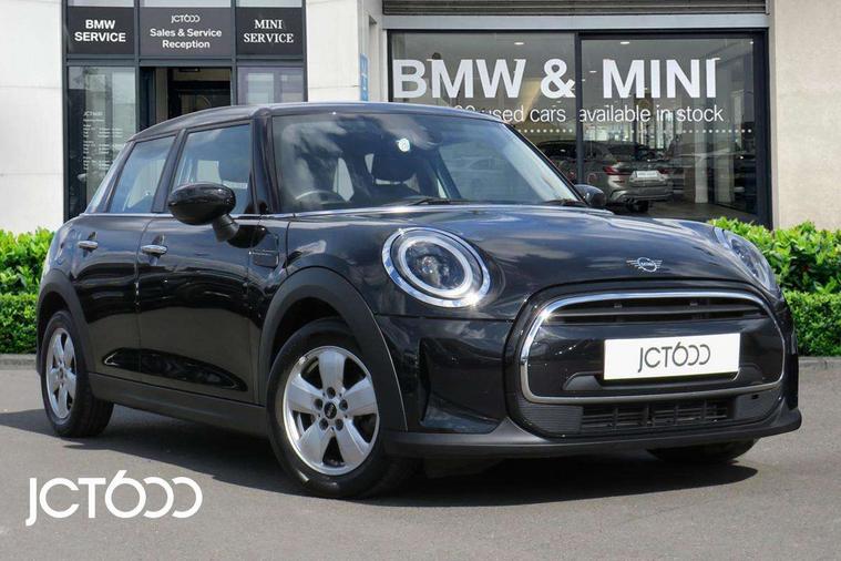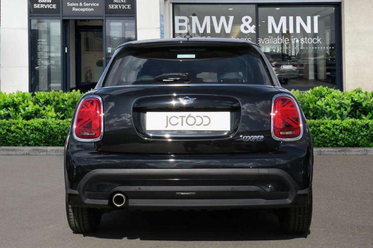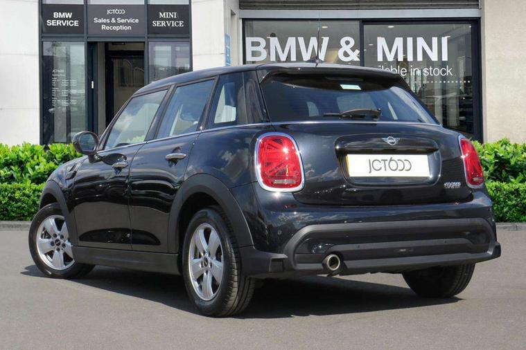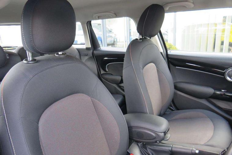 Apple CarPlay, Automatic start/stop function with brake energy recuperation, Compatible mobile phone bluetooth with audio streaming, Electro-mechanical speed dependant steering assistance, Flexible car sharing preparation, Mini E-call, MINI TeleServices, On board computer, Service interval indicator, Double Vanos system, Fully variable valve control, Gear change indicator display, High precision injection, Performance Control, Steptronic transmission with double clutch, 8.8" touchscreen with LED ring, FM tuner and DAB digital radio, 3rd brake light, Automatic headlight activation switch, Body colour fuel filler cap, Chrome border high gloss black slats radiator grille, Dynamic brake lights, Electric front+rear windows, Exhaust tailpipe on left with chrome finisher, Heated rear window, Heated windscreen washer jets, Metal door sill strips with MINI imprint, Model logo Cooper on right of tailgate, Rain sensor window wipers, Rear fog lights, Rear LED lights with union jack design, Rear side wing doors, Rear window wiper, Side scuttle panel with integrated indicator, Sun/heat protection glass, White indicator lenses, 12V Accessory socket in centre console, 3 seat bench in 2nd row, 4 lashing eyes in luggage compartment, 60/40 split folding rear seat, Ambient lighting, Carbon black colour line - Knee roll and door armrest, Chrome interior highlights, Cupholders, Front and rear head restraints, Front and rear isofix with front passenger airbag deactivation, Front and rear velour floor mats, Glove compartment, Height and length steering column adjustment, Interior lighting with 12 different colours across the dashboard, underneath door bezel with illuminated laser-engraved design on central display, Leatherette gearshift lever and handbrake gaiters, LED reading lights, vanity mirror lights, front foot well light and spotlight on front seats, Mechanical seat adjustment - forward/back & backrest for front seats and driver seat height adjust, Multifunction steering wheel, Satellite grey headlining including grab handles and clothes hooks, Single front passenger seat, Sport leather steering wheel with speed limiter and audio/communication controls, Storage compartments in doors, Sunvisors with vanity mirrors, 3 point seatbelts on all five seats, 6 Airbags - front, side, head and seat belt tensioners, Anti-lock braking system (ABS), Child locks on rear doors, DSC - Dynamic Stability Control, Front and rear disc brakes, Hill start assist, Single tone fanfare horn, Tyre pressure monitoring system, Alarm system with tilt sensor, monitoring doors, bonnet interior and tailgate, Electronic vehicle immobiliser, Start/stop toggle with keyless go, Piano black interior trim, Tool kit, Tyre repair kit,