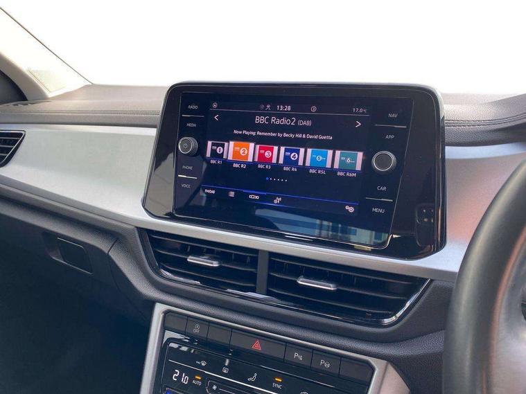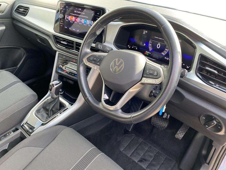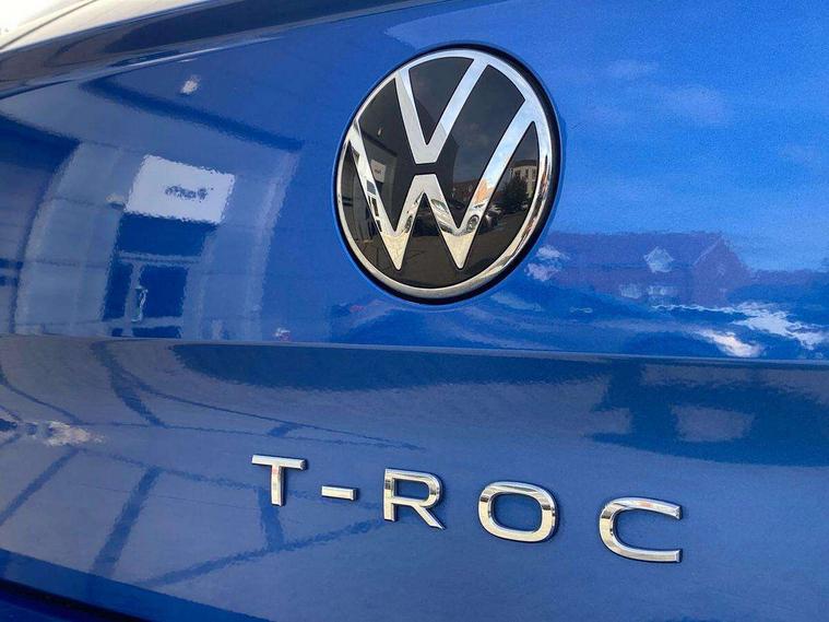 Bluetooth mobile phone interface, Driver alert system with fatigue detection, Driver tips and journey analysis, Emergency call service, Lane keeping system Lane Assist, Modified key software - reduce switch off time for key status change to Long no motion, Online services, Park assist including front and rear parking sensors, Power assisted speed sensitive steering, Service interval indicator, Tailgate/trunk lid release from outside, Think blue trainer driver tips and journey analysis, Warning sound and light for front seatbelts unfastened, Wireless app connect, Battery regeneration during braking, Front shock absorption, Rear shock absorption chassis with increased ride height, Start/stop function with battery regeneration, DAB Digital radio, Diversity antenna for FM reception, Music playback - MP3, WMA and AAC files, Premium USB cable in choice of either Apple or Android smartphone compatibility, SD card slot, Simultaneous pairing of 2 compatible mobile devices, Title and cover art display, We Connect and We Connect Plus functionality, 3rd brake light, Auto dimming interior rear view mirror, Automatic hazard lights activation under emergency braking, Automatic headlight control with LED separate daytime running lights with coming/leaving home function, Black roof rails, Body coloured bumpers and radiator grille with chrome trim and front fog lamps with chrome bezel, Body coloured exterior mirror housings and door handles, Extended roof spoiler, Exterior mirrors aspherical on driver side, convex on front passenger side, External USB type C socket and charging sockets, Front windscreen wiper with intermittent wipe and 4 position delay, Heated rear window, LED rear combination lamps, LED rear number plate lights, LED tail lamp rear comination lamps, Power windows with comfort operation and circuit breaker, Rain sensor, Rear exhaust tailpipe, Rear fog light on one side and reversing lights on both sides, Rear side wing doors, Rear wash/wipe with intermittent wipe setting, Remote electrically foldable door mirrors, puddle lights and reverse activated passenger's door mirror, 12V power socket in centre console, 3 rear head restraints, 3 seat bench in 2nd row, 4 load lashing points in luggage compartment, Air care climatronic air conditoning system with active combination filter and 2-zone temperature control, Ambient lighting with mirror logo projection, Cloth upholstery, Door and side trim panel in cloth, Drawer under drivers seat, Driver/front passenger seat height adjustment, Front centre armrest, Front comfort sports seats, Front cupholders x 2, Front reading light, Instrument lighting, white adjustable panel illumination, Interior light delay, Isofix child seat preparation, Leather gearshift handle, Load-through provision with cup holder when folded down ('Unsplit rear seat bench, split folding backrest, with centre armrest), Luggage compartment lighting, Lumbar support for driver's and front passengers seat, Non-folding front passenger seat backrest, Single front passenger seat, Storage compartment in left and right luggage area, Storage compartment in rear doors, Storage compartments in driver and front passenger doors, Sunvisors with illuminated vanity mirrors, Variable boot floor, height adjustable and removable, Driver assistance pack without proactive passenger protection - T-Roc, 3 point height adj front seatbelts + pretensioners, 3 point seatbelts in outer rear with ECE label, ABS, Child locks on rear doors, Driver and front passenger airbag with front passenger airbag deactivation, Driver and front passenger safety-optimised head restraints, Drivers seatbelt reminder, Electronic parking brake, Electronic Stability Control (ESC) inc EDL (Electronic Differential Lock) and ASR (Traction Control), Front and rear passengers curtain airbag system including front side airbags, Front assist with city emergency braking and pedestrian monitoring, Front disc brakes, Front seat side impact airbags, Hill start assist, Predictive pedestrian protection, Rear disc brakes, Single tone horn, Tyre pressure loss indicator, Volkswagen roadside assistance, Alarm with interior protection, Anti-theft alarm system with interior monitoring, backup horn, and towing protection, Remote central locking with SAFELOCK, radio remote control with 2 remote control folding keys, Pewter matt decorative inserts for intrument panel, centre console and door panels at the front, Trims for alloy wheels,
