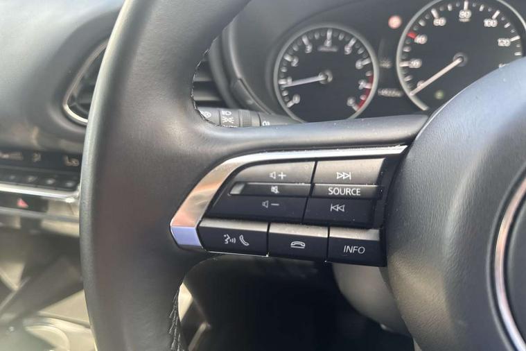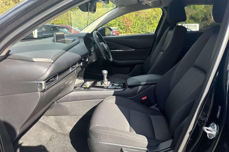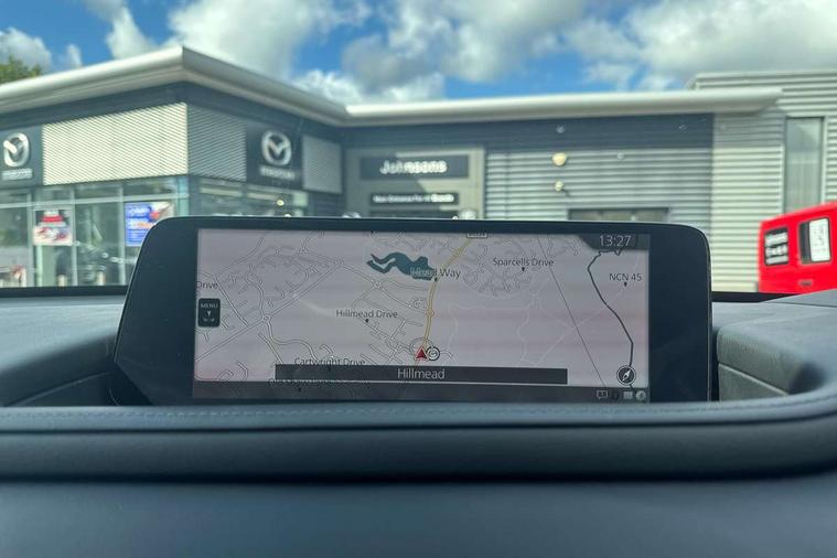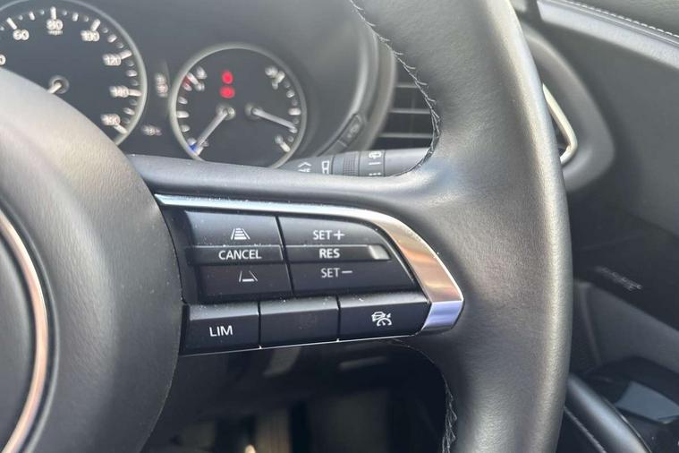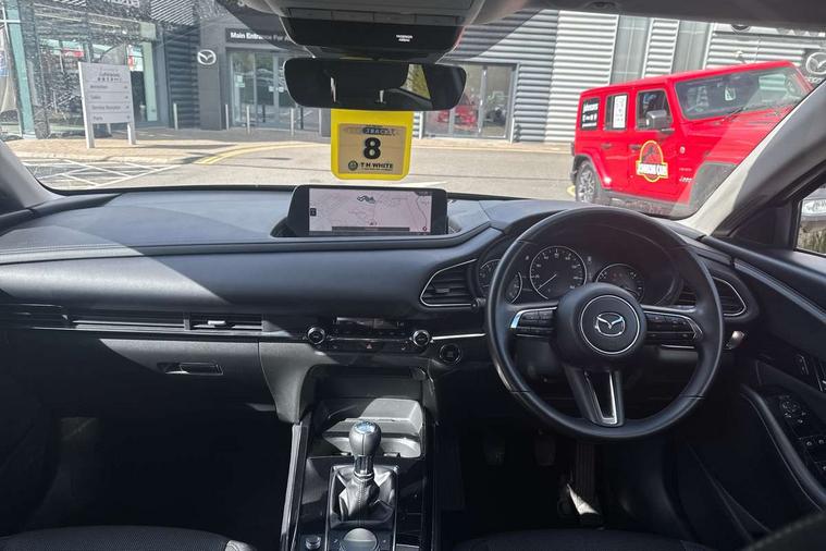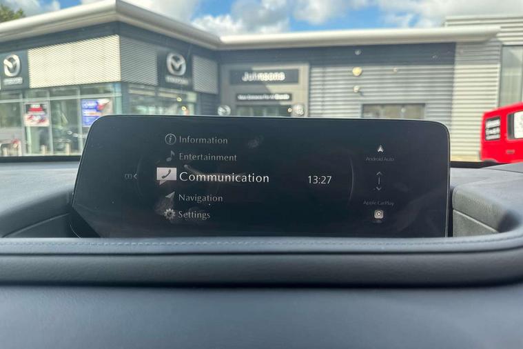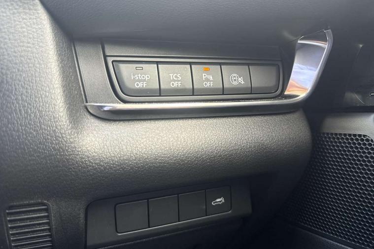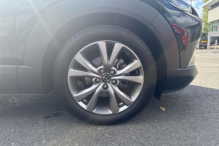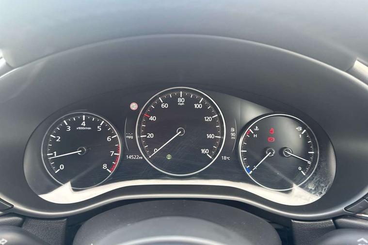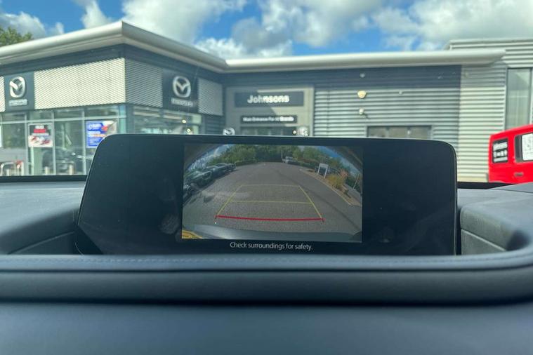 10.25" display with Mazda Connect infotainment, 7" TFT Colour driver instrument panel display, Adaptive cruise control (Mazda radar cruise control), Blind spot monitoring with rear cross traffic alert, Driver attention alert system, E-call with GPS, Emergency stop signalling system, Engine start/stop button, Front and rear parking sensors, Integrated Alexa Voice Assistant, Integrated bluetooth, Integrated Mazda navigation system, Intelligent speed assist, Lane keep assist system (LAS) with Lane departure warning system (LDWS), Mazda connected services, PAS, Power lift gate, Qi wireless charging, Reversing camera, Service indicator, Tailgate, Traffic sign recognition, Trip computer, Windscreen projected colour active driving display (HUD), Wireless Apple CarPlay/Android Auto, Cylinder Deactivation, i-stop, 2 x USB Type-C inputs, AM/FM and DAB radio, Bose surround sound system with 12 Speaker, Bose center point, Bass match and audio pilot technology, Multimedia Commander including separate volume dial, Steering wheel mounted audio/bluetooth controls, Adaptive LED Headlights, Auto dimming driver's door mirror, B-pillar and C-pillar garnishes in gloss black finish, Body coloured, electrically adjustable, heated auto power folding door mirrors with integrated indicators, Chrome finish signature wing in front grille, Coming/leaving home lighting function, Dual bright finish exhaust tip trim, Dusk sensing headlights, Electric front/rear windows with one touch auto up/down, Frameless auto dimming interior rear view mirror, Front kodo turn signal, Gloss black front grille, Gloss black rear roof spoiler, High beam assist, LED auto headlight levelling, LED signature daytime running lights, Privacy glass (rear side windows and rear screen), Rain sensing front wipers with adjustable speed and intermittent wipe, Rear fog lights, Rear side wing doors, Rear wiper, Signature LED rear combination lights, Third brake light, 12V power outlet in centre console, 3 seat bench in 2nd row, 60/40 split fold down rear seats, Bright interior trim accents with steering wheel centre bezel, surround of engine start / stop button and glove box handle, Cloth upholstery with interior accents, Dark cloth door panel inserts, Dashboard, door cards and front centre armrest in black cloth, Driver and front passenger visors with covered vanity mirror and driver ticket holder, Driver seat manual slide, recline, height and seat tilt adjust, Driver, front passenger and two rear door storage, Driver, Front passenger and two rear grab handles with coathooks, Dual zone climate control air conditioning with rear air vents, Folding rear centre armrest with two cup holders, Front and rear (x3) head restraints, Front and rear LED lighting, Front armrest, Front centre storage with two cupholders with lid, Front passenger seatback pockets, Front passengers seat manual slide, recline and height adjustment, Gear shift indicator, Glovebox illumination, Heated front seats with 3 stage setting, ISOFIX child seat anchorage points attached on outer rear seats, Leather wrapped gear shift knob, Leather wrapped steering wheel with telescopic and tilt adjustment, LED luggage compartment lighting, Light roof headlining and pillars, Roof mounted sunglasses holder, Single front passenger seat, 3 point ELR front seat belts x2 with pretensioners, 3 point ELR rear seat belts, Anti-lock braking system (ABS), Drivers knee airbag, DSC - Dynamic Stability Control, Electronic parking brake with auto disengage function and auto hold function, Front and rear curtain airbags, Front dual stage driver and single stage front passenger airbags, Front passenger airbag cut-off switch, Front side airbags, Front smart city brake support, G-Vectoring control plus, Hill launch assist, Manual child lock in rear doors, Mild Hybrid system with regenerative braking, Seatbelt reminder for driver/front passenger and rear seats, Traction control system (TCS), Tyre pressure monitoring system (TPMS), Remote central locking with deadlocking and automatic door lock when driving, Smart keyless entry, Thatcham accredited alarm and immobiliser, 18" Silver metallic alloy wheels, Emergency tyre repair kit,