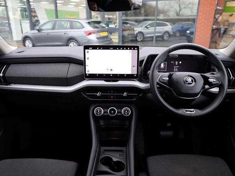 13" satellite navigation touchscreen display, Blind spot detection with door exit warning, Bluetooth system, ChatGPT functionality, Drive mode selector, Driver alert with fatigue sensor, Driver drowsiness alert system, Dry display cleaner, e call+, Front and rear parking sensors, Front cross traffic assist, Lane assist, PAS, Rear traffic assist, Rear view camera, Tailgate unlocking from outside, Traffic sign recognition, USB C Port x 2 in front centre console, Virtual Cockpit - 10.25" digital display, Voice control system, Wireless charging for two smartphones (15W) with cooling function, Wireless SmartLink for Apple CarPlay and Android Auto, 32A charging cable, Stop/start function, 2x USB-C in the rear, 8 Speakers, DAB Digital radio, Aero front windscreen wipers with intermittent function, All weather light, Auto dimming rear view mirror, Black wheel arch surrounds, Body colour bumpers, Body colour door mirrors and handles, Cornering light and poor weather light, Electric folding /adjustable/separted heated/folding door mirrors, auto dimming with boarding sports and memory function, Electric front and rear windows, Exterior black decorative trims, Heat insulating glass in windshield, Heated rear window, Ice scraper in fuel tank cap, Invisible tailpipe, LED daytime running lights, LED front fog lamps, LED Headlights, LED rear fog light, LED rear lights, LED third brake light in rear spoiler, Light assistant with automatic headlight control and coming home feature, Logo projection in door mirrors, Rear side wing doors, Rear spoiler, Rear window wiper, Safety reflectors on front and rear doors, Unique dark chrome design logo on alloy wheels, Window control switches with black trim, Windscreen wipers with rain sensor, Without engine designation, 1.5l bottle holder points in all door, 12V socket in boot, 1x centre rear reading light, 3 configurable smart dials with 32mm coloured display, 3 seat bench in 2nd row, 4 foldable roof handles with rear coat hooks, Ambient interior lighting - Dashboard, front-door stowage compartments, front and rear door panels and footwell lighting, Automatic gear selector on steering wheel, Chrome interior door handles, Driver/front passenger reading lights, Fabric headlining, Fixed bench 40:60:40 split folding backrests, Front and rear floor mats, Front centre armrest with jumbo box storage compartment, cup holder and 12V socket, Front courtesy lights, Height adjustable front headrests, Isofix child seat fittings in outer rear seats and front passenger with top tether, iV badging on boot, Manual height adjustment for front passenger seats and thigh support extender, Manual lumbar support for front passenger seat, Manually adjustable steering column, Pollen filter, Rear centre armrest with cupholders, Rear seat boot backrest release, Retractable luggage compartment cover, Single front passenger seat, Skoda lettering on steering wheel, Sliding trunk cover, Small Bags on the inner sides of the front backrests, Storage pocket including mobile phone pockets on the backs of the front seats, Sunvisors with illuminated vanity mirrors, Three rear height adjustable headrests, Ticket holder on A Pillar, Tri zone climate control, Umbrella in door panel x1 made from sustainable materials, Upper and lower glovebox with card holder and coin compartment, USB C port by rear view mirror for charging only (15W), Auto door release and activation of warning lights in the event of an accident, Driver and front passenger airbag with knee airbag and front passenger airbag deactivation, Electric child locks, Electronic parking brake, ESC (incl. ABS+EMD+MSR+ASR+EDL+HBA+DSR+RBS+ESBS+MCB+TSA+XDS), Front assist with braking reaction to vehicles, pedestrians and cyclists, Front disc brakes, Fuel cut off safety device, Height adjustable front 3 point seatbelts + pretensioners, Hill hold control, Junction assist with automatic emergency braking, Rear disc brakes, Safety vest holder in door, Seat belt reminder for all seats, Three point rear seat belts, Two tone horn, Tyre pressure monitor, Alarm with interior monitoring and tilt sensor with safe function, Anti-theft wheel bolts, Immobiliser, Remote central locking with 2 keys, Breakdown kit,