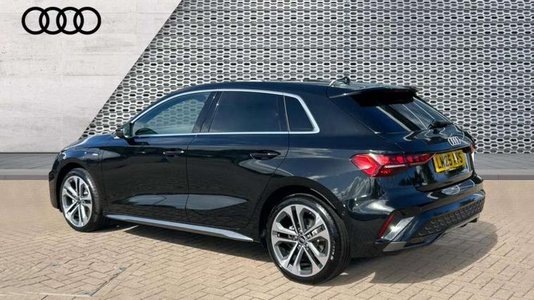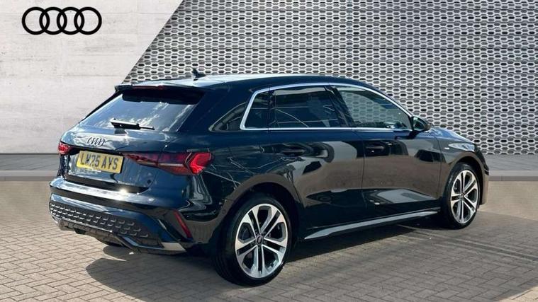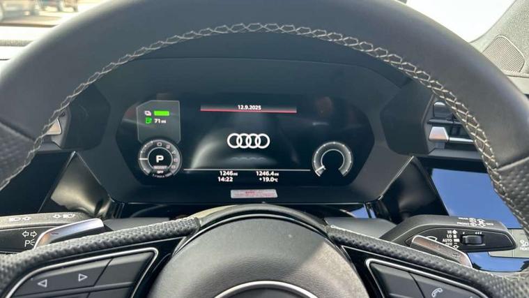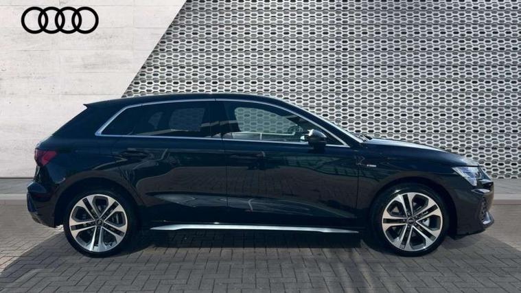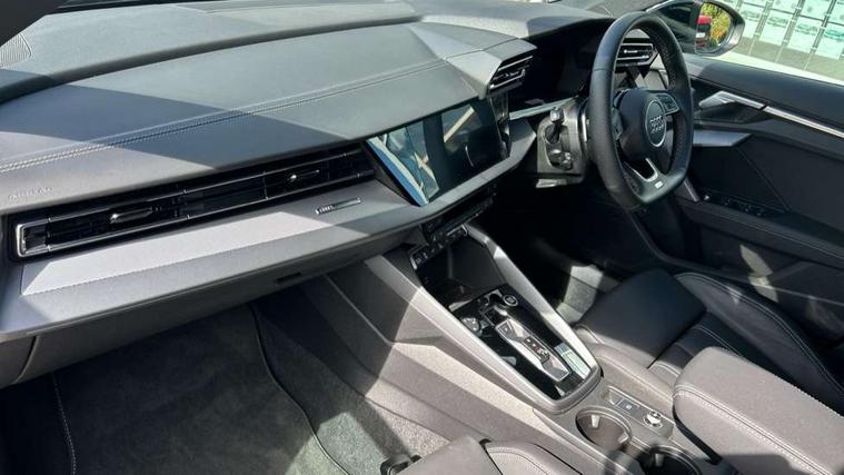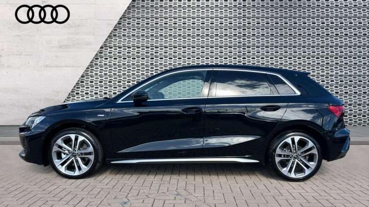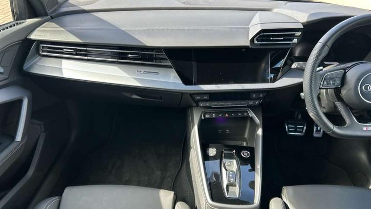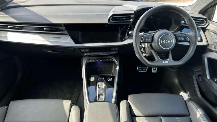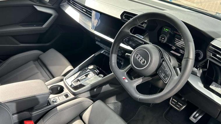 Adjustable speed limiter, Audi drive select, Audi smartphone interface with app store includes wireless Apple carplay, Android auto and Amazon alexa integration, Audi virtual cockpit plus - 12.3" full HD resolution dynamic digital instrument cluster, Automatic start/stop system with recuperation, Bluetooth interface, Camera based traffic sign recognition, Collision avoidance assistant, Cruise control, Distraction and Fatigue warning, e-Call (emergency call), Electromechanical power speed sensitive steering, Emergency assist, Lane departure warning system, MMI Navigation Plus with high resolution 10.1" colour touch screen display, Park Assist with parking system Plus, Service indicator, Trip computer, Voice control system with natural language interaction, 3 pin 10 amp domestic charging cable, CCS socket for DC charging, Charging cable for public charging, mode 3 (type 2), 32 A, Compact charging system, Industrial connector CEE 32 A, 230 V, length 1.6 m, Standard suspension, Type 2 socket for AC charging, Audi Phonebox light with wireless charging, Audi sound system - 10 loudspeakers including centre loudspeaker and subwoofer, DAB Digital radio, USB ports with charging function in the rear, Acoustic glass windscreen, All weather light, Aluminium window trim, Auto dimming frameless rear view mirror, Automatic dynamic range control, Body colour exterior mirrors, Chrome exhaust tailpipes, Dipped beam, main beam, position light and turning light, Electrically adjustable/heated/folding/auto dimming door mirrors with integrated LED indications + kerb view function for passenger side, Exterior model badging, Front and rear side air inlets in grained matt black with dark liquid chrome frame, Front electric windows, Front radiator grill in high gloss dark chrome, Heat insulating glass windscreen, Illuminated door sills with aluminium inserts at the front with S logo, Intersection light, LED 3rd brake light, LED brake lights, LED daytime running x3, LED headlights with LED rear lights and dynamic rear indicators, LED rear number plate lights, LED reverse light, LED tail lights, Light and rain sensors, Manoeuvring light, Motorway light, Privacy glass - dark tinted rear window, rear door and side windows, Rear diffuser and grill in grained matt black with inlay in dark liquid chrome, Rear electric windows, Rear side wing doors, Rear wiper, S line bumpers, S roof spoiler, Side S line emblems on front wings, Side sill trim in dark liquid chrome, Static Cornering lights, 12V socket and storage compartment in front centre console, 3 seat bench in 2nd row, 3 spoke flat bottomed leather multifunction sport steering wheel with gear shift paddles, 3-zone deluxe automatic air conditioning, 4 way electrically adjustable lumbar support for driver and front passenger, 40/20/40 split folding rear seat bench, Black cloth headlining, Black front and rear floor mats, Convenience auxiliary air conditioning, Front and rear centre armrest in artificial leather with contrasting stitching on armrests and instrument panel, Front and rear headrests, Heated front seats, Height and reach adjustable steering wheel, Manual boot compartment lid, Manually adjustable front seats, Rear centre armrest with cupholder, S badging on the steering wheel, Seat side bolsters, Single front passenger seat, Stainless steel pedals and front footrest in black, Twin leather upholstery with front sports seats S embossed logo, Aluminium interior elements pack - A3, Multi-coloured LED interior lighting package with Multi-coloured contour lighting of instrument panel - A3, 3x3 point rear seat belts, Acoustic vehicle alerting system, Driver and front passenger airbag with passenger airbag deactivation, Electronic Stabilisation Control (ESC) including ABS, ASR and EDL, First aid kit with warning triangle and 2 safety vests, Front side airbags with head airbags and interaction airbag, Hill hold assist, Pre-sense front with pedestrian and cyclist detection, Seatbelt monitoring, Tyre pressure loss indicator, Anti theft alarm, Anti-theft wheel bolts, Electronically operated child locks, Immobiliser, Remote central locking with safelock, Black dashboard, Inlay in dark aluminium spectrum, Tyre repair kit,