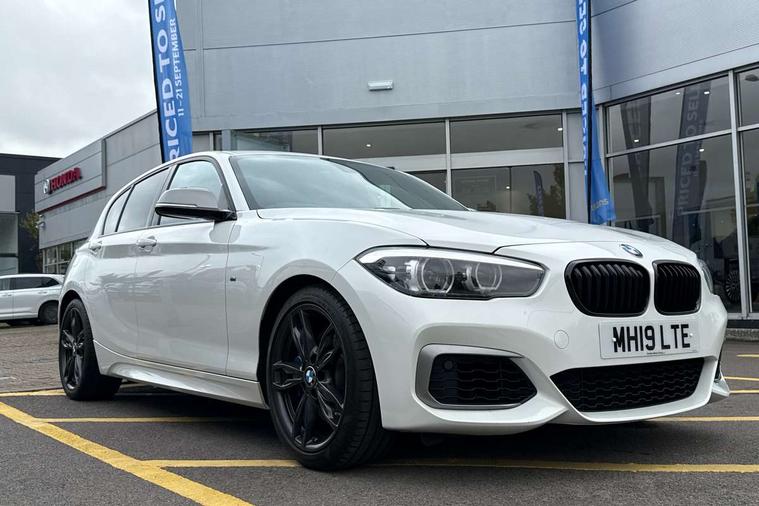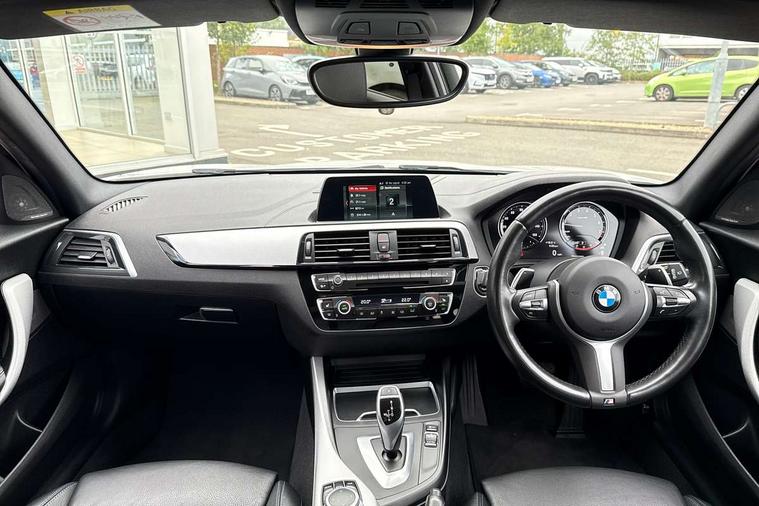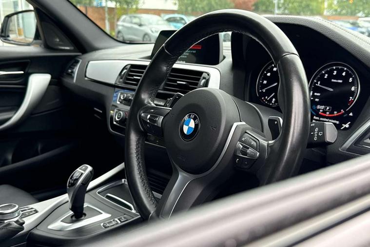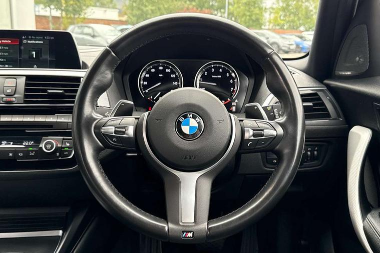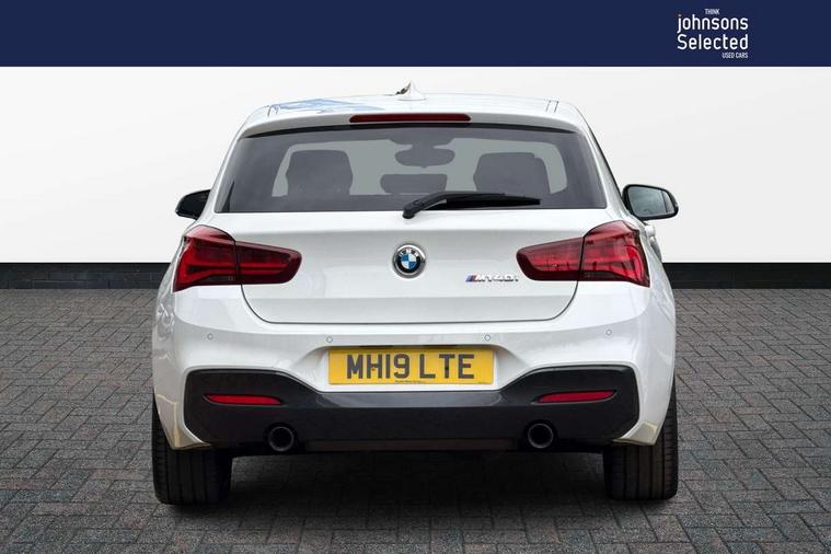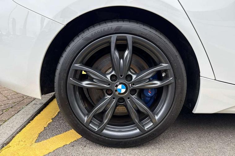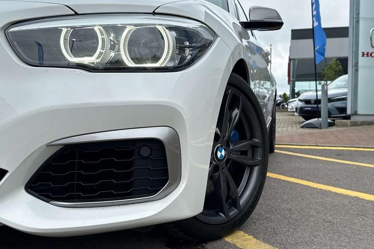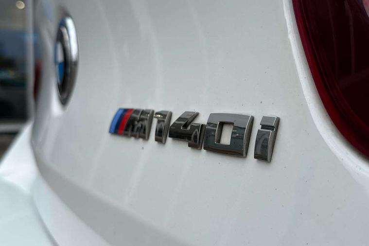 Automatic start/stop system, BMW Online services, BMW remote services, BMW Teleservices, Brake force display, Brake pad wear indicator in front and rear, Check Control warning system for monitoring of lights and door/luggage compartment open warning, Cruise control with brake assist, Eco pro mode, Instrument cluster with speedometer with miles per hour read out, tachometer and fuel gauge, Lights on warning by audio warning signal when ignition is switched off, Oil temperature display via on board computer in instrument cluster, On board computer - average speed+fuel consumption, service interval, clock/date, odometer/trip meter, outside temperature display and ice warning, On board diagnostics, Optimum shift indicator, Personal Profile, Real time traffic information, Speed limiter, Variable sport steering, Battery age recognition function, Drive Performance Control, Sport automatic transmission with Launch Control, Sports function on gearbox with steering wheel mounted gearshift paddles, BMW professional radio with CD player, DAB Digital radio, Harman/Kardon loudspeaker system, Body colour door handles, Body colour front and rear bumpers, Body colour roof mouldings, Clear lenses direction indicator lights, Dark chrome exhaust tailpipes in dual, round and split, Darkened rear lights with LED light bars, Daytime driving lights, Direction indicator side lights in exterior mirrors, Dynamic brake lights, Electrically adjustable heated door mirrors and washer jets, Ferric grey air blades, Ferric grey mirror caps, Follow me home headlights, Front and rear bumper system with replaceable deformation elements, Front and rear electric windows with open and close fingertip control, anti trap facility and comfort closing, Front door exit lights, Green tinted heat protection glazing, Headlight beam throw control, Heated windscreen washer jets, High gloss black kidney grille with black slats, High level third brake light, LED exterior front door handle lights, Lightweight engineering, M aerodynamic bodystyling, Nearside reverse light in rear light cluster, Offside rear fog lights, Rain sensor including auto headlights activation, Rear window aerial, Rear window wiper, Shark fin antenna, Sun protection glass, Visible VIN plate, Welcome lighting, 12V power socket in centre console, 12V power socket in passenger footwell, 60/40 split folding rear seat, Ambient lighting - switchable BMW classic orange/ cold white LED, Ambient lighting front and rear, Anthracite headlining, Anthracite Velour front and rear floor mats, Conditioned based service, Dakota leather upholstery, Door sill finishers with M140i designation, Driver and passenger illuminated vanity mirror, Four grab handles integrated in roof lining, Front and rear side armrest integrated into door trim, Front folding sliding armrest with storage compartment, Front footwell lights, Front head restraints, Front LED reading lights, Front sports seats with electric side bolster adjustment, Front storage compartment in centre console and in door trim, Front/rear courtesy lights with soft on/off dimming, Glove box handle with chrome surround, Glovebox, Interior light in front centre interior mirrors and rear centre auto interior light activation when door is opened when ignition switched off, Isofix child seat for two outer rear seats, Leather gear knob and handbrake grip, LED luggage compartment lighting, LED rear interior light with centre reading lights, Luggage compartment access via BMW roundel, Luggage compartment lighting, M sports multi function leather steering wheel, Manually adjustable steering column, Multi-function controls for steering wheel, Rear folding head restraints, Sunvisors with vanity mirrors and ticket pocket, Two cupholders with sliding cover and inlay mat, Two sills lashing eyes in the luggage compartment, Two zone automatic air conditioning, 3 point seatbelts on all seats, front pyrotechnic belt tensioners, stopper and belt force limiters, rear coded belt buckles, Active differential brake (ADB), electronic differential lock in DSC-OFF mode, Airbags - Front driver and passenger, front and rear head, front side, curtain head protection, Anti lock braking system (ABS) with brake assist, Automatic Stability Control (ASC), Battery safety cut-off, BMW emergency call, Brake drying, Brake energy regeneration, Braking readiness, Cornering brake control (CBC), Crash sensor activating central locking release, hazard warning lights, Driver and front passenger seat belt security check, DSC+, Dynamic brake control, Dynamic Traction Control - DTC, Front passenger manual airbag deactivation, Front ventilated brake disc, Hill start assist, M Sport braking system, Rear brake discs, Rear child proof door locks, Side impact protection, Twin horns, Tyre pressure monitoring system, Warning triangle and first aid kit, Automatic drive away locking facility, Central locking switch for all doors, fuel filler cap and luggage compartment, Locking wheel bolts, Remote central locking with two Integrate key, one button for opening and closing all lock, open and close window, button for open luggage compartment, Remote control integrated key with blue inset, Start/stop button with comfort go keyless engine start and auto start stop deactivation button, Thatcham Cat.1 alarm and immobiliser, High performance tyres, Reduced rolling resistance tyres,