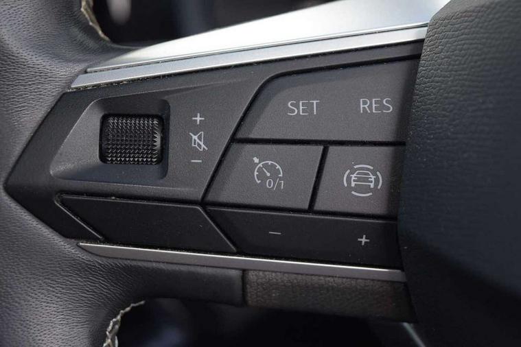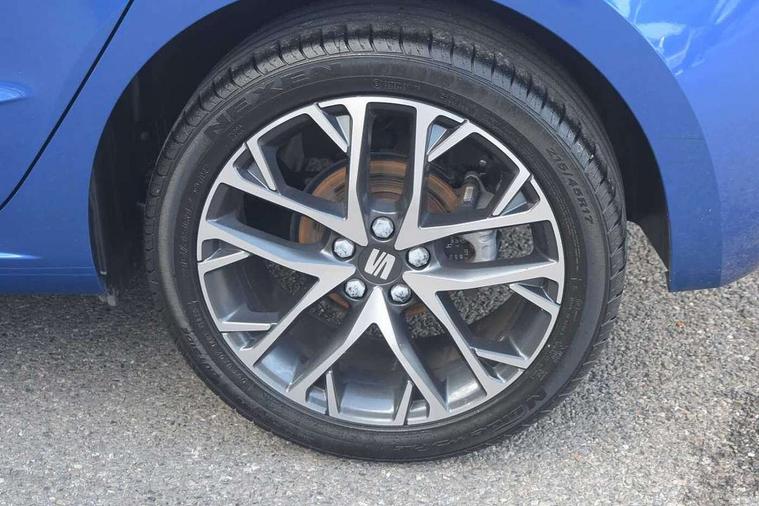 'Lights On' Reminder warning buzzer, 8" Digital cockpit, 9.2" touchscreen navigation system with type C USB socket, Voice control and DAB/AM/FM radio, Auto start and stop system, Bluetooth audio streaming with handsfree system, Digital clock, E-call, Full link smartphone integration with mirror link, wireless apple carplay, Google android auto + USB Type C cable for apple and android devices, Lane assist, Low fuel warning light, Outside temperature gauge, Power Steering, Rear parking sensor, Seat connect with safety, service, remote and online, SEAT logo boot release, Speed limiter, Trip computer, Comfort suspension, Auxiliary input socket, Radio/MP3 player, SD card slot, Steering wheel mounted controls, Anti theft roof antenna, Atom grey door mirrors, Auto dimming rear view mirror, Automatic rain sensing wipers, Body colour bumpers, Body colour door handles, Chrome window surround and upper grille surround, Dark tinted rear windows, Electric adjustable/heated/folding door mirrors, Electric front windows, Electric headlight adjustment, Electric rear windows, Front/rear fog lights, FULL LED automatic headlights with dynamic headlight range control, coming and leaving home, LED daytime running lights, LED tail lights, Rear side wing doors, Rear wiper, Third brake light, 3 seat bench in 2nd row, 60/40 split folding rear seat, Ambient interior lighting, Chrome detailing and black headlining, Comfort seats, Dual zone climate control with combination filter, Front centre armrest, Front courtesy lights, Front cupholders x 2, Front reading lights, Gear shift indicator, Glovebox, Height adjustable front and rear headrests (five), Height adjustable front seats, Height/reach adjust steering wheel, Illuminated air vent surrounds, Illuminated boot, Instrument lighting with brightness control, Isofix, Leather multifunction flat bottomed sports steering wheel, Microsuede cloth upholstery, Passenger sunvisor, Single front passenger seat, Storage pockets on back of front seats, Sunvisors with mirror and driver side card holder, 3 point seatbelts on all 3 rear seats, ABS, Active front headrests, Child locks on rear doors, Electronic stability control, Energy recovery system, Front assist forward collision warning and autonomous emergency braking, Front driver and passenger side airbags with curtain airbag and front passenger airbag deactivation, Hill hold control, Multi-Collision braking, Seat belt reminder for front and rear seats, Tiredness recognition system, Tyre pressure monitoring system, Electronic engine immobiliser, KESSY Keyless entry and go, Locking wheel bolts, Perimeter alarm and interior monitoring with backup horn and tow away protection, Remote central locking + deadlocks, 17" Dynamic machined alloy wheels in Nuclear grey,