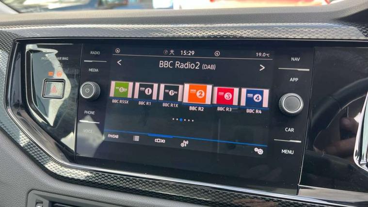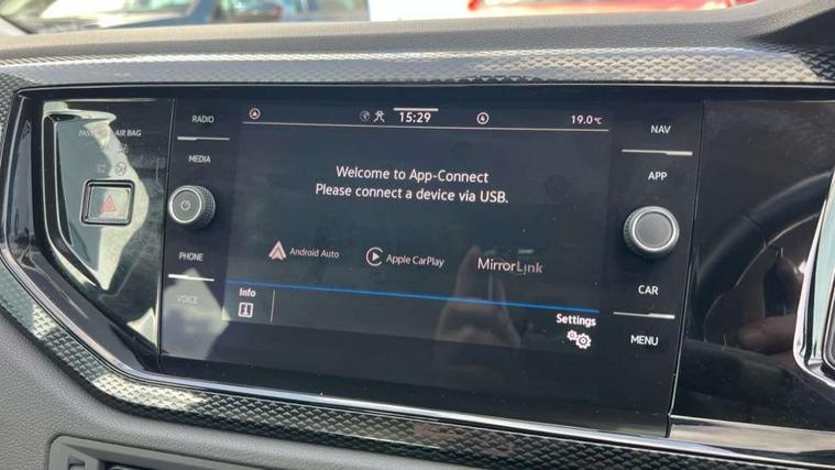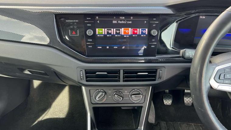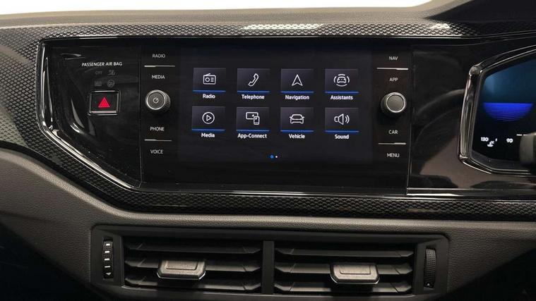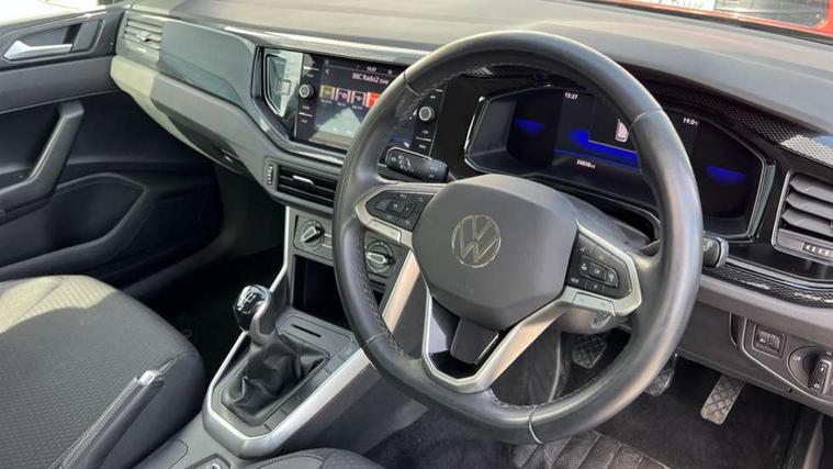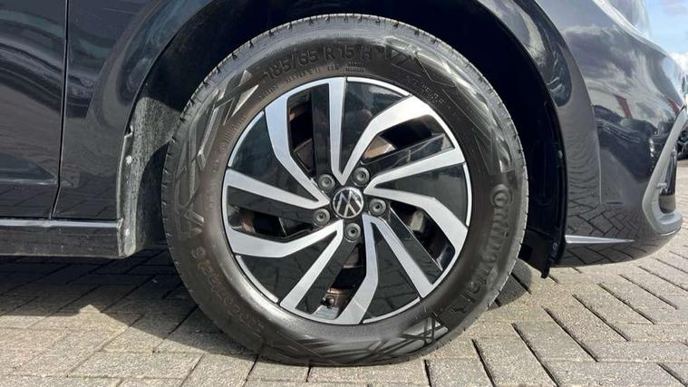 Adaptive cruise control without follow-to-stop and speed limiter, Bluetooth mobile phone interface, Driver alert system, Emergency call service, Front assist system, Power assisted speed sensitive steering, Preparation for We connect and We connect plus, Speedo and rev counter, electronic odometer, trip, service interval display and fuel gauge, Standard rear axle, Travel Assist - Lane keeping system and traffic jam assist, Travel assist including emergency assist, Trip computer, Warning signal and warning light for front and rear seatbelts not fastened, Washer fluid level indicator, Wireless app connect, Front wheel drive, Rear shock absorpion, Start-stop system with battery regeneration (recuperation - energy recovery during braking), DAB Digital radio, Diversity antenna for FM reception, Front and rear 6 speakers, Automatic dimming interior rear view mirror, Body colour bumpers, Body colour door handles, Body colour door mirrors, Electric front windows, Heat insulating darkened glass in side and rear windows, Heat insulating glass windscreen, Power folding adjustable/heated exterior mirrors and front passenger exterior mirror lowering function, Rain sensor, Rear electric windows, Rear fog light, Rear side wing doors, Rear windscreen washer and wiper with interval delay, Third brake light, 12V power socket in centre console, 2 front and 2 rear reading lights, 2 USB-C ports in the front, 2 USB-C charging sockets on the center console in the rear, 3 rear head restraints, 60/40 split folding rear seat and rear seat bench not split, Ceramique headliner, Chrome plated radiator grille inserts, air vent surrounds and light switch surrounds, Door and side trim panel, Driver and front passenger seat height adjustment, Driver/passenger sunvisors with illuminated vanity mirrors, Front centre armrest, Front seat backrest storage pockets, Front standard seats, Handbrake lever handle in leather, Hartley/Thomas cloth upholstery, Isofix child seat preparation easy-fit (for two outer rear seats, and front passenger seat) compatible with I-size, Leather trimmed gear knob, Luggage compartment cover, Luggage compartment floor, Luggage compartment lighting, Multifunction steering wheel, Single front passenger seat, Standard pedal cluster, Light and vision pack - Polo, 3 point height adj front seatbelts + pretensioners, 3x3 point rear seatbelts, ABS, Driver and front passenger airbag with front passenger airbag deactivation, Drivers and front passengers safety optimised head restraints, ESC (Electronic stability control) + EDL (Electronic Differntial lock) and ASR (Traction control), Extended and predictive pedestrian/ cyclist protection, Front curtain and side airbags with center airbag, Front disc brakes, Hill hold control, Manual child lock in rear doors, Rear drum brakes, Single tone horn, Tyre pressure loss indicator, Alarm with interior protection, Anti-theft alarm system with interior monitoring, backup horn, and towing protection, Anti-theft wheel bolts, Electronic engine immobiliser, Lava stone black gloss/matt decorative inserts in dash and front door panels, Low rolling resistance tyres,