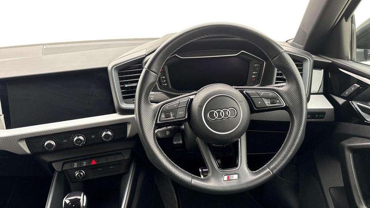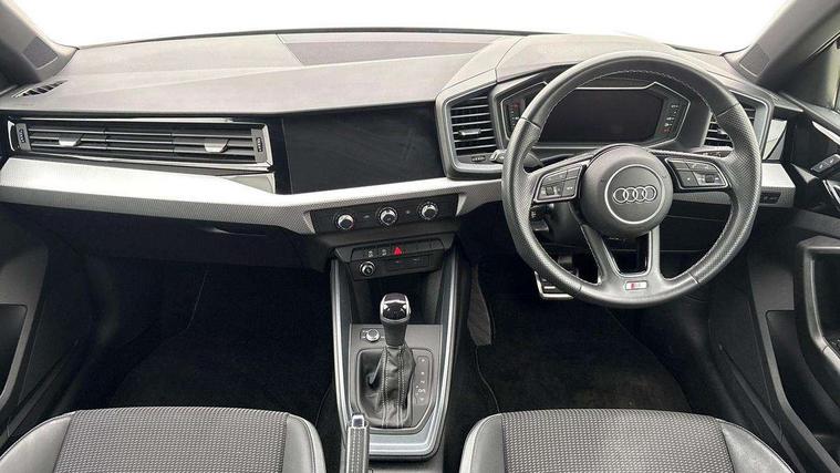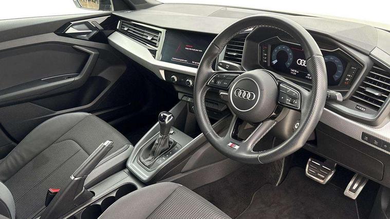 10.25" Digital instrument cluster display classis style instrument dials + speed, odometer, time, outside temperature, telephone menu + fuel level warning, Audi smartphone interface with connect compatible smartphone via USB directly MMI display + Nav, music, third party apps controlled via MMI controller, Automatic start/stop system, Bluetooth interface, Cruise control, Driver's information system, Electromechanical power steering, Emergency e-call, Emergency services call system, Lane departure warning system, Service interval indicator, Speed limiter, Voice control system, Washer fluid level indicator, Sports suspension, 1 x SDXC card reader, 2 x USB type C connection points, DAB Digital radio, MMI radio plus with 8.8" colour MMI display screen and MMI touch, Auto dimming rear view mirror, Body coloured door mirrors, Door sills with aluminium inlays and S Line logo, Electric front and rear windows, Electrically adjustable, heated, folding door mirrors with integrated LED side indicator, Front side air inlets in grained matt black and C frame in titanium black, Heat insulating glass windscreen and side windows, Heated rear windscreen, High level LED brake light, LED headlights with LED rear lights + dynamic rear indicators + headlight adjustment and high beam, turning light + LED daytime running lights, Radiator grille and rear diffuser in matt titanium black, Radiator protective grille frame in matt aluminium silver, Rain and light sensors, Rear fog lights, Rear side wing doors, Rear wing door, Rear wiper, S line badges on front wings, Side front spoiler lips in grained matt black, 12V socket in centre console with two cup holders, 3 rear seats with headrests, 3 seat bench in 2nd row, 40:60 Split folding rear seat or folded fully, Black cloth headlining, Driver and passenger seat with manual height adjust with forward and backwards adjustment, Front and rear black floor mats with contrast stitching in fine silver, Front head restraints, Front passenger seat, Height and reach adjustable steering wheel, ISOFIX child seat mounting for front passenger and outer rear seats including top tether attachment point of outer rear seats, Leather gear knob with aluminium trim, Luggage compartment light with front and rear reading lights, Manually adjustable lumbar support in front seats, Stainless steel pedals, LED interior lighting pack - A1, Luggage compartment pack - A1, S line exterior styling pack - A1 Sportback, 3x3 point rear seatbelts, Brake assist function, Driver and front passenger airbag with front side and head airbags, Electronic Stability Control including ABS, EBD, ASR and EDL, Front passenger airbag deactivation switch, Hill hold assist, Manual rear child locks, Seatbelt height adjustment for front seats, Seatbelt monitoring, Tyre pressure warning light, Warning triangle and first aid kit, Anti theft alarm, Anti theft wheel bolts and loose wheel warning, Audi pre-sense front with pedestrain and cyclist recognition, Immobiliser, Remote central locking with 2 foldaway keys, Aluminium trim for control switches, air vents and digital instrument cluster, Silver grey inlays polygon structure in diamond paint finish, Structured grey accent areas including air vents, door handle recesses and centre console in quartz paint finish,