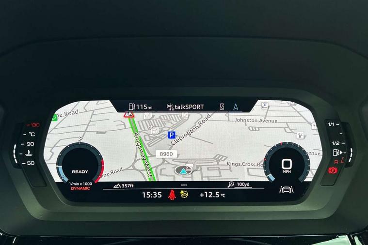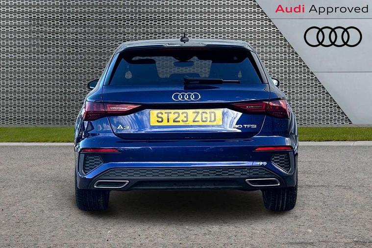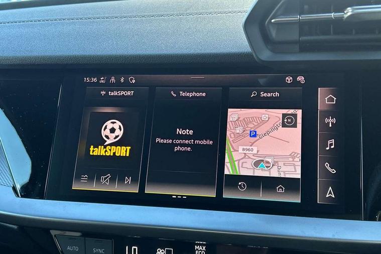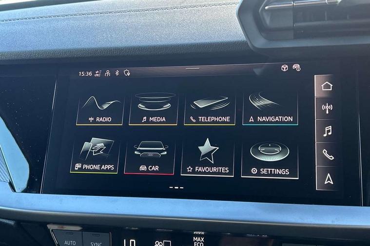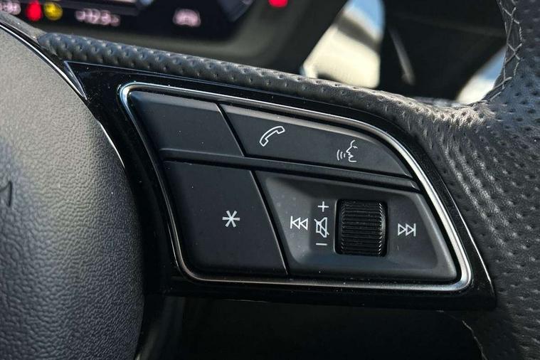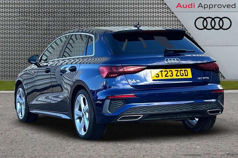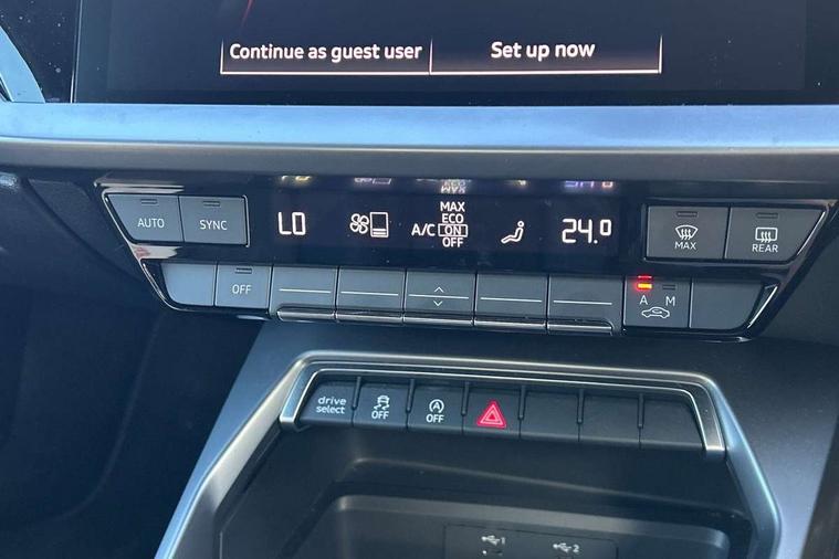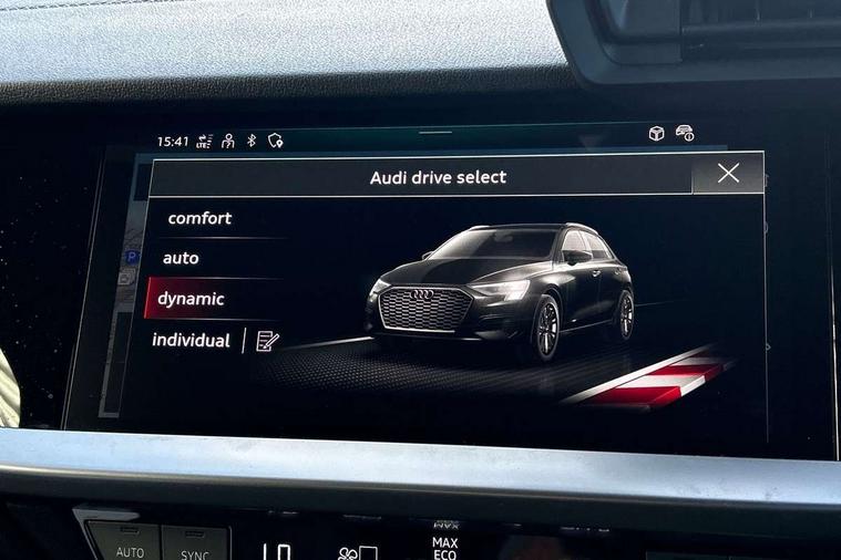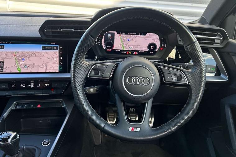 Audi drive select (Auto, Comfort, Dynamic and Individual), Audi smartphone interface, Audi Virtual Cockpit - 10.25" digital and colour instrument cluster, Automatic start/stop system with recuperation, Bluetooth interface, Camera based traffic sign recognition, Collision avoidance assistant, Cruise control, e-Call (emergency call), Electromechanical power speed sensitive steering, Lane departure warning system, MMI Navigation Plus with high resolution 10.1" colour touch screen display, Rear parking sensors, Service indicator, Trip computer, Voice control system with natural language interaction, Sports suspension, 2xUSB-C connection with data and charging functions, 6 passive loudspeakers, DAB Digital radio, 3rd brake light, Acoustic glass windscreen, Aluminium window trim, Auto dimming frameless rear view mirror, Body colour exterior mirrors, Electrically adjustable/heated/folding/auto dimming door mirrors with integrated LED indications + kerb view function for passenger side, Front electric windows, Illuminated door sills with aluminium inserts at the front with S logo, LED daytime running lights, LED headlights with LED rear lights and dynamic rear indicators, Light and rain sensors, Privacy glass - dark tinted rear window, rear door and side windows, Rear electric windows, Rear side air outlets in grained matt black, Rear side wing doors, Rear wiper, S line bumpers, S roof spoiler, 12V socket and storage compartment in front centre console, 3 seat bench in 2nd row, 3 spoke leather multifunction steering wheel, 4 way electrically adjustable lumbar support for driver and front passenger, 60/40 split folding rear seat bench, Black cloth headlining, Dual zone electronic climate control, Front and rear centre armrest in artificial leather, Front and rear headrests, Front/rear floor mats, Height and reach adjustable steering wheel, Interior lighting - glove compartment light and right hand side, Luggage compartment floor covering, Manual boot compartment lid, Manually adjustable front seats, Seat side bolsters, Single front passenger seat, Stainless steel pedals and front footrest in black, Twin leather upholstery with front sports seats S embossed logo, Aluminium interior elements pack - A3 Sportback, LED interior lighting pack - A3 Sportback, S line styling pack - A3 Sportback, 3x3 point rear seat belts, Driver and front passenger airbag with passenger airbag deactivation, Electronic Stabilisation Control (ESC) including ABS, ASR and EDL, First aid kit with warning triangle and 2 safety vests, Front side airbags with head airbags and interaction airbag, Pre-sense front with pedestrian and cyclist detection, Seatbelt monitoring, Tyre pressure loss indicator, Anti theft alarm, Anti-theft wheel bolts, Electronically operated child locks, Immobiliser, Remote control central locking, Dark spectrum aluminium inlays, accent surfaces in the dashboard and centre console in platinum grey silk effect paint finish,
